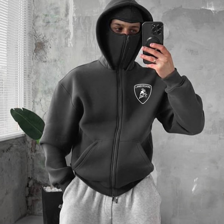 Men's Fleece-Lined Racing Double-Layer Hooded Sports Zipper Jacket