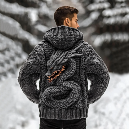 Men's Viking Tribal Dragon Jacquard Celtic Inspired Cozy Hooded Sweater