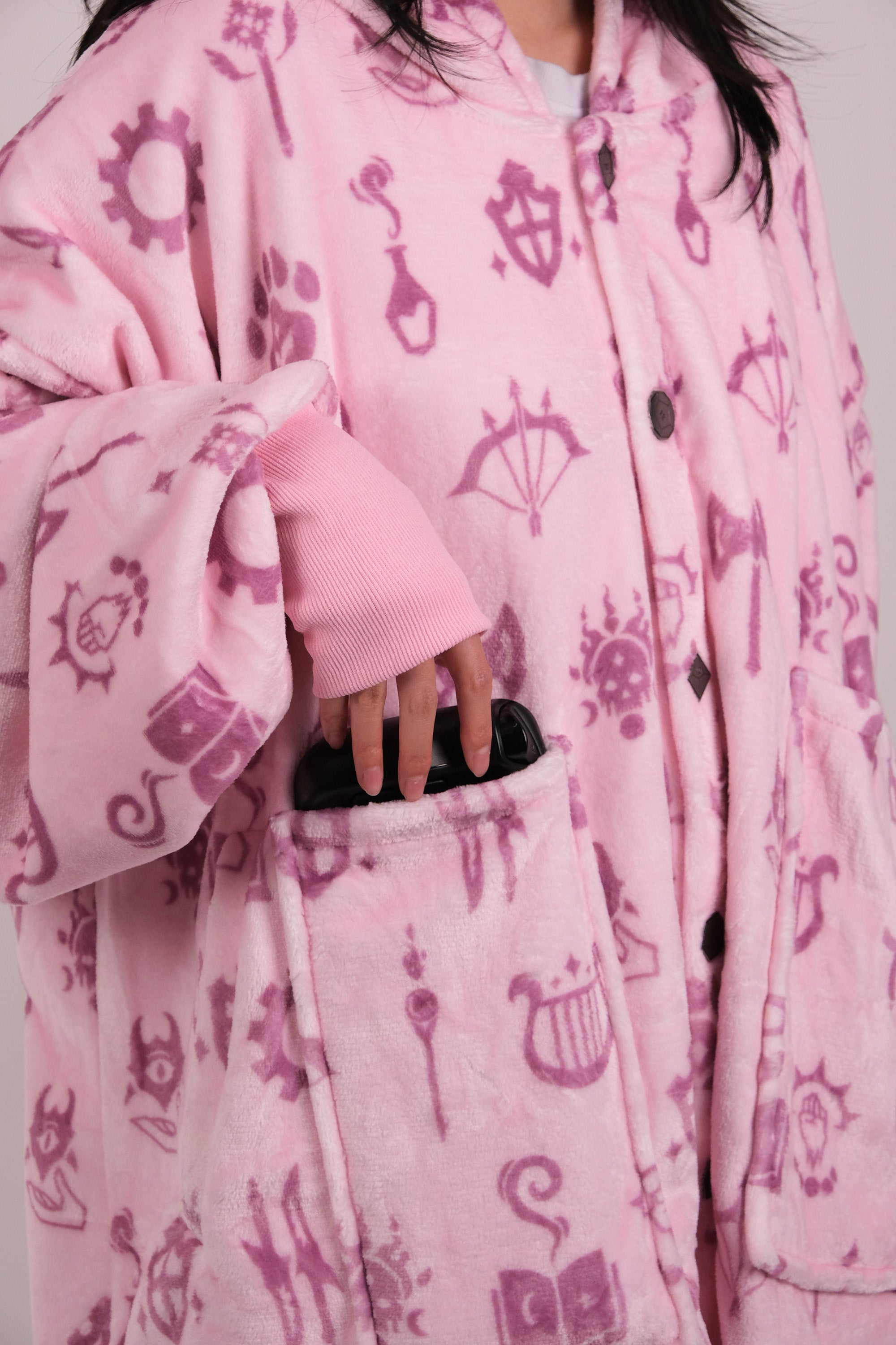 • Metal Dice Snap-on Buttons: Unlike ordinary blanket hoodies, ours features buttons along the front, letting you open up to cool off when the action heats up, or close it up for maximum warmth when you need it. Perfect for adjusting your comfort level on the fly.