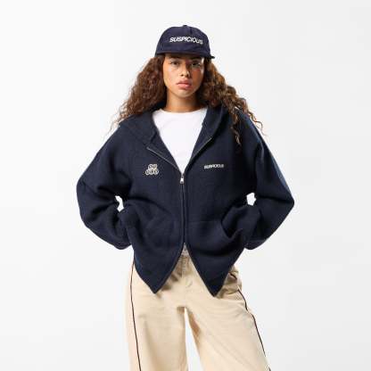Winter1 / Landscape Knitted Zipped Hoodie - Navy