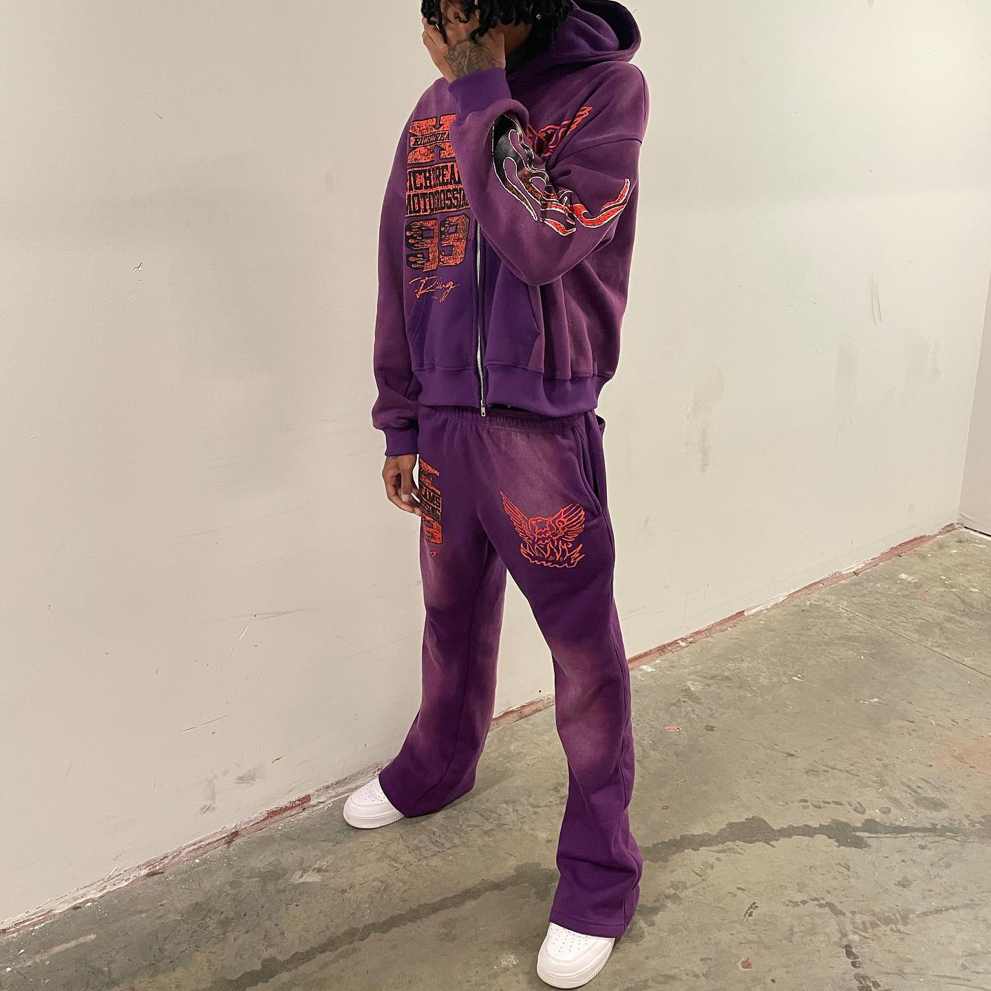 Vintage distressed zipper sweatshirt suit