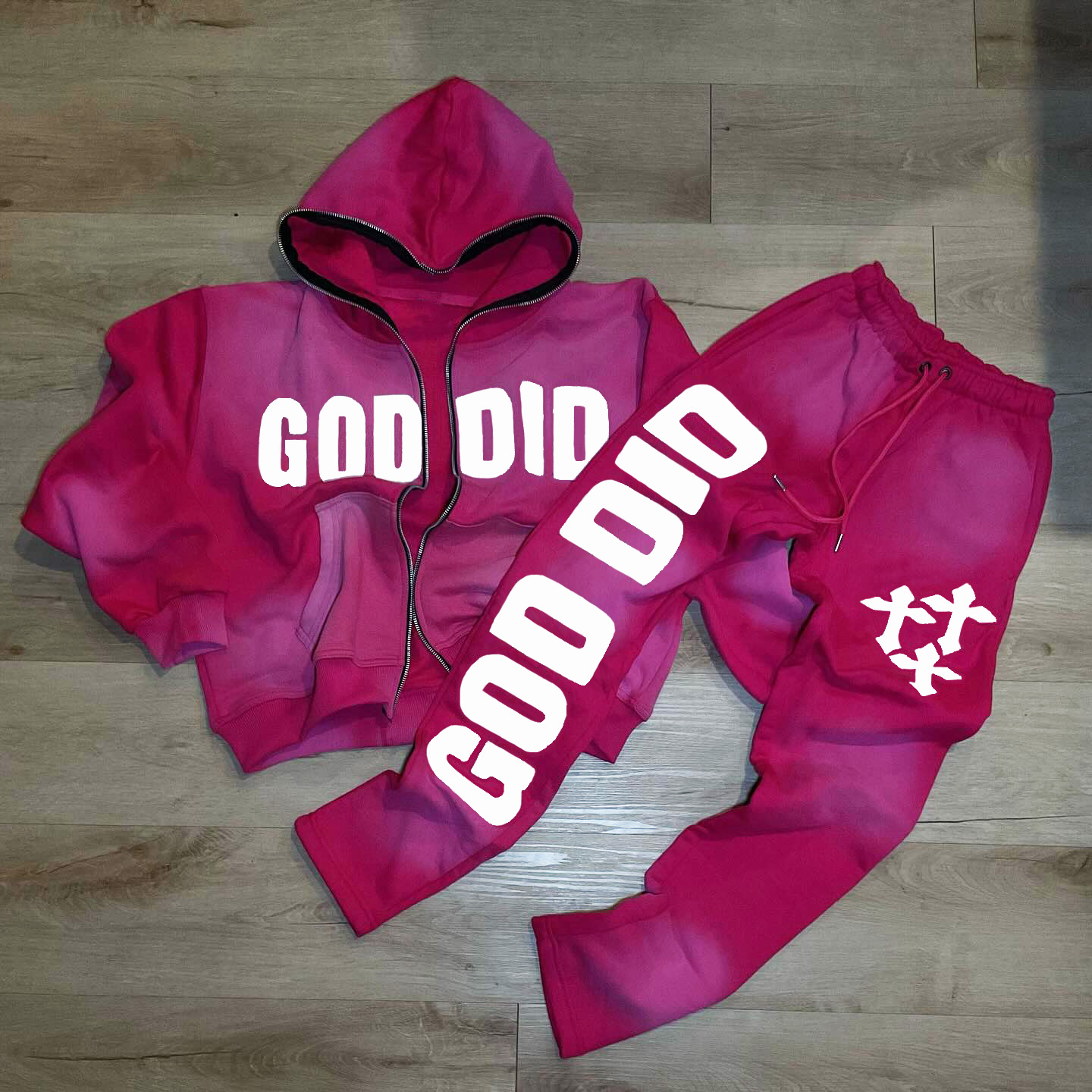 God Did Print Two Piece Hoodie Set