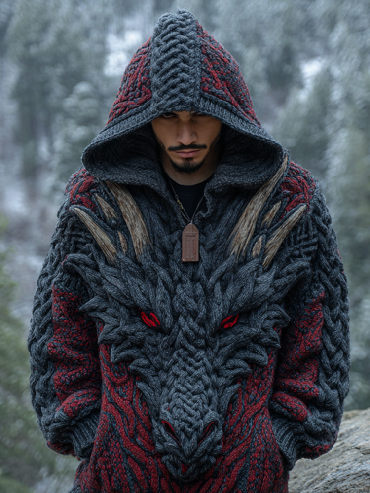 • Men‘s Viking Evil Dragon Celtic Cozy Chunky Hooded Sweater