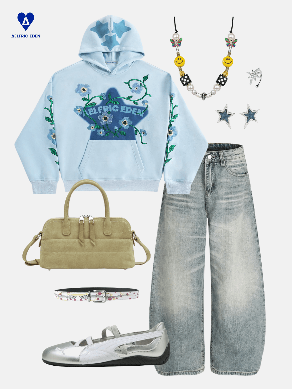 The Aelfric Eden Beaded Floral Eden Star Pullover Hoodie?blends oversized streetwear style with luxury craftsmanship. Featuring hand-finished embroidery and beadwork that are firmly secured and not easy to fall off, unique blue floral details, and a premium cotton blend, it delivers both comfort and bold visual impact. Designed for those who value artistry and individuality, this hoodie is made to stand out.