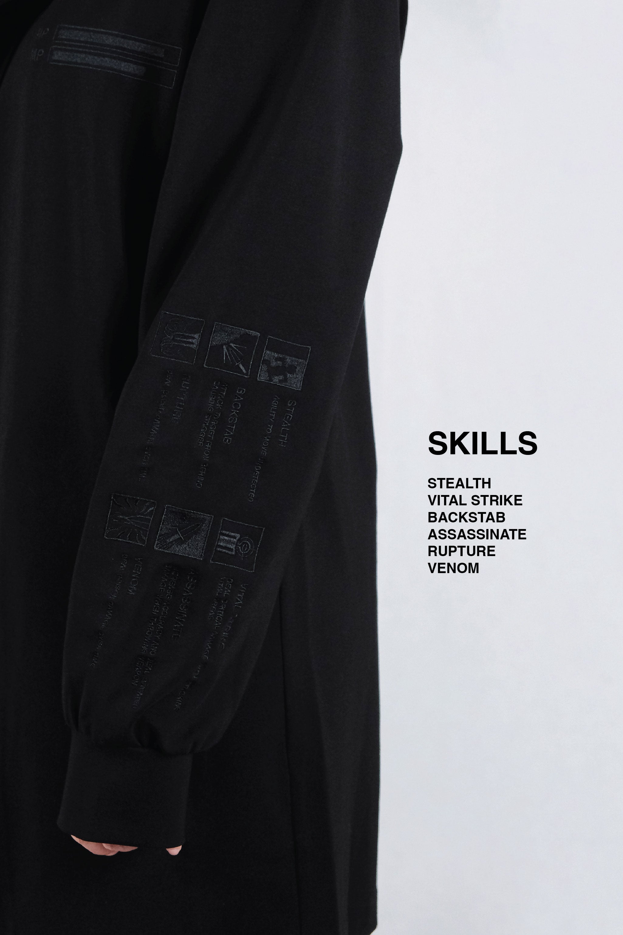 This fully embroidered cardigan features minimalistic designs, with unique class-specific skills embroidered on the sleeves. Perfect for layering, it combines fantasy flair with everyday comfort.