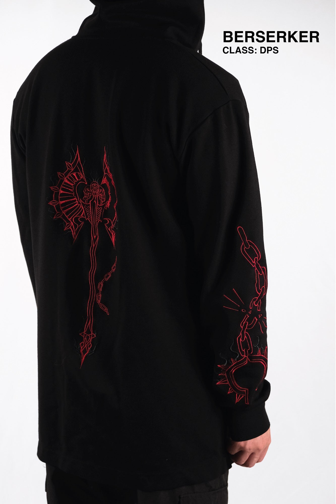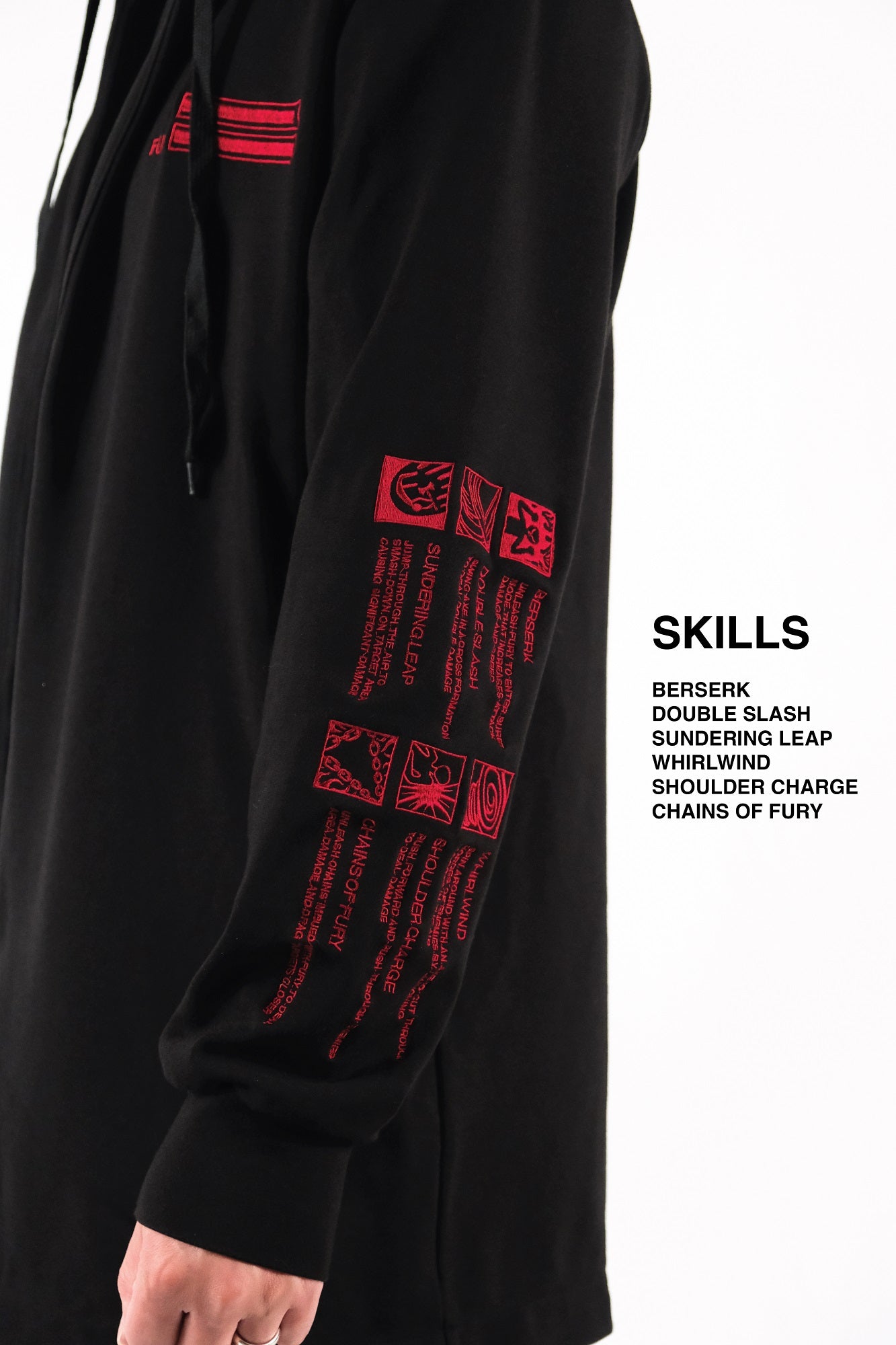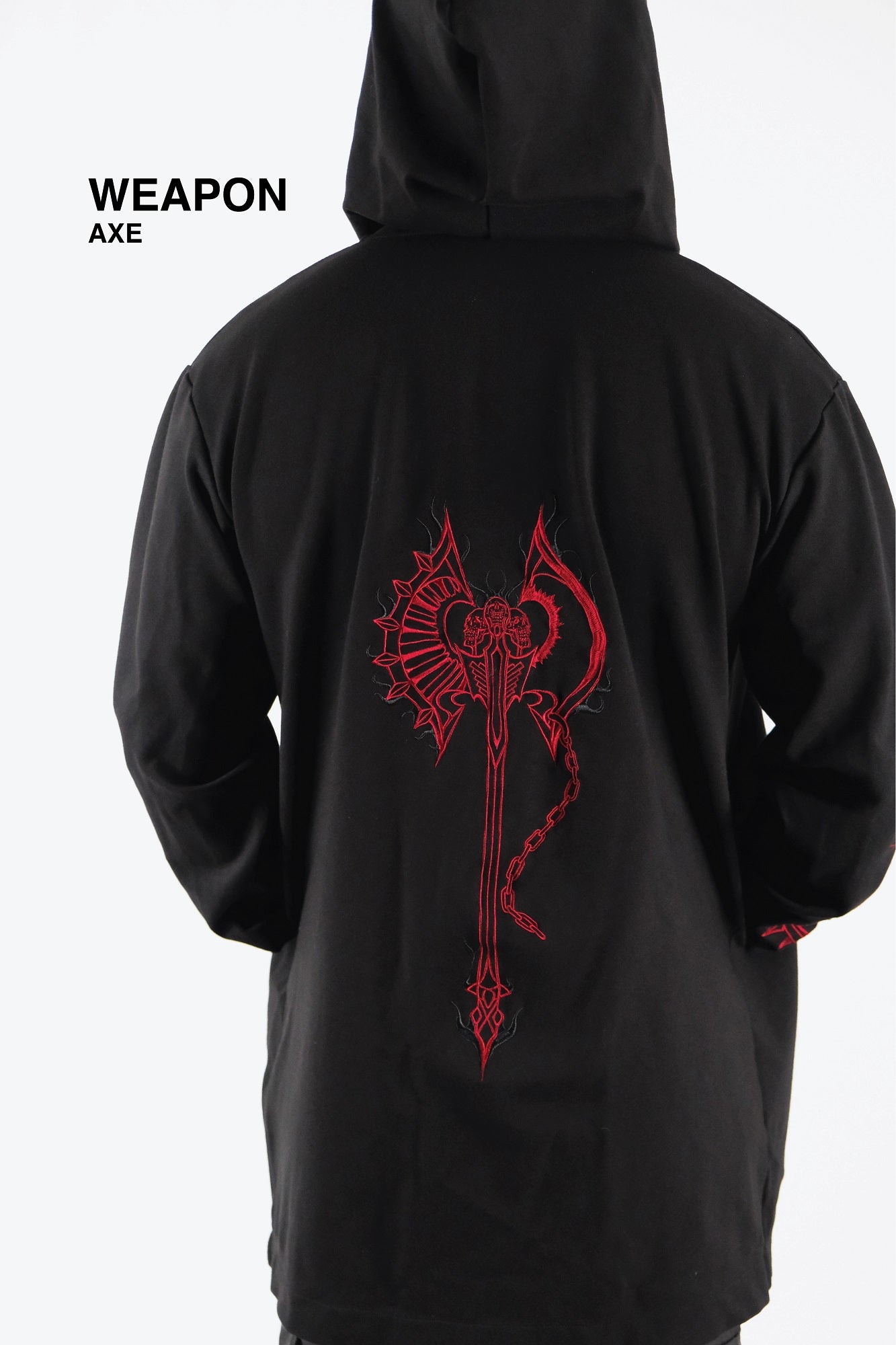 This fully embroidered cardigan features minimalistic designs, with unique class-specific skills embroidered on the sleeves. Perfect for layering, it combines fantasy flair with everyday comfort.