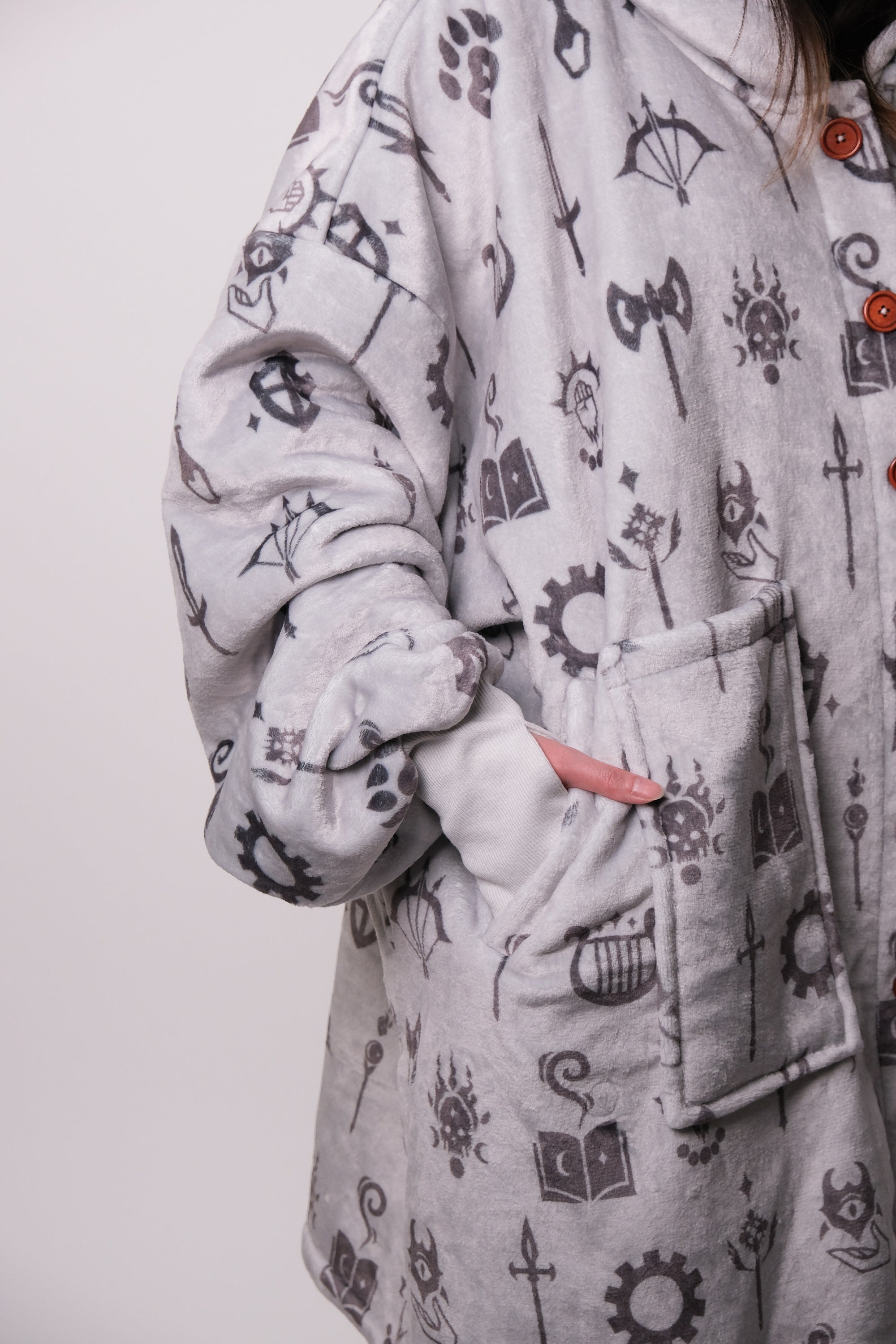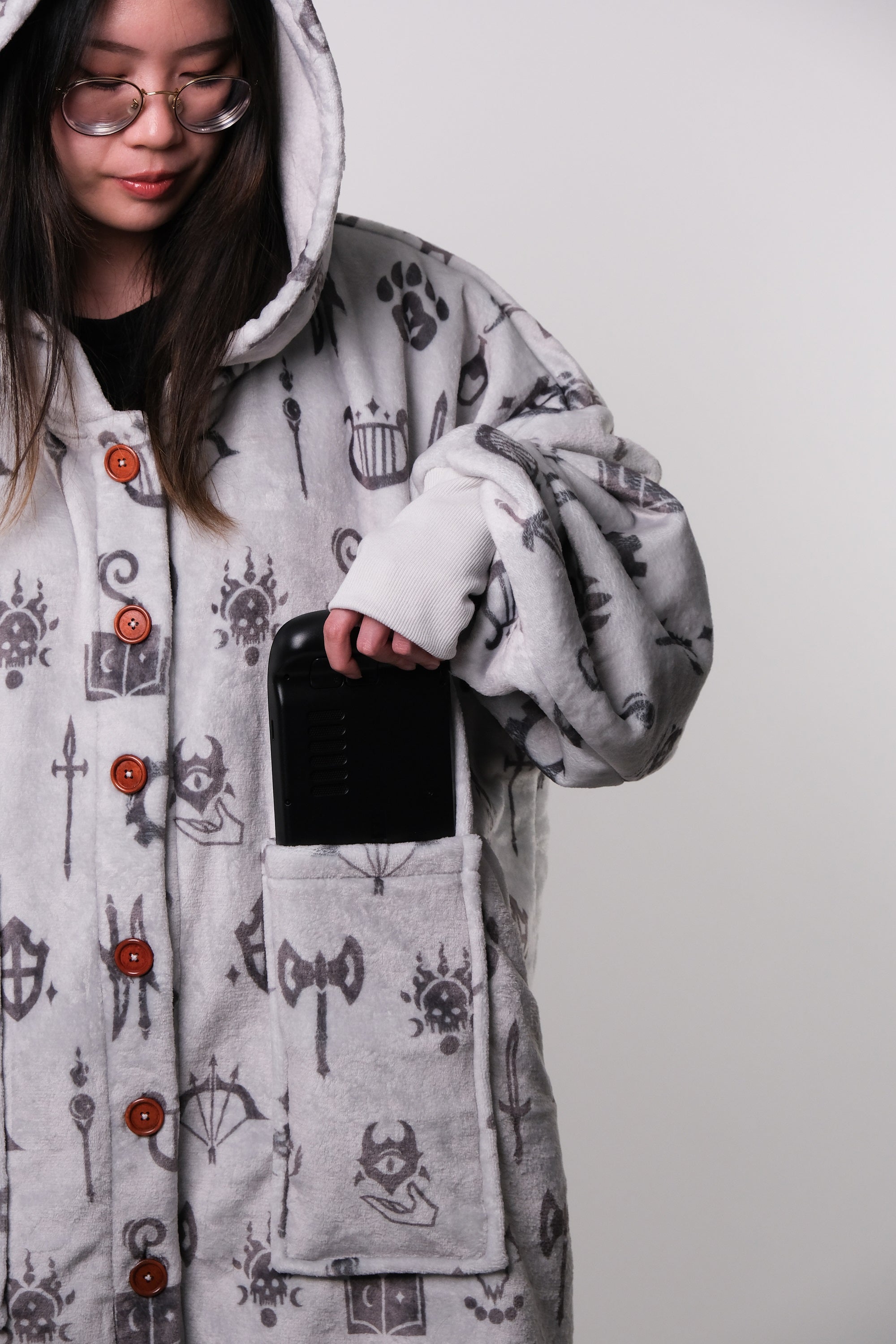 Level up your comfort with the Gamer Fleece Blanket Hoodie, the perfect blend of soft fleece warmth, functionality, and gaming-inspired design. Whether you're battling through a dungeon or just unwinding between sessions, this oversized hoodie is made for the ultimate RPG fan who prefers a softer feel without compromising on coziness or style.