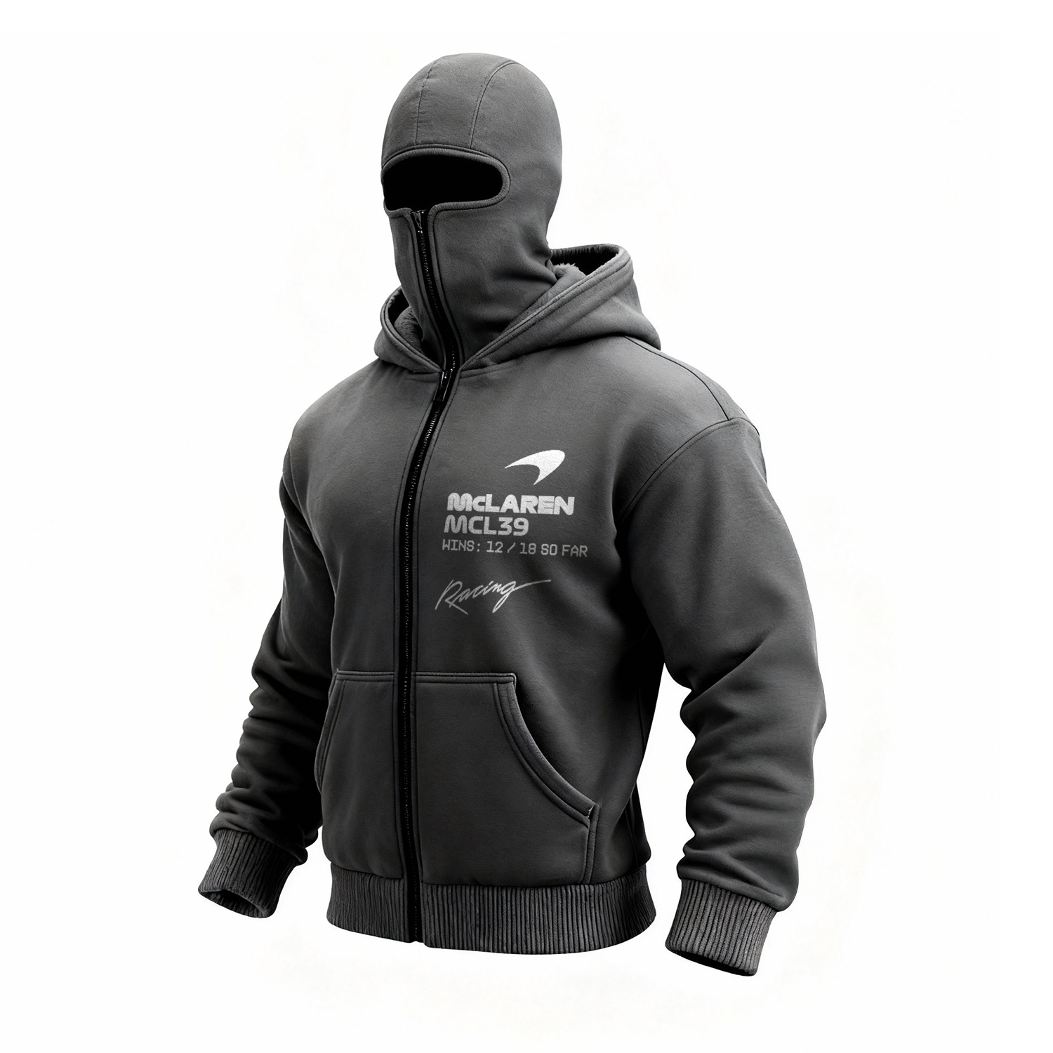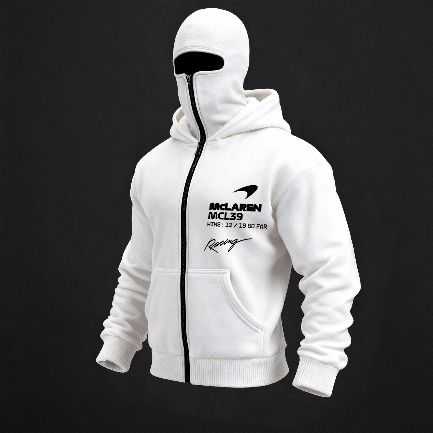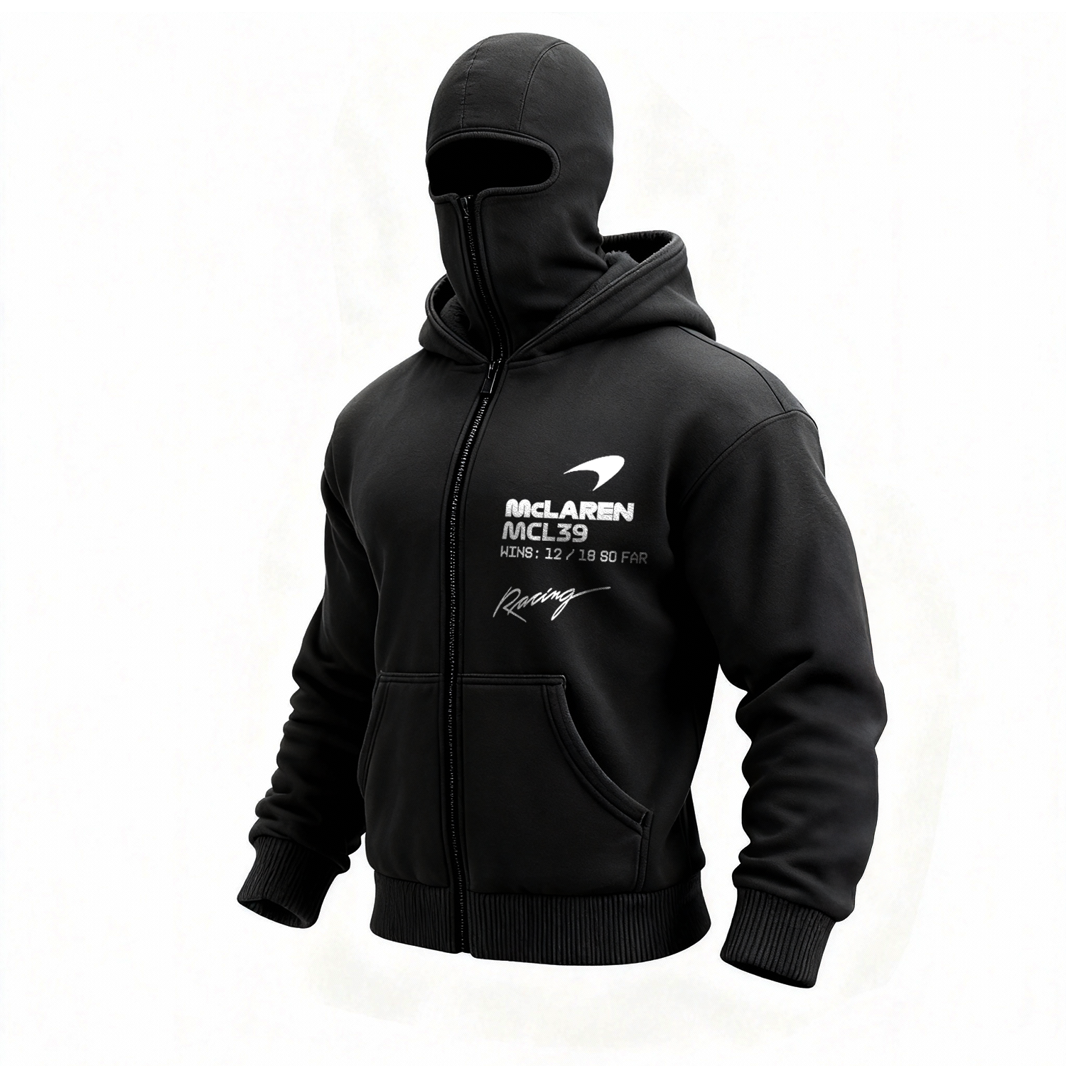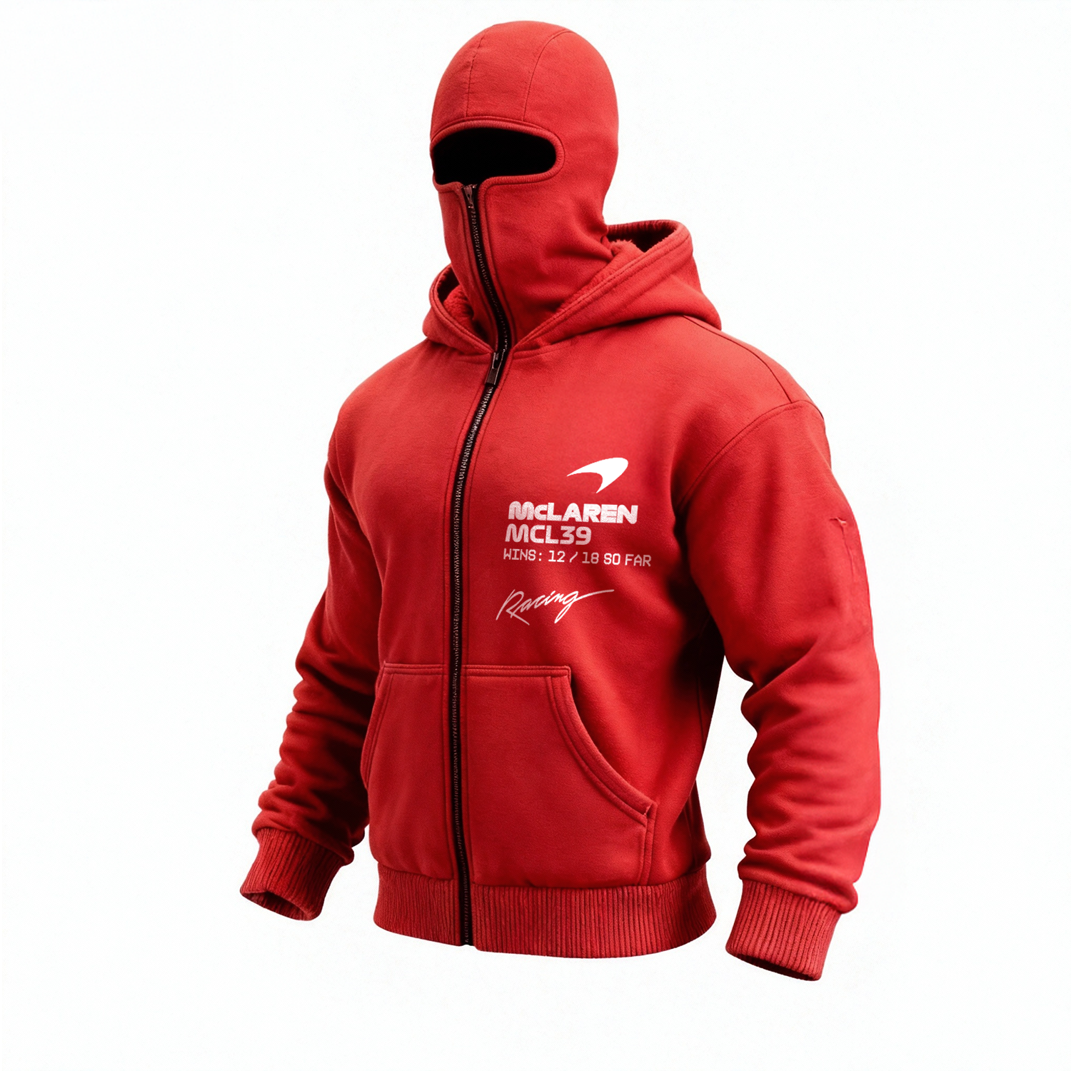 • Design Elements: Distinctive logo on the chest, text details on the sleeve