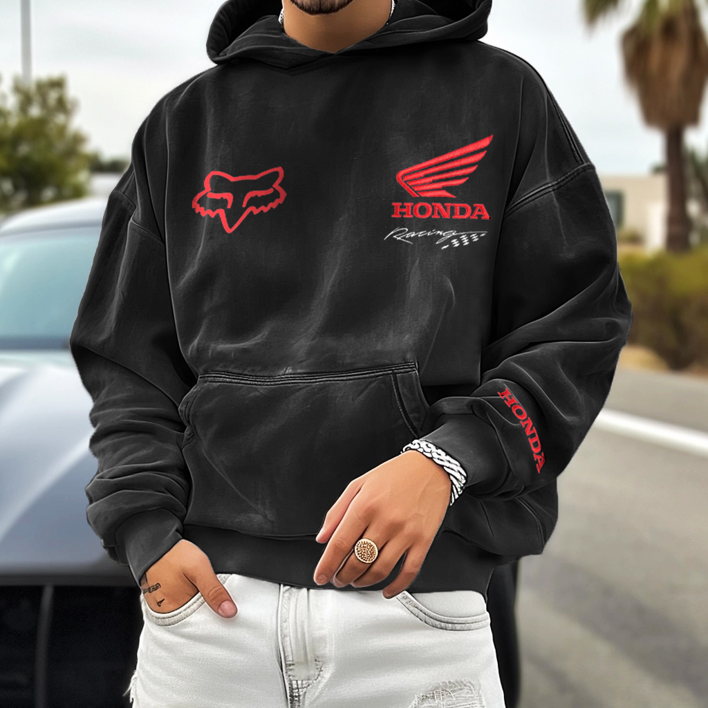 Unisex Vintage Motorbike Racing Embroidered Hoodie