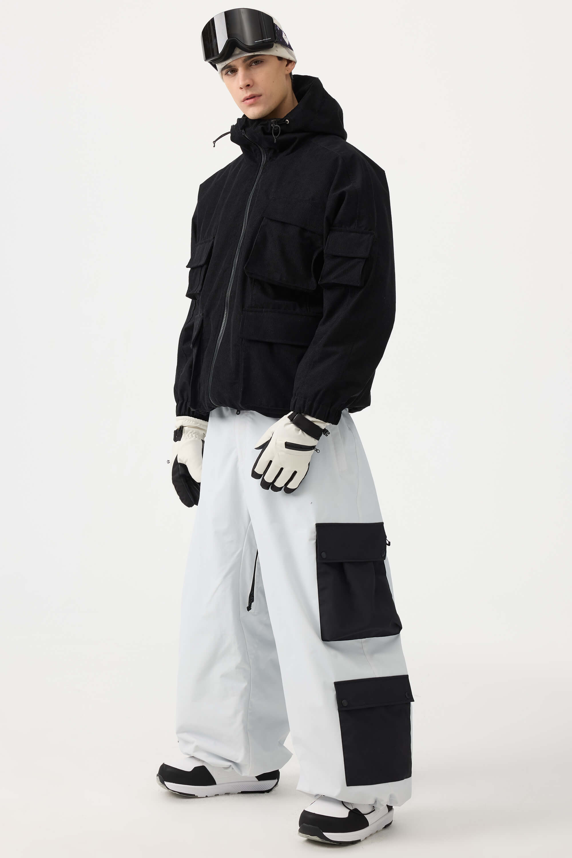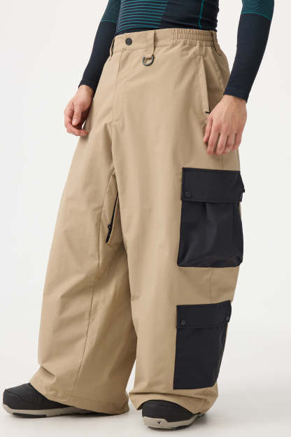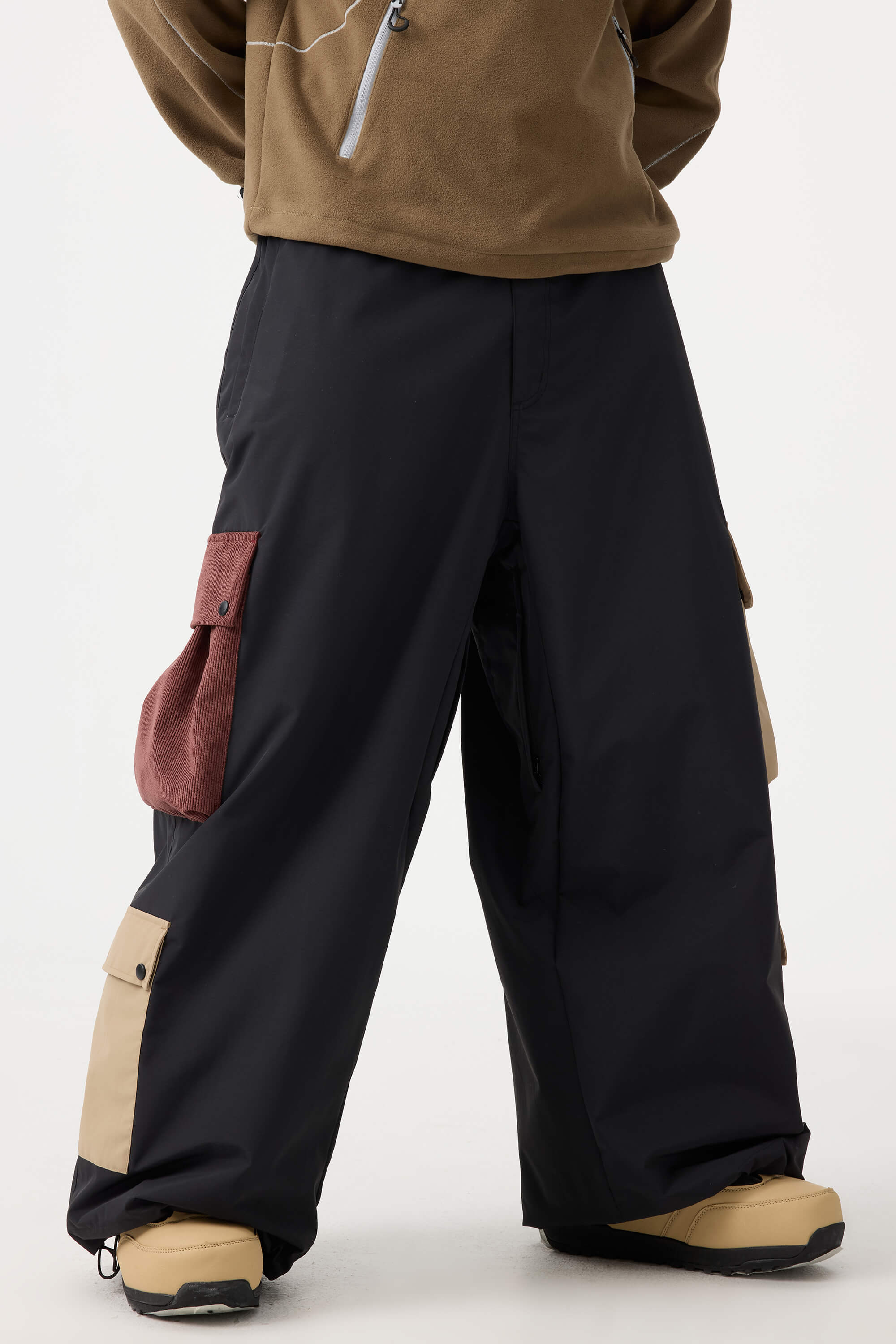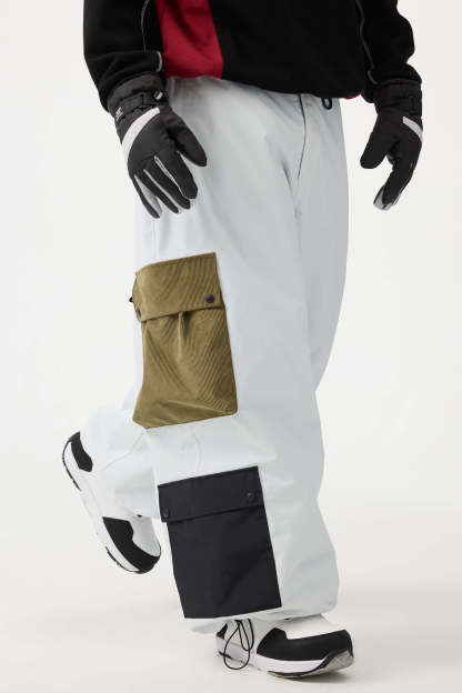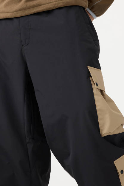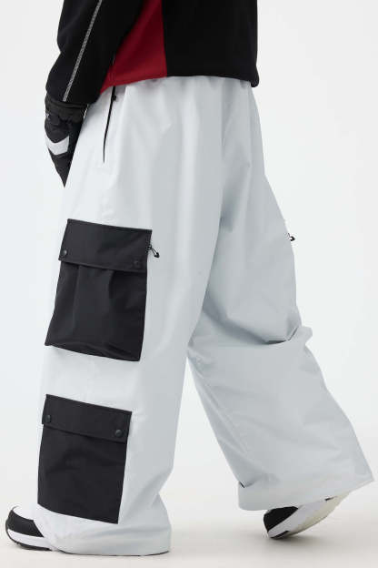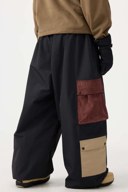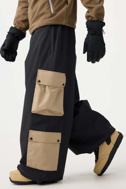 Men's Black Baggy Multi-Pocket Color-Block Snow Pants