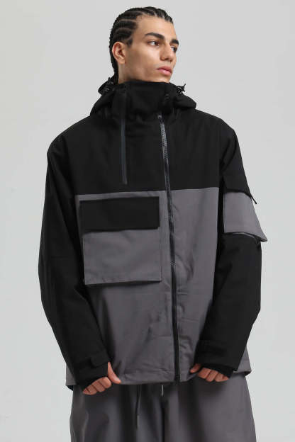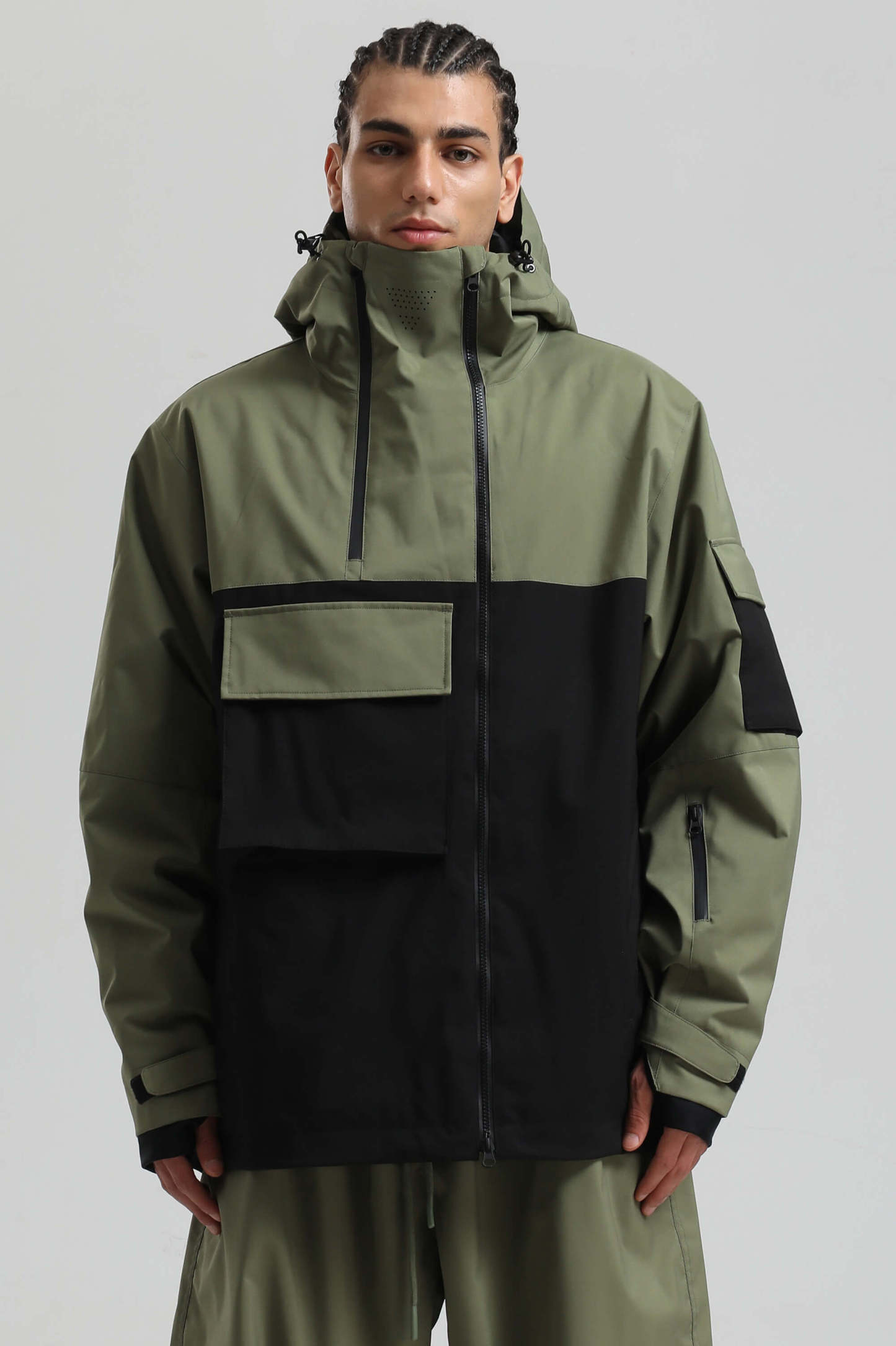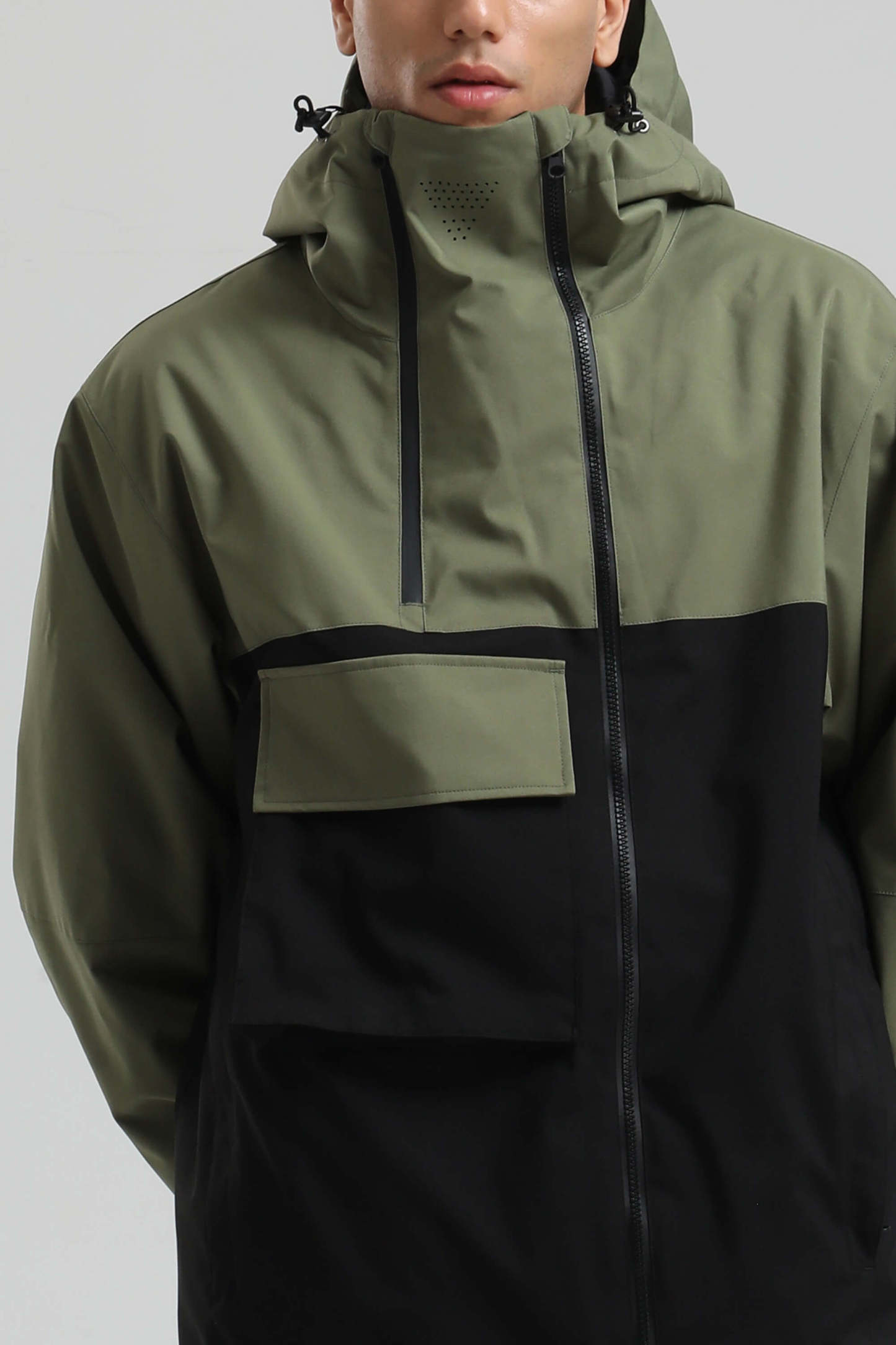 Men's Green & Black Asym-Zip Utility Pocket Waterproof Snow Jacket
