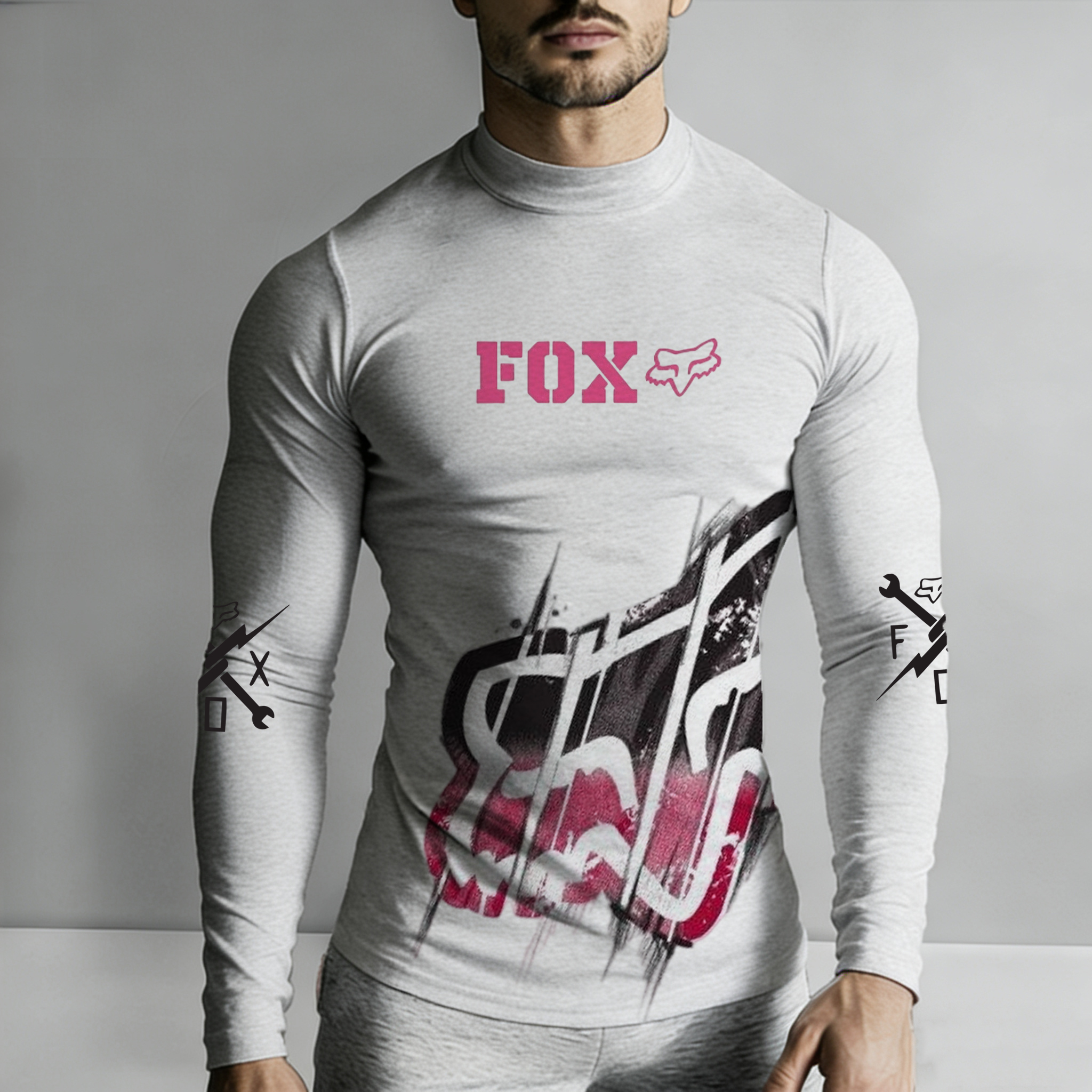 • Design Elements: Bold graphic print on the front, small logo details on sleeves and waistline