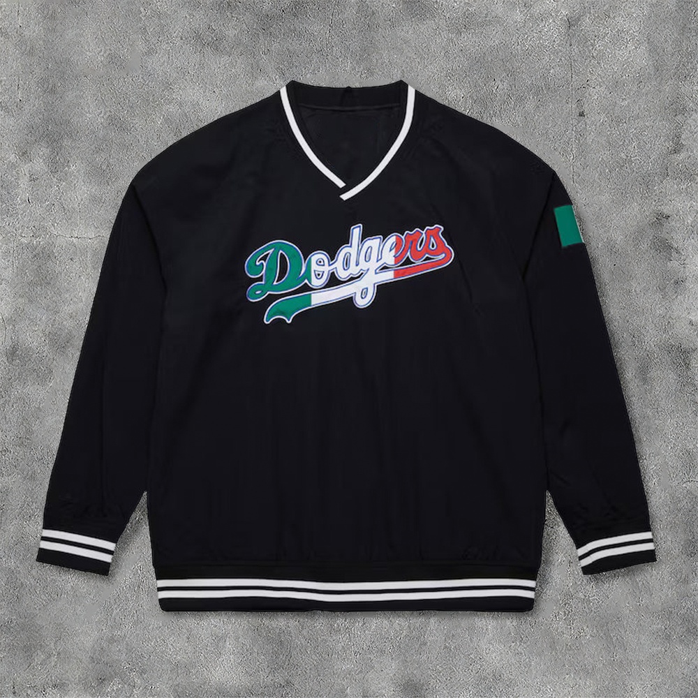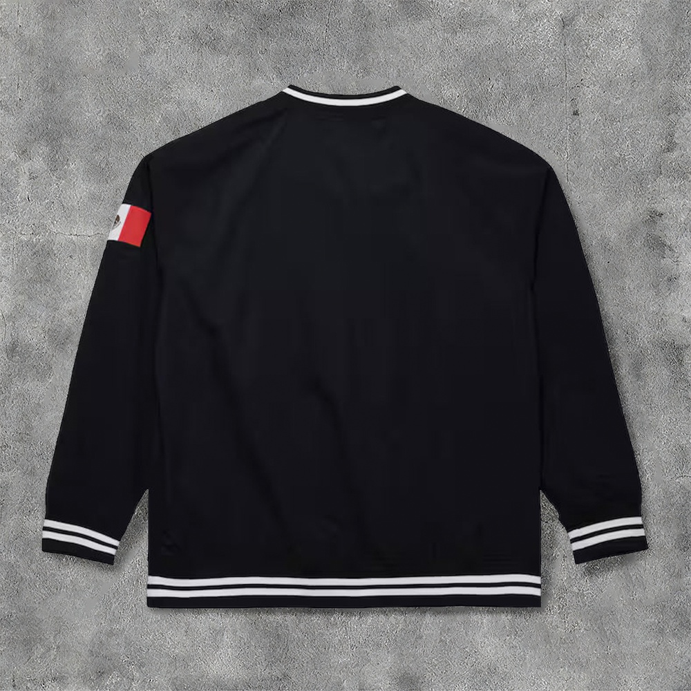 Stylish Color-blocked Team Logo Print V-neck Pullover