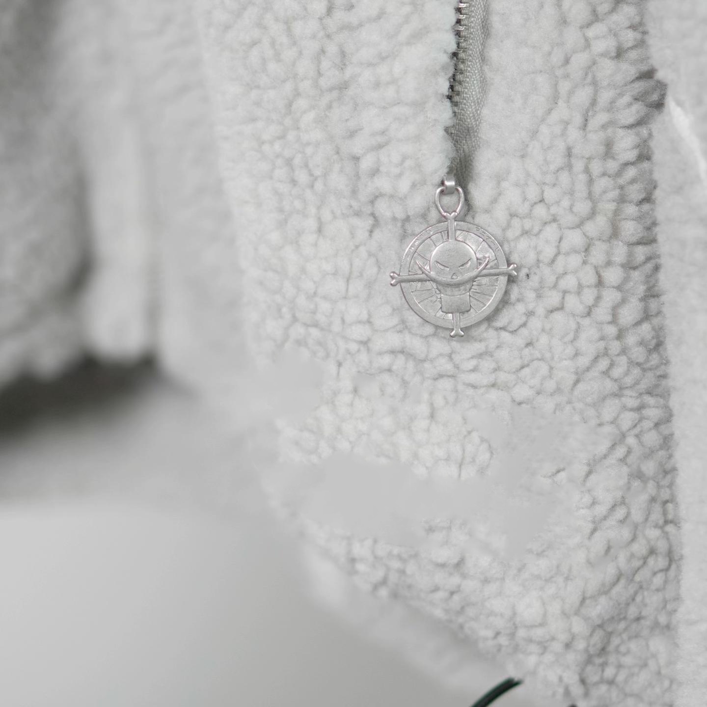 There are white weaved patterns throughout this jacket’s fabric making everything seamless. On the front right side we have a white edge to edge design of his power when he cracks air itself. On the chest we have embroidery of his three scars.