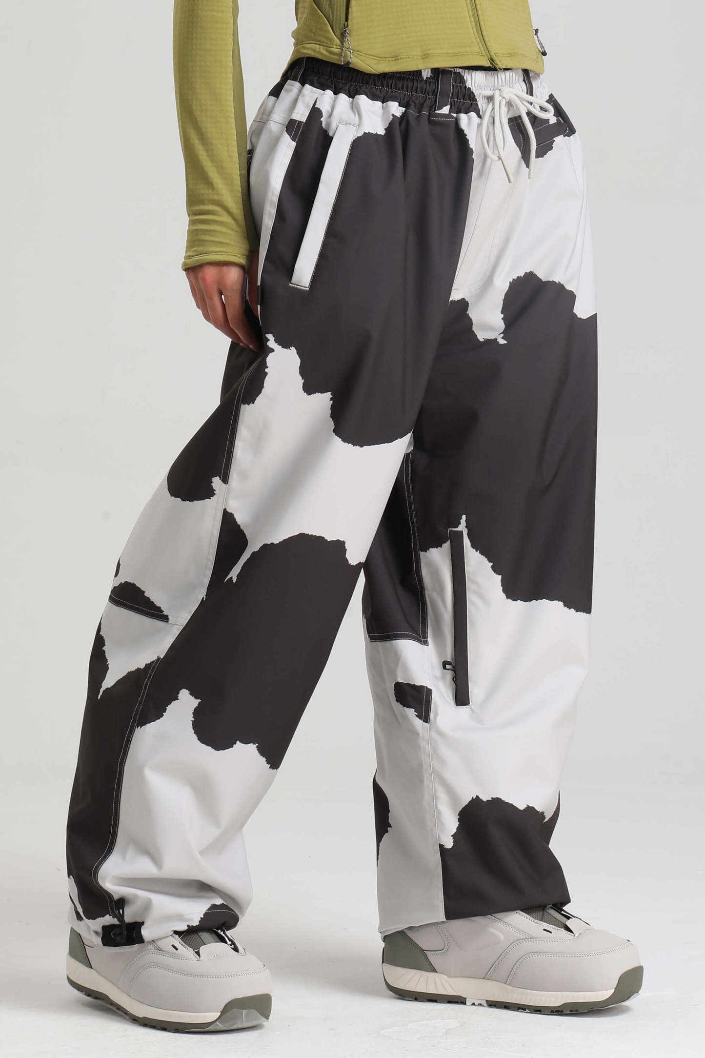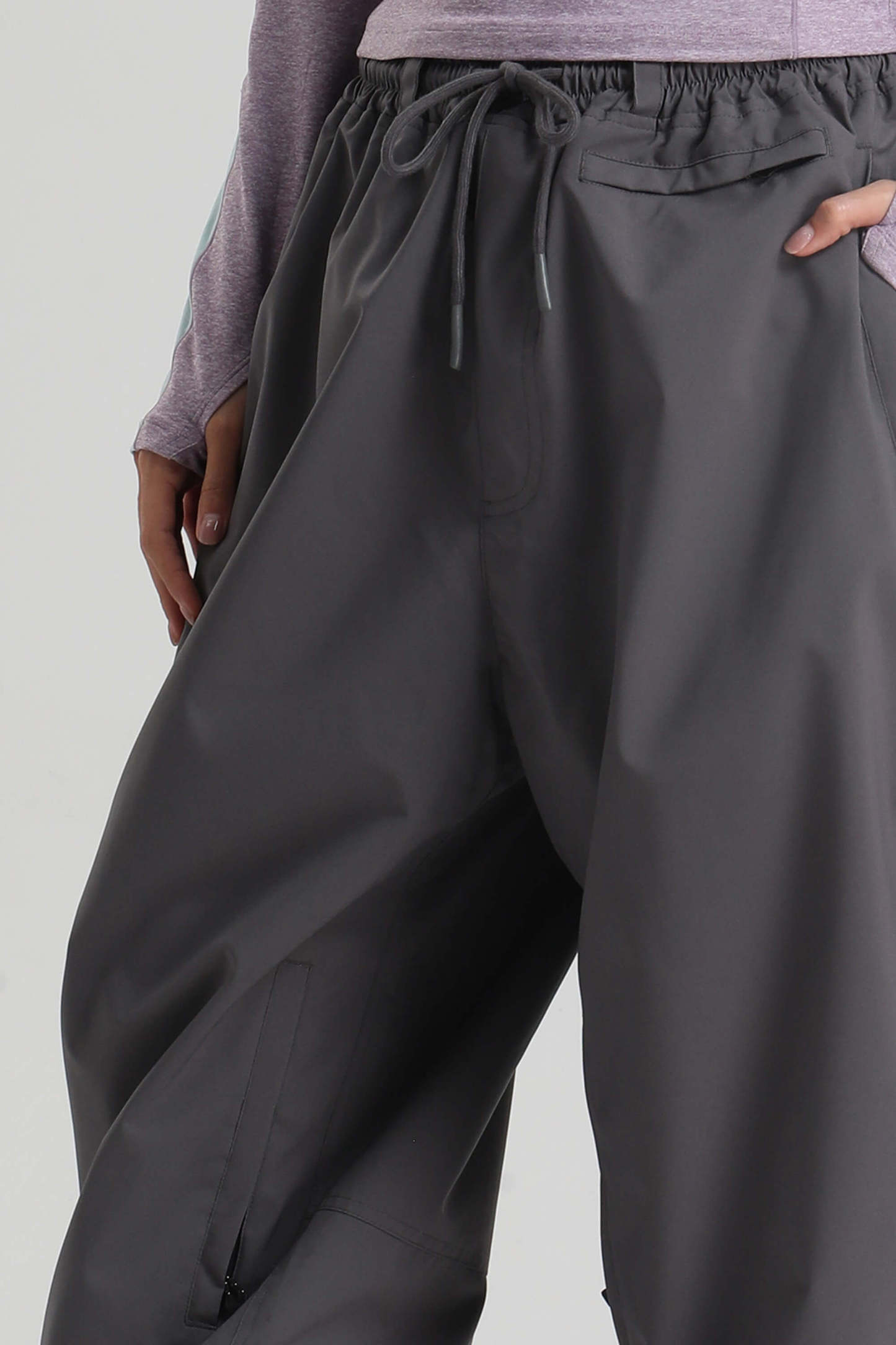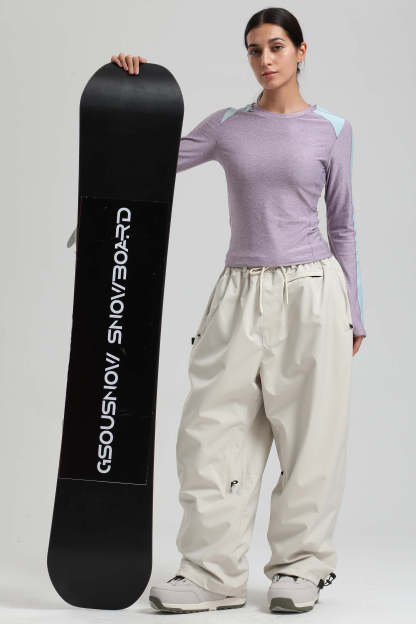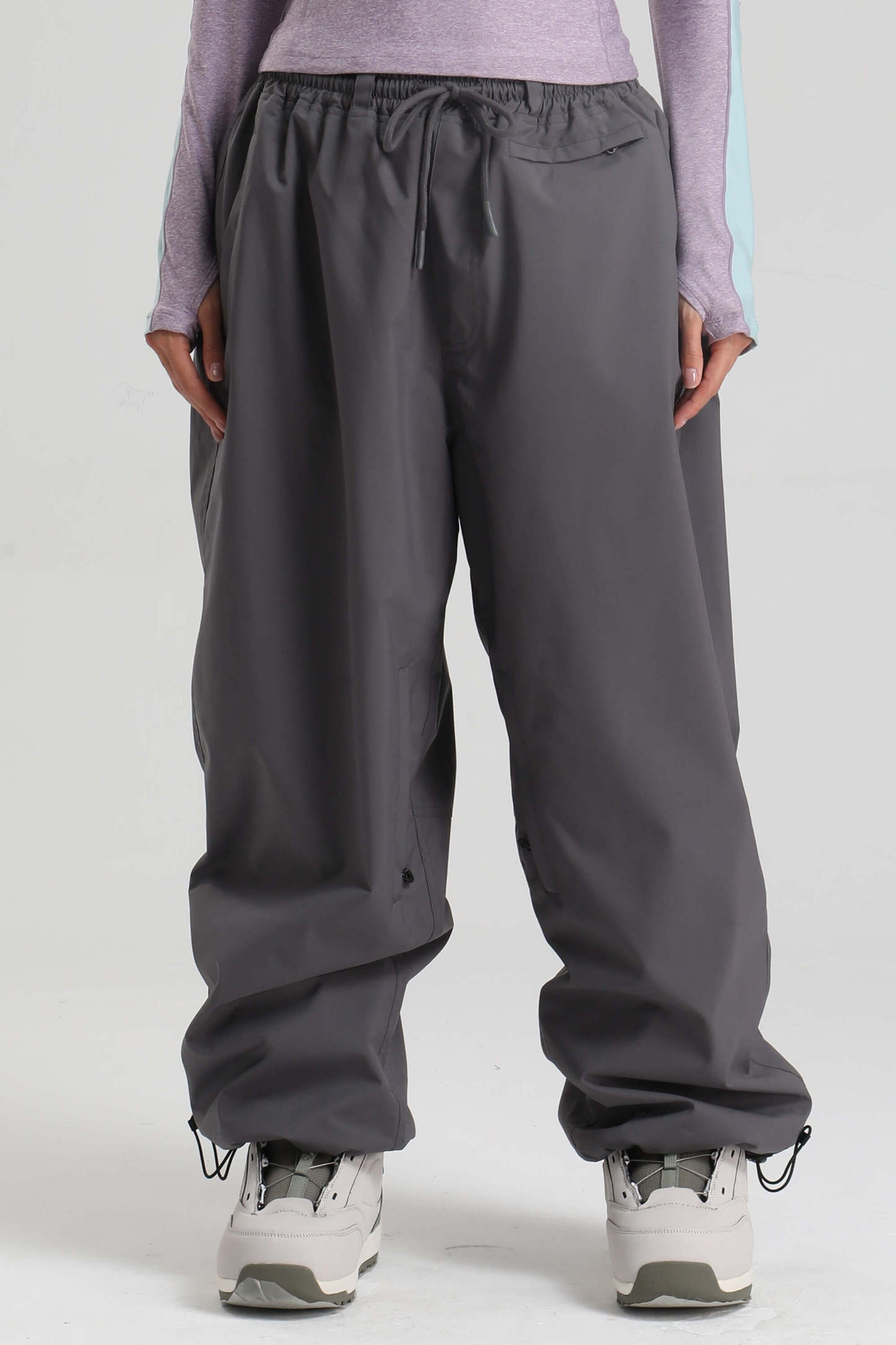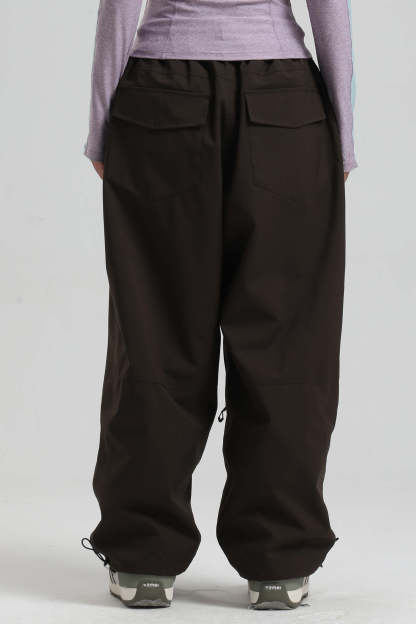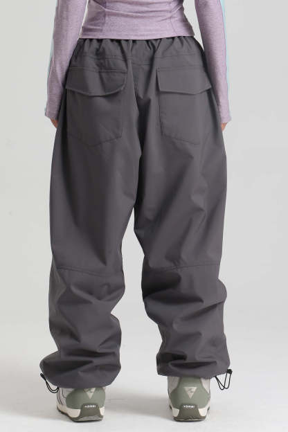 Women's Dark Gray Baggy Drawstring Durable Snow Pants