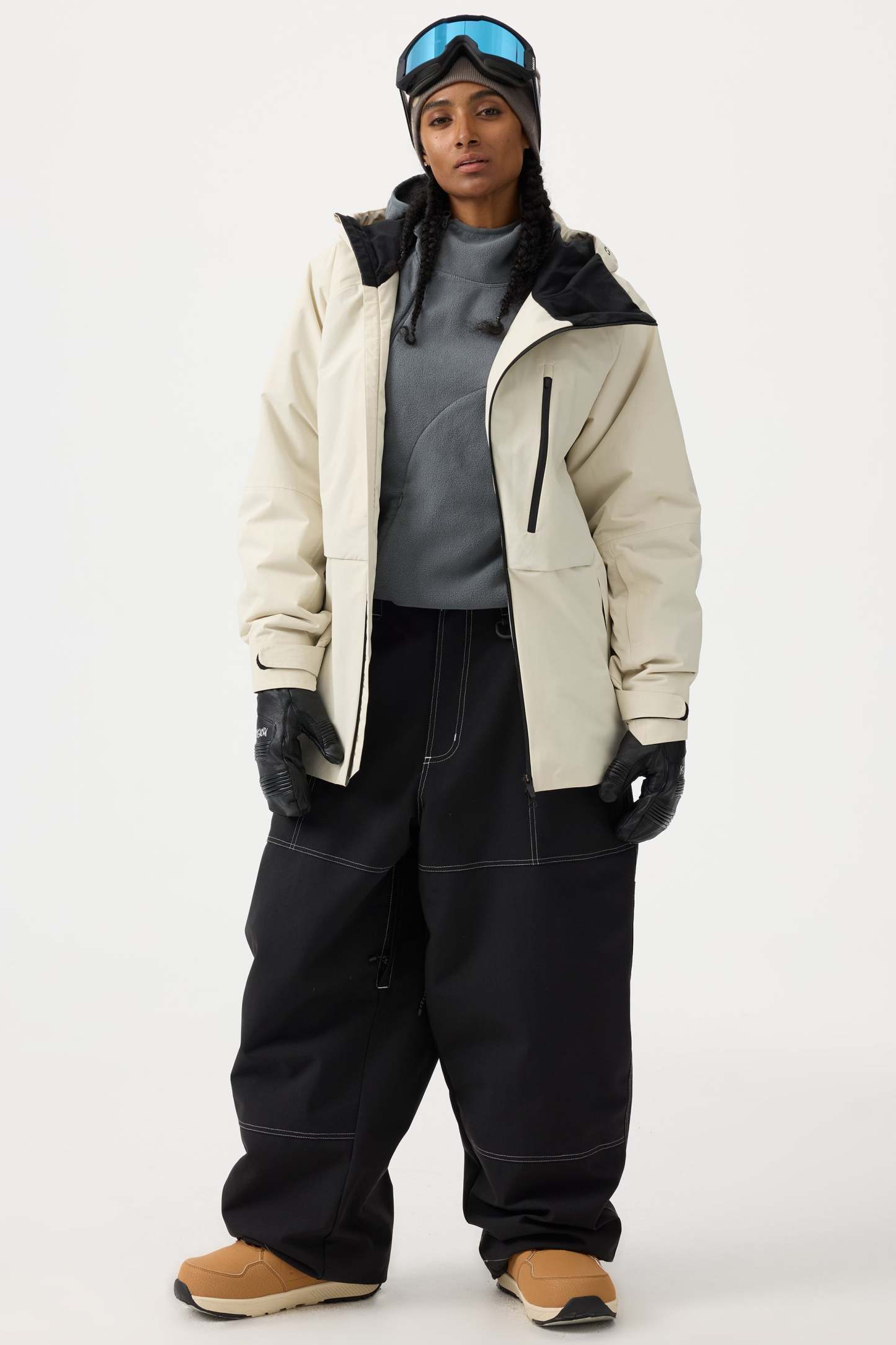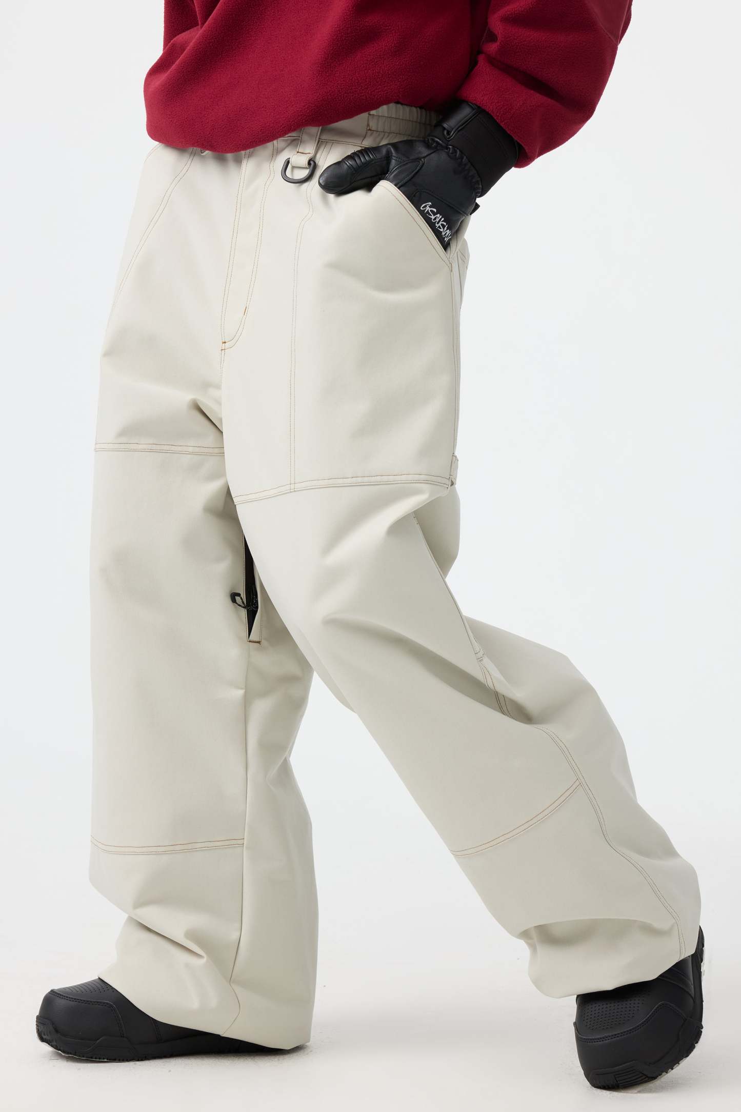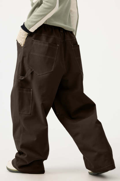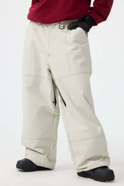 Women's Beige Baggy Oxford Workwear Snow Pants