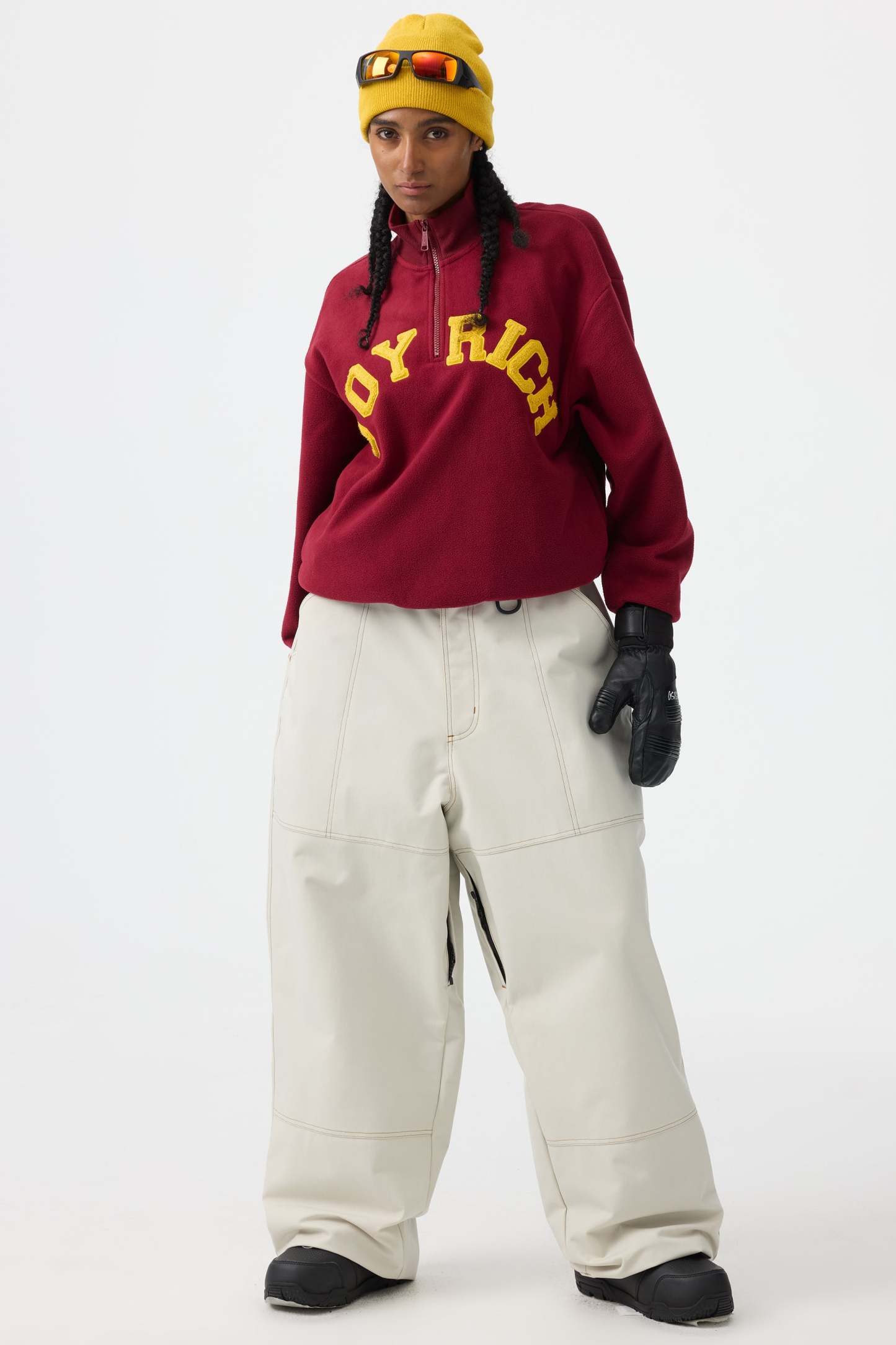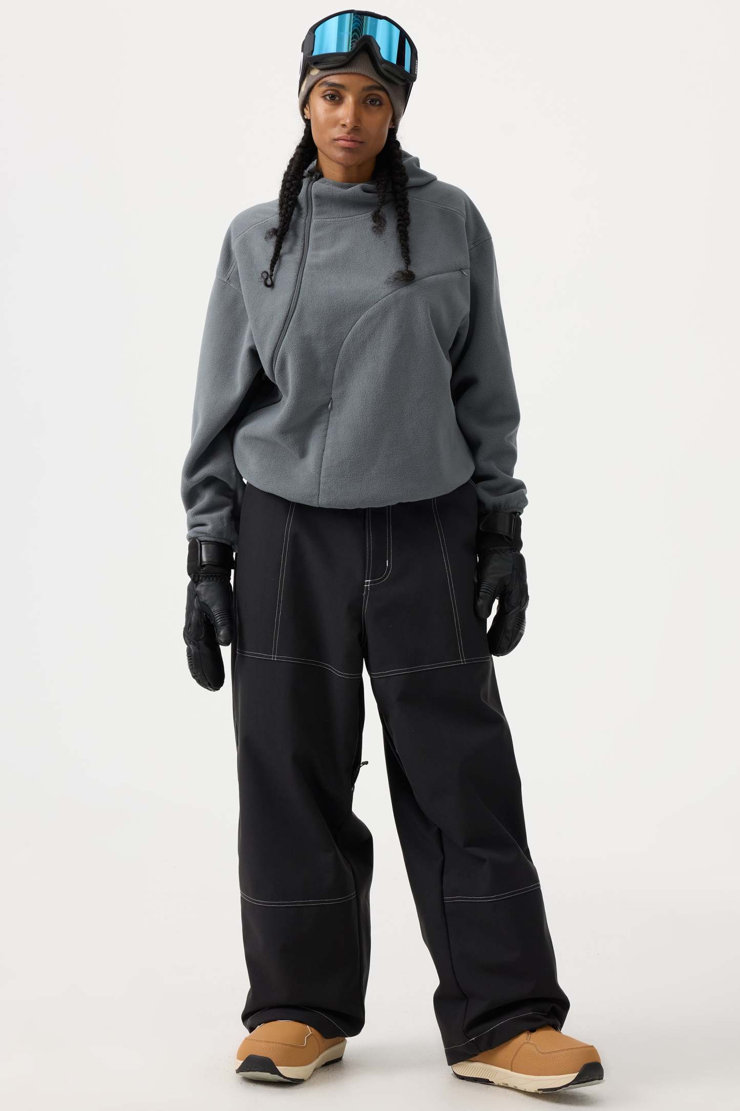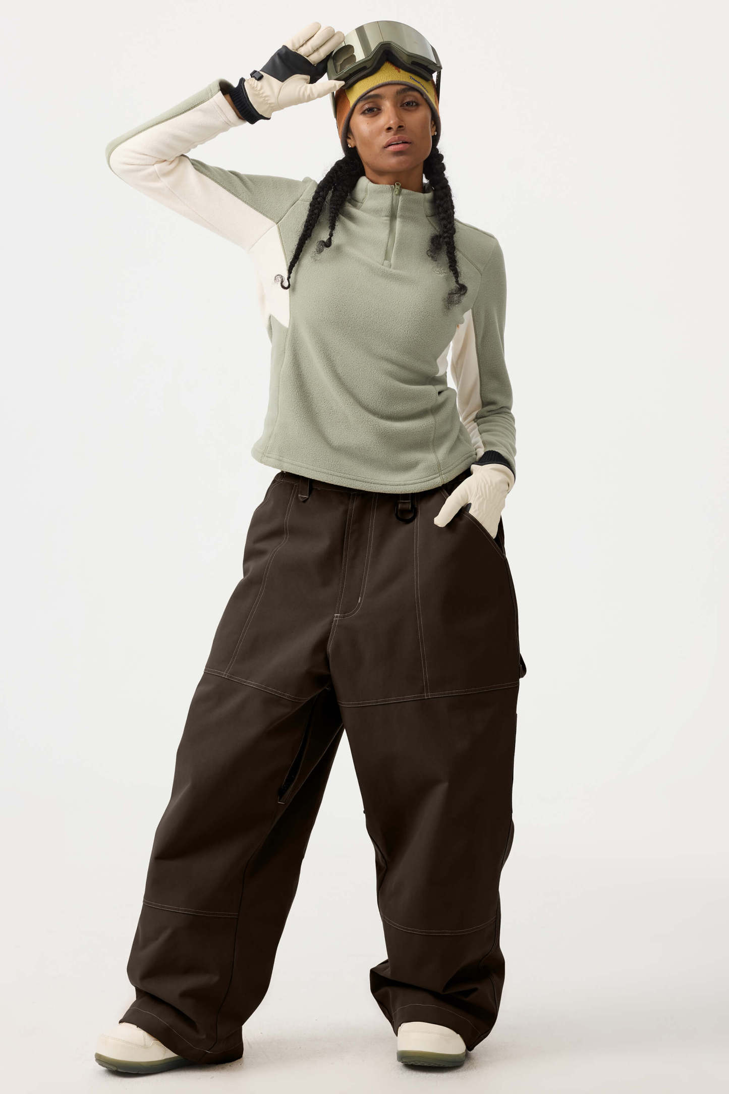 Women's Beige Baggy Oxford Workwear Snow Pants