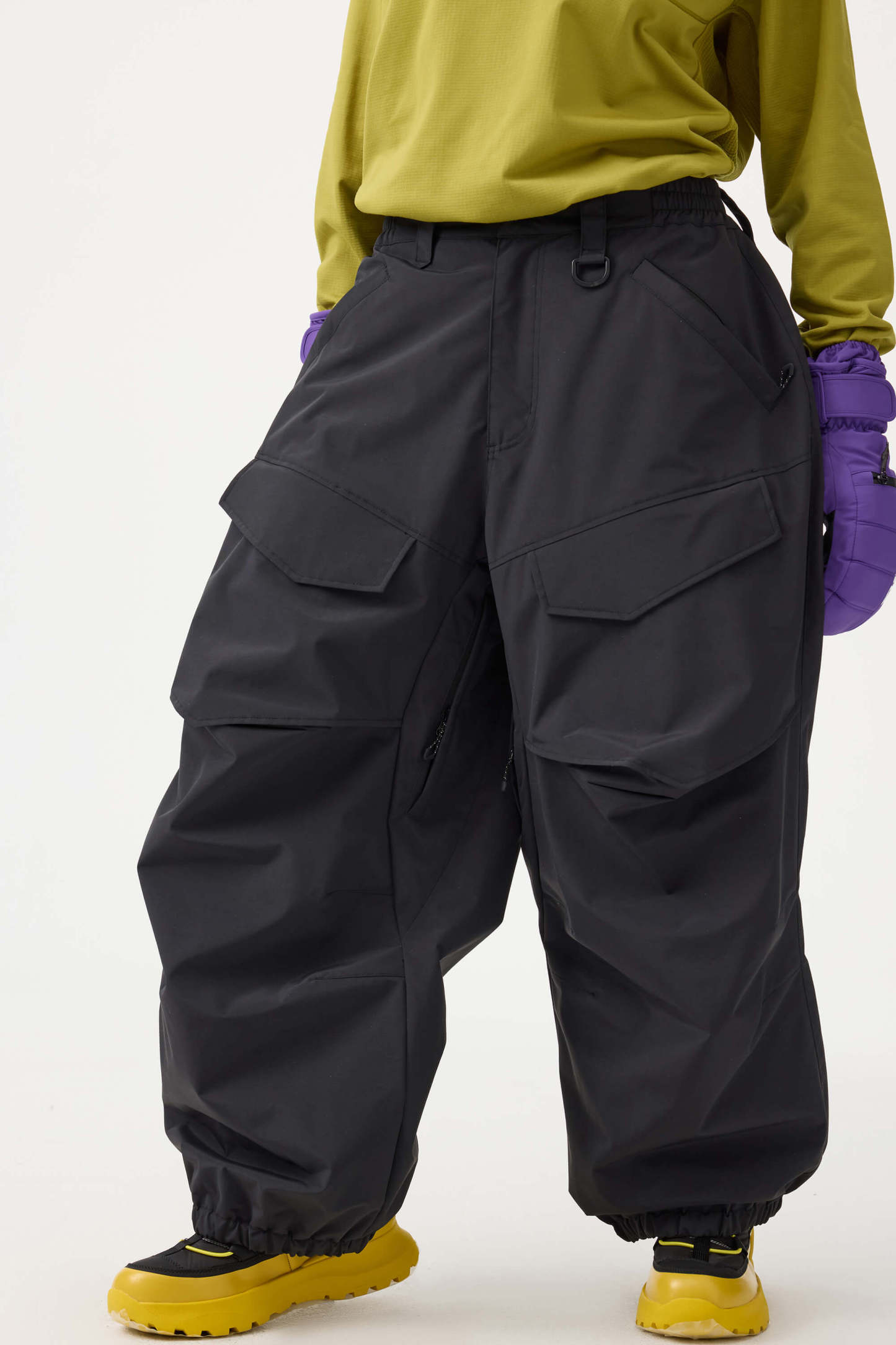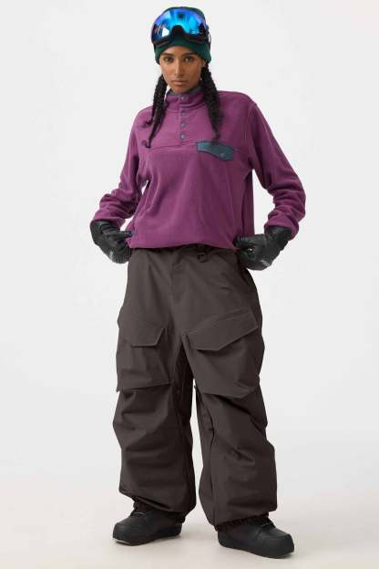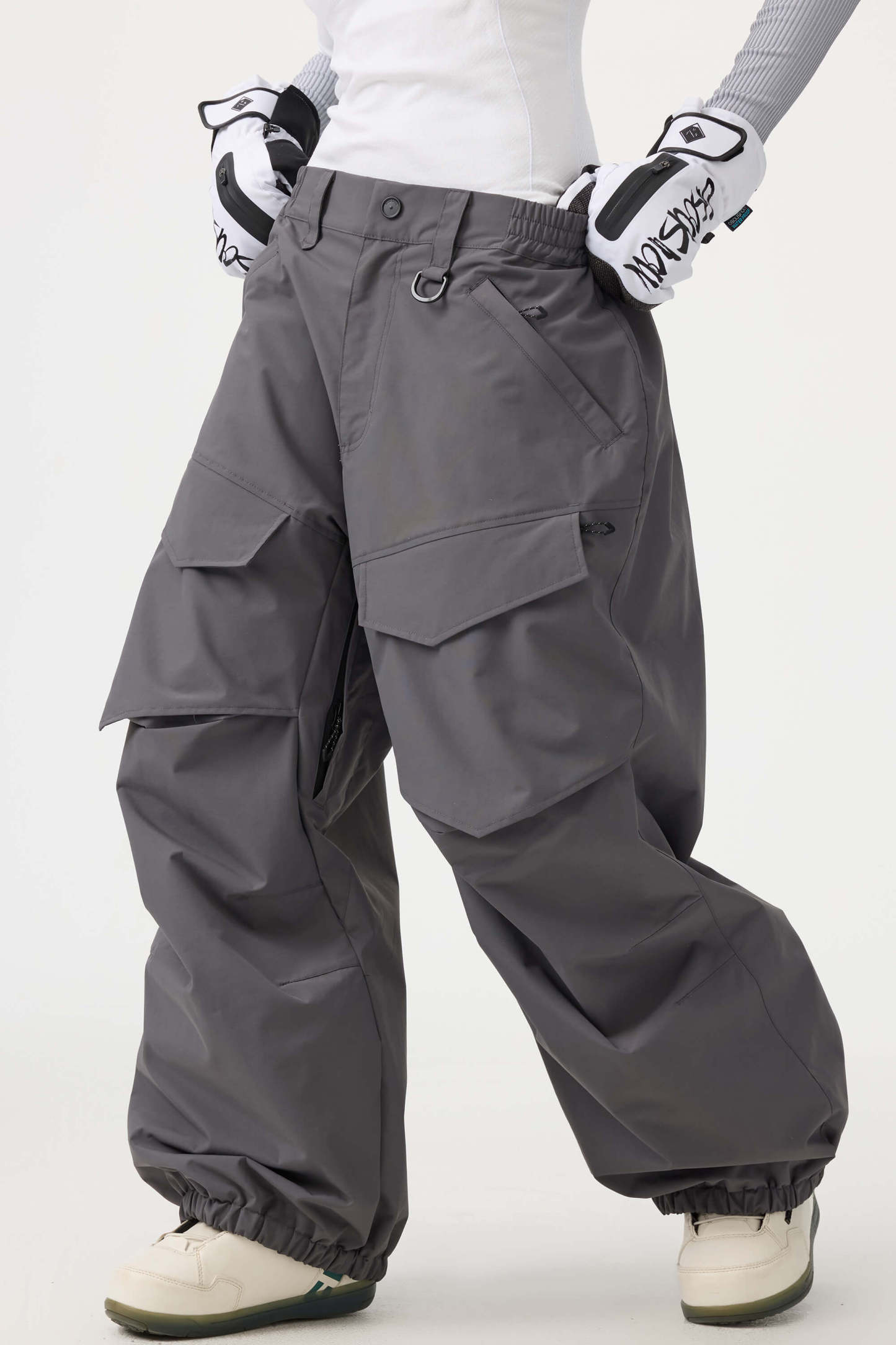 Crafted with advanced nylon weaving and a water-resistant coating, these pants offer superior abrasion resistance and long-lasting durability. With a next-gen silicone anti-slip powder skirt, they ensure a snug, windproof seal that keeps you warm while rocking a baggy look. Four large pockets and key hook provide added practicality.