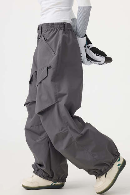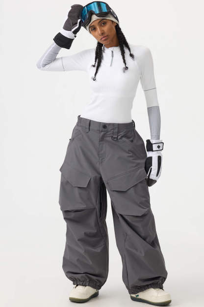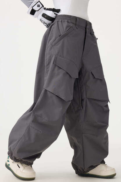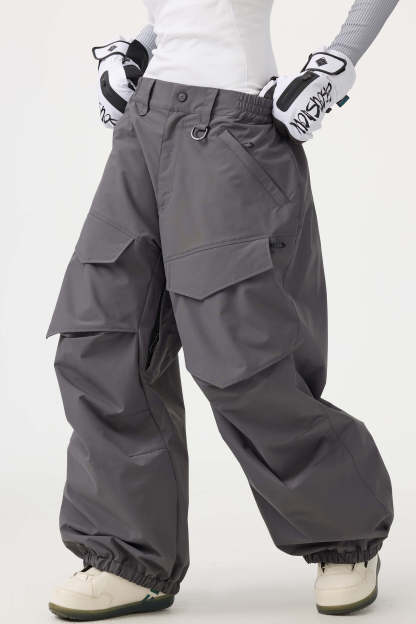 Women's Dark Gray Baggy Utility Wear-resistant Snow Pants