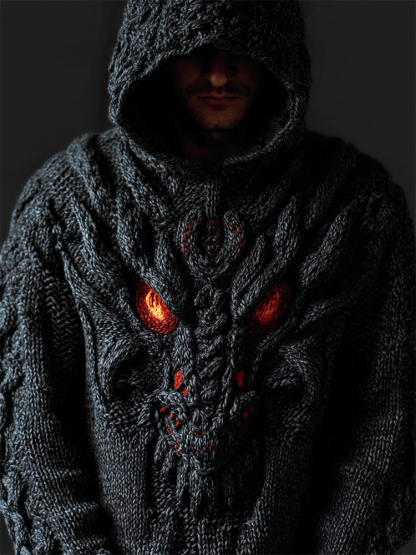 Men‘s Viking Evil Dragon Celtic Cozy Chunky Hooded Sweater