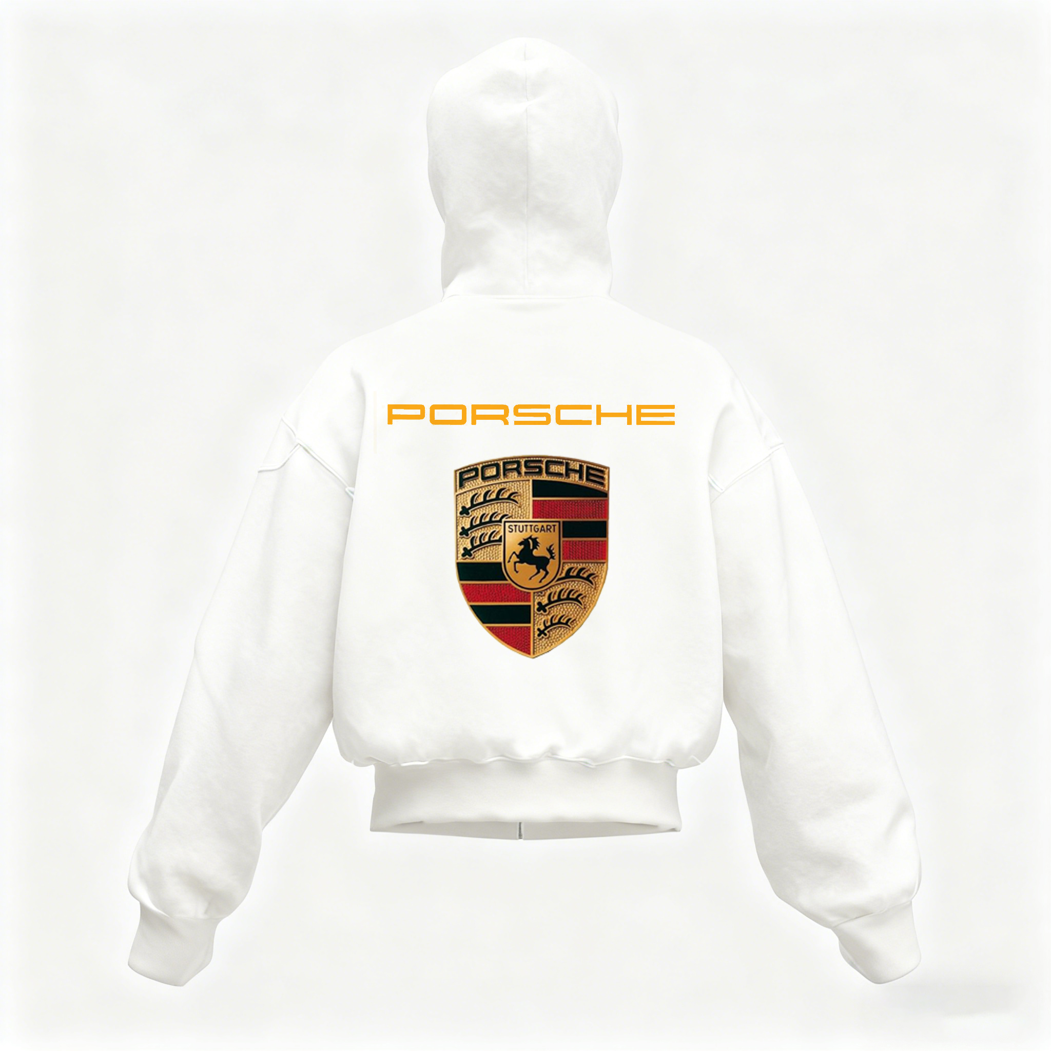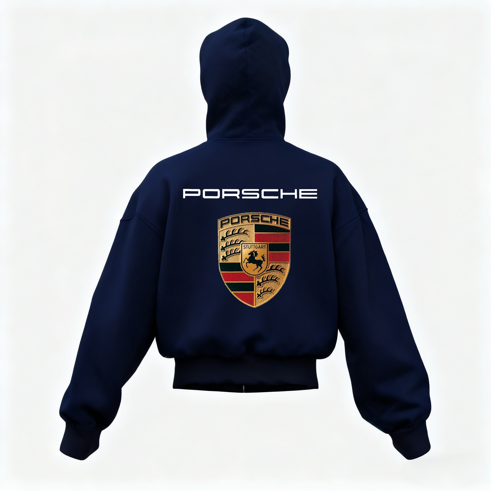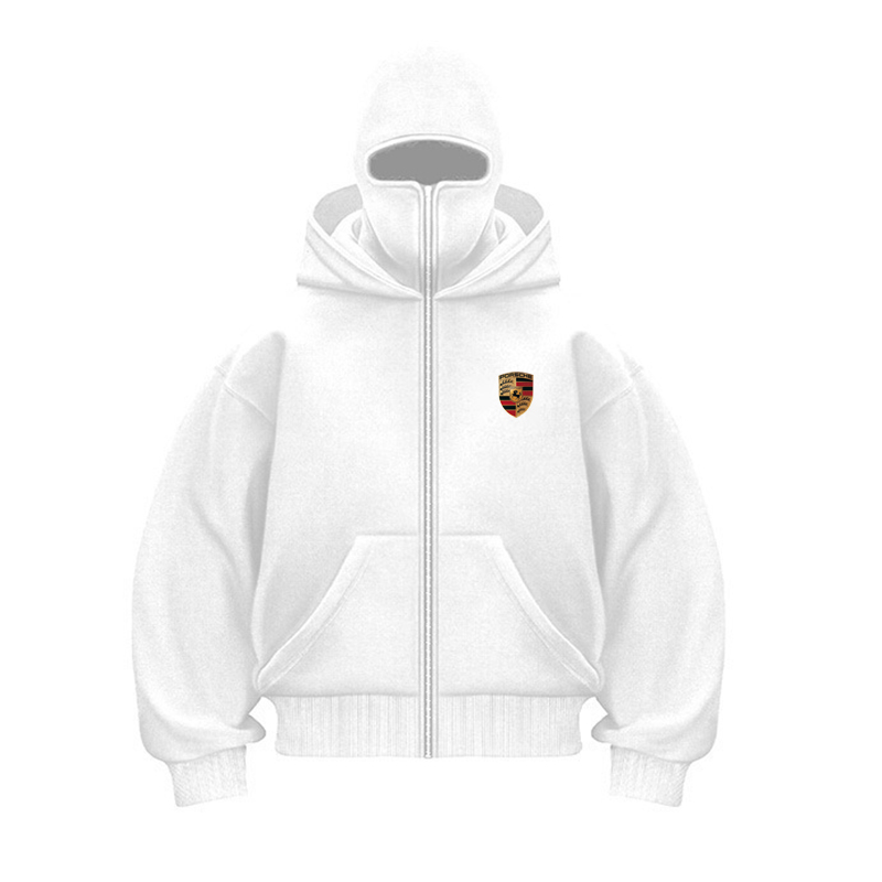 • Design Elements: Embossed logo on the back, hooded design, ribbed cuffs and hem