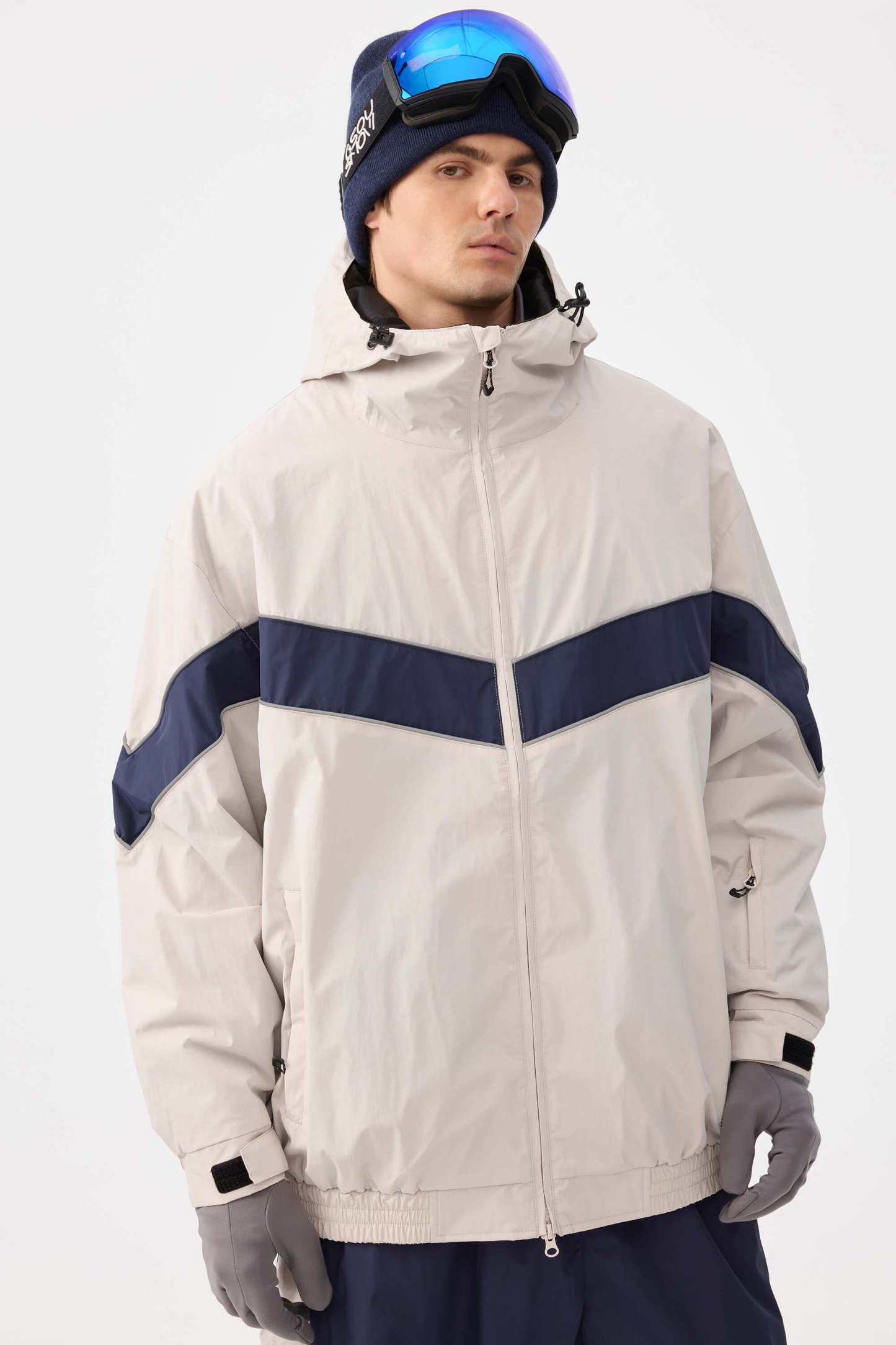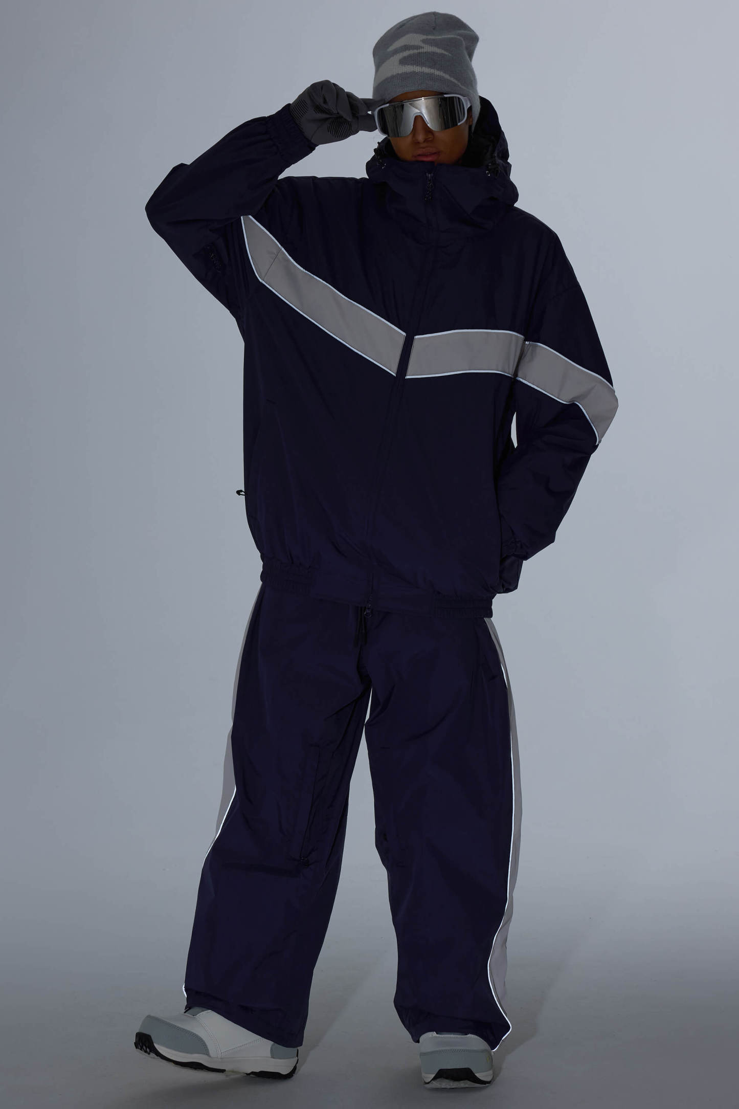Men's Navy Retro Track Chevron Stripe Snow Jacket