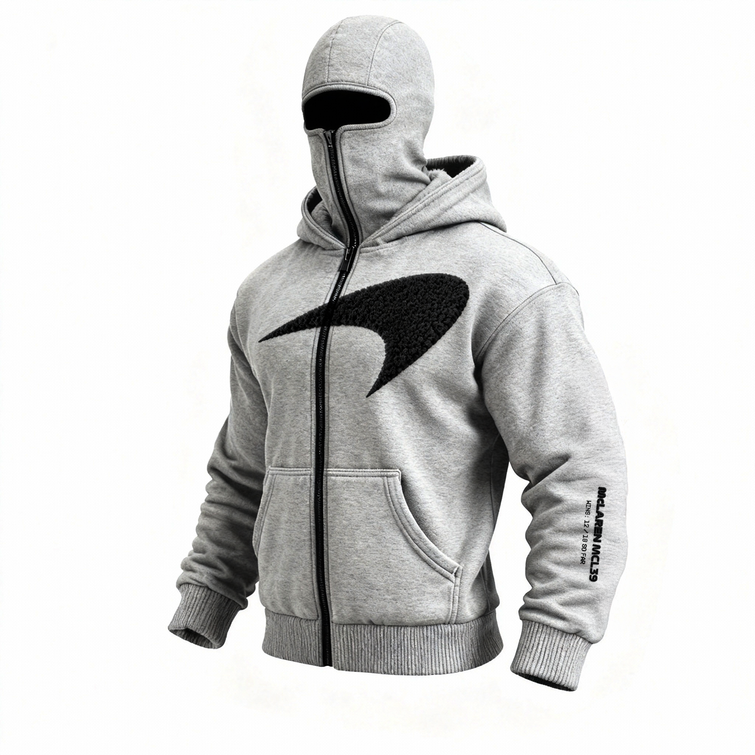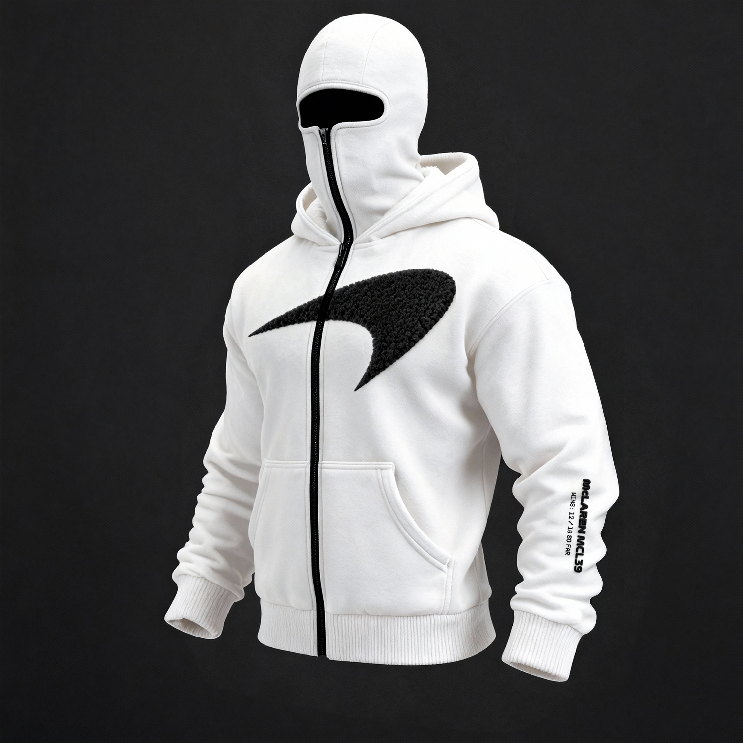 • Design Elements: Embroidered Logo on Chest, Text Details on Sleeves and Hood