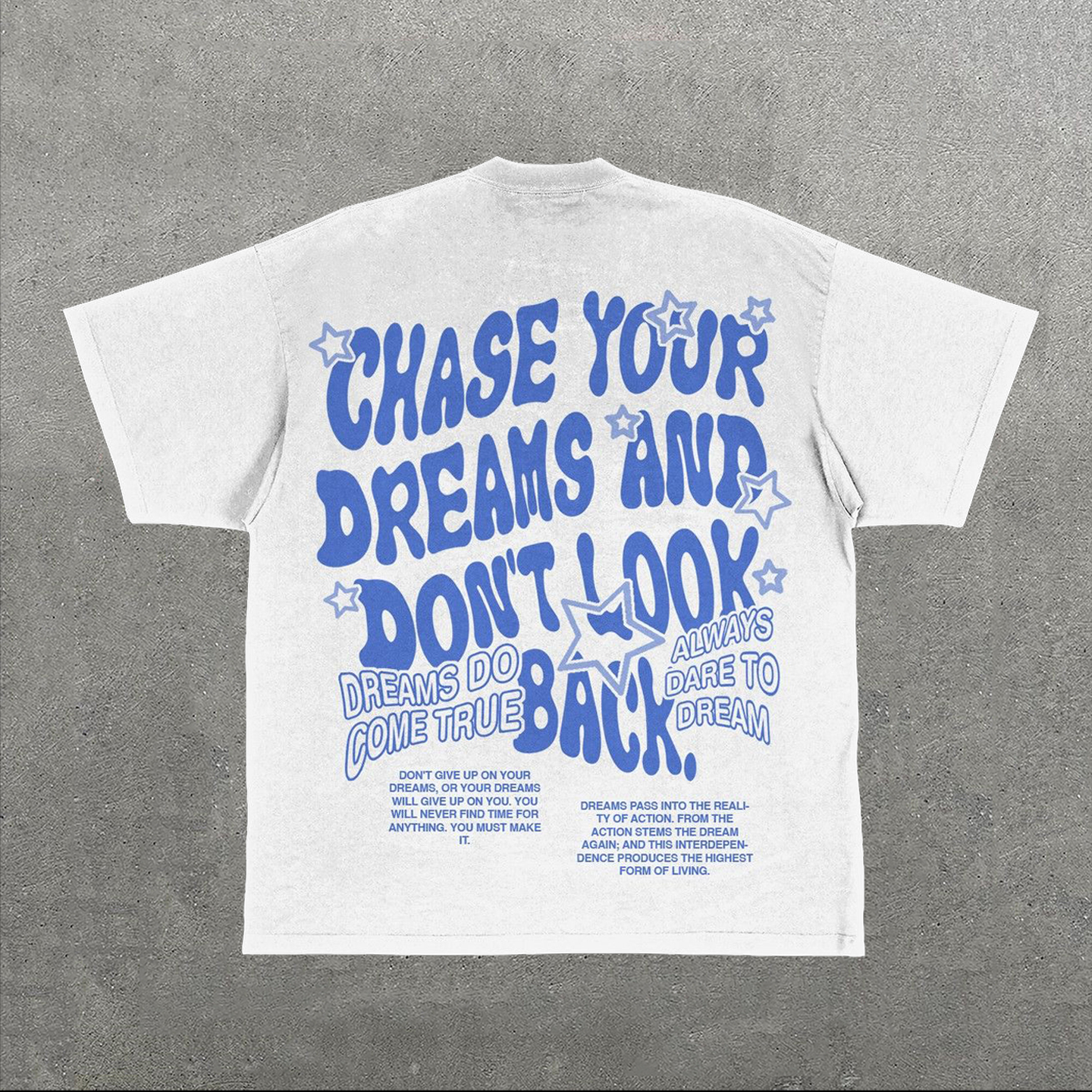 Chase Your Dreams And Don't Look Back Letters Print Short Sleeve T-Shirt