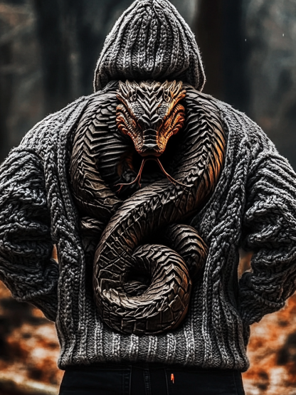 Men's Viking Tribal Dragon Celtic Chunky Knit Hooded Sweater