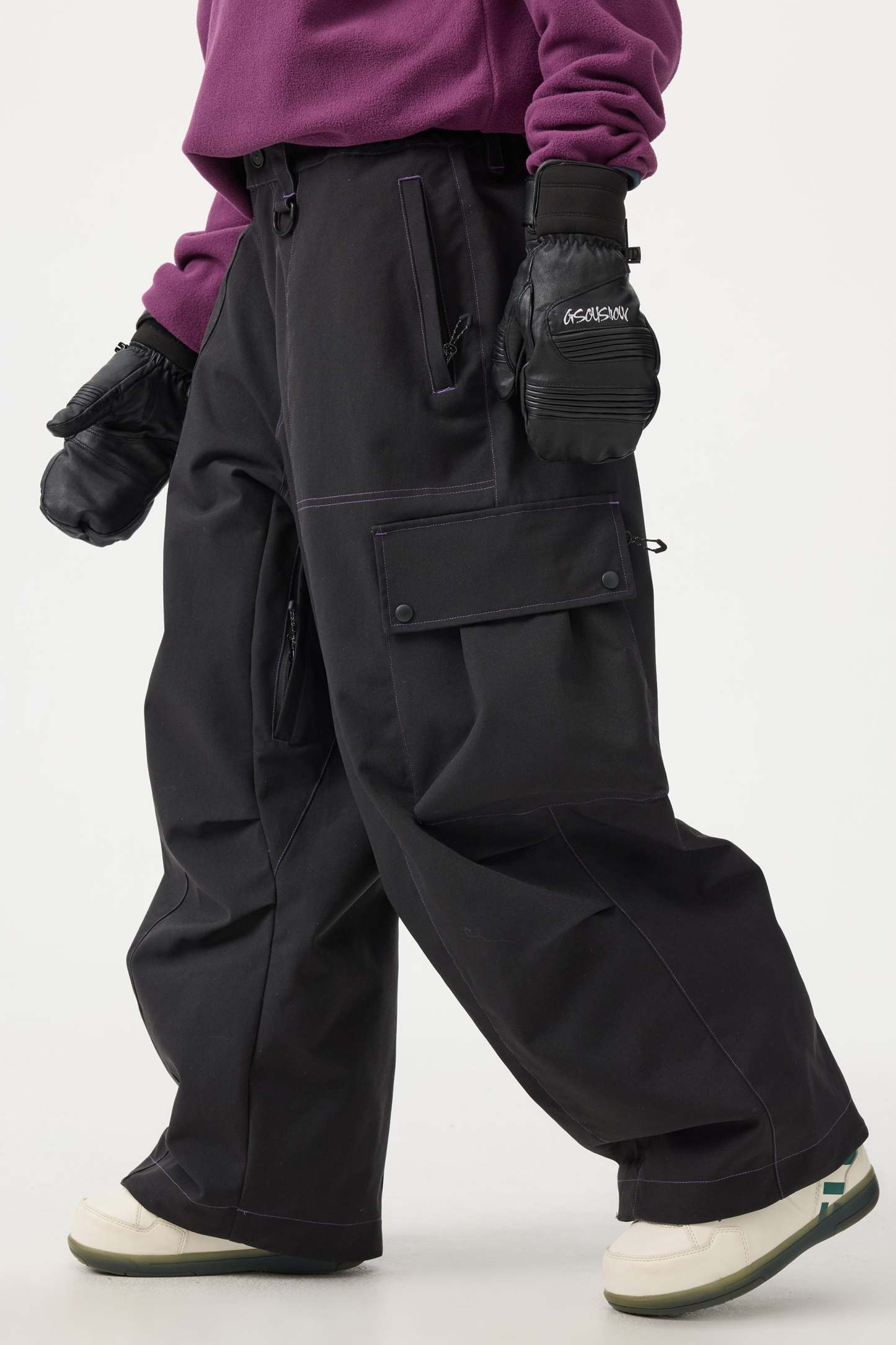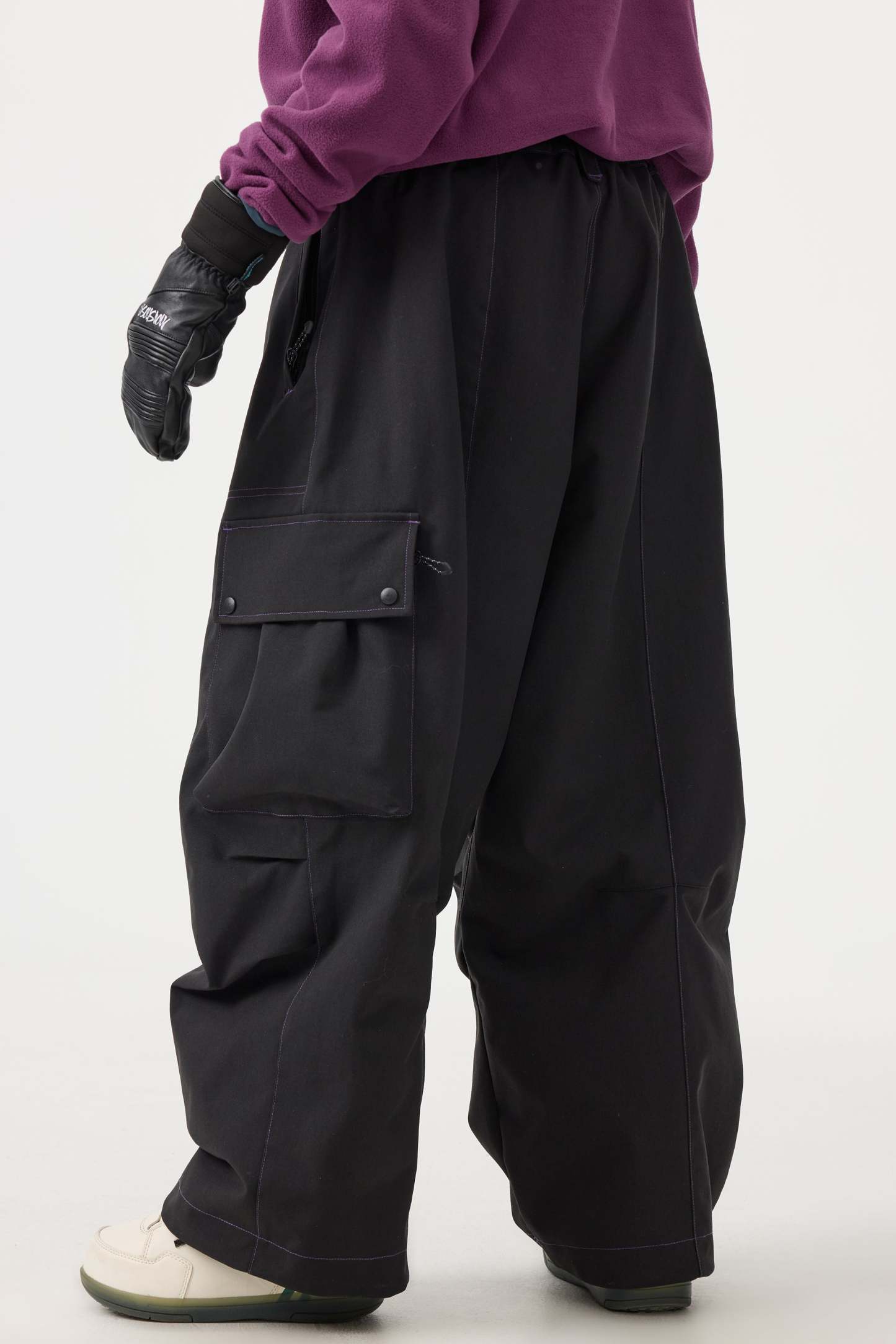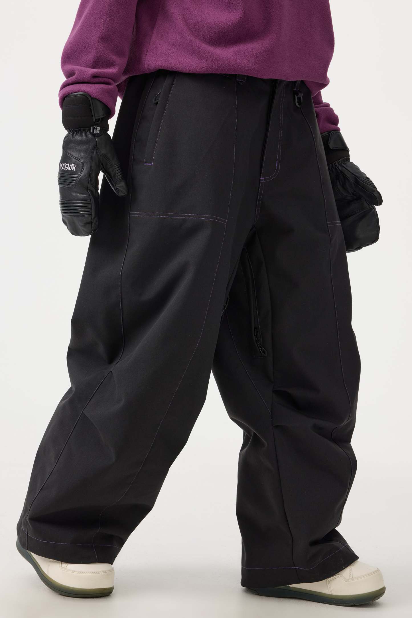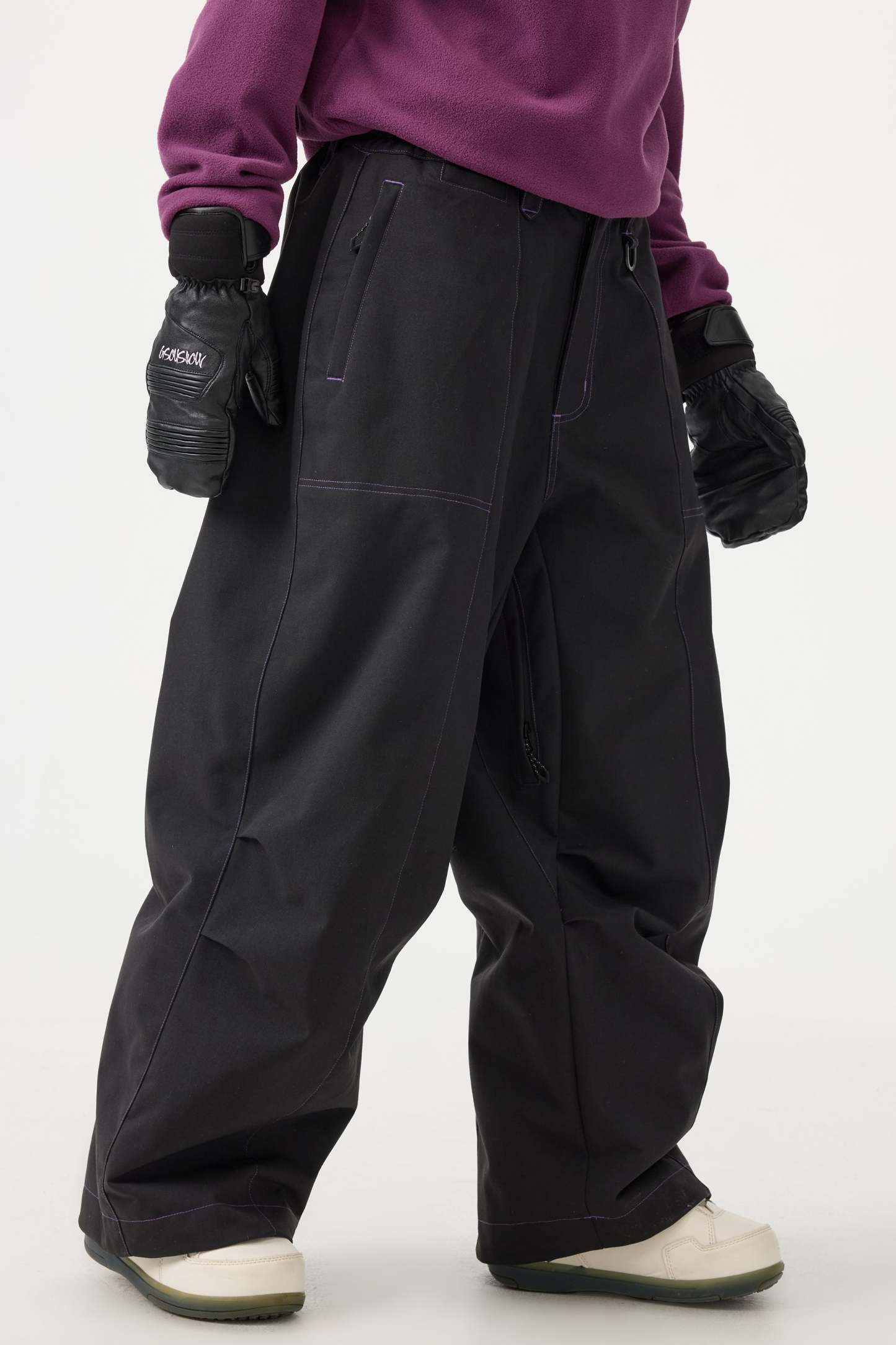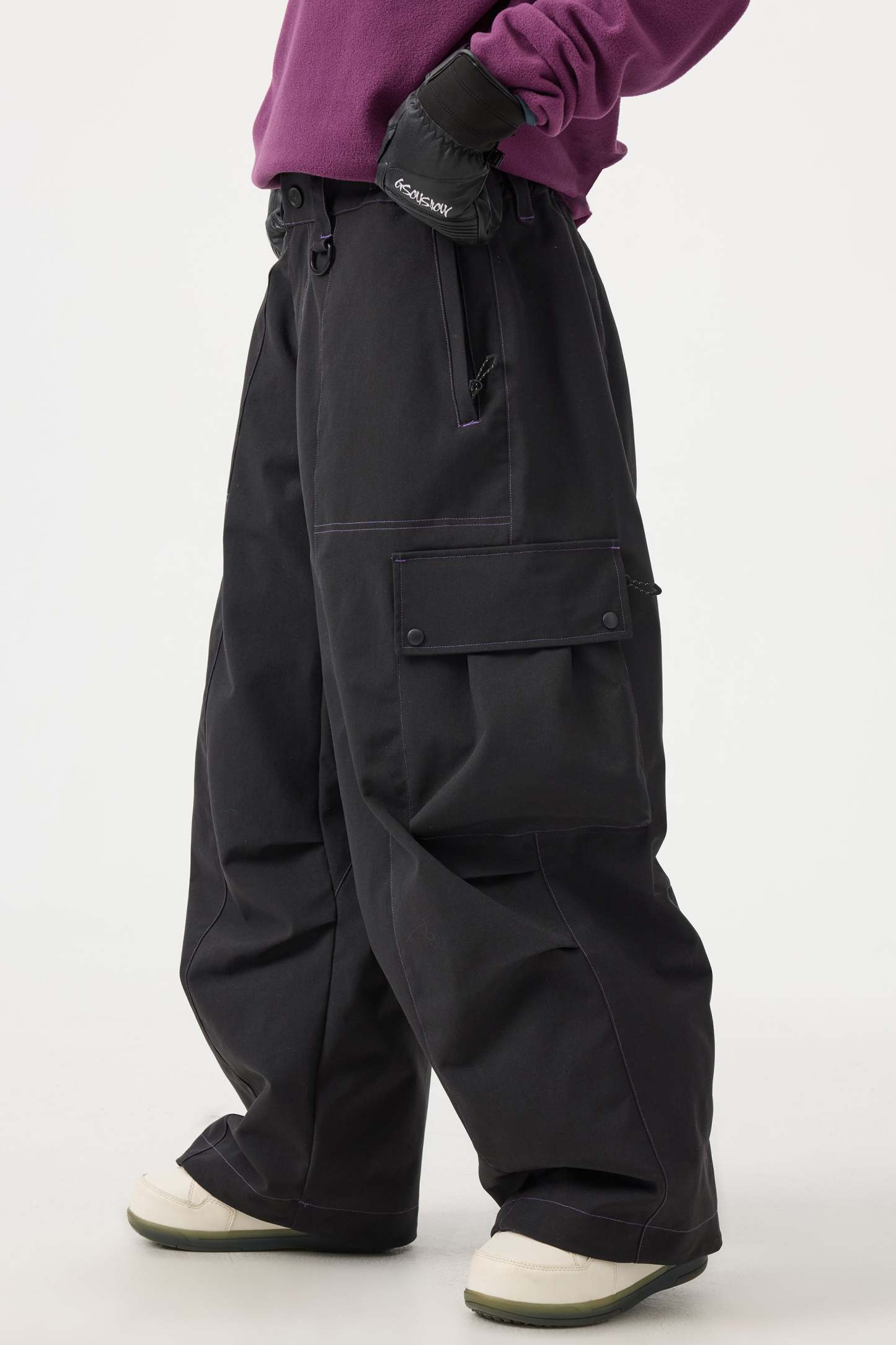 Women's Black Baggy Oxford Wear-resistant Snow Pants