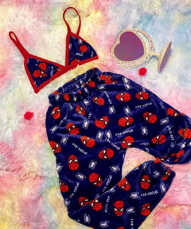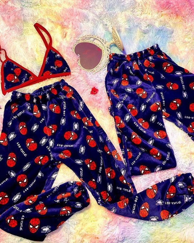 3 pieces total, included 1 bikini top (women's), 2 pajama pants (women's and men's)