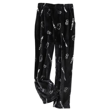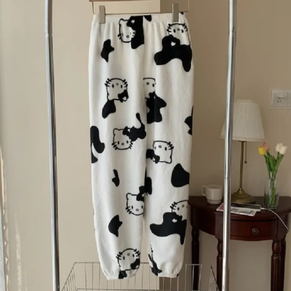 Hello Kitty New Style Flannel Pajamas Pants White Black Female Soft Plush Y2k Clothes Kawaii Girl Casual Home Cat Pants Birthday gift Pjs