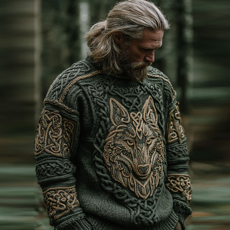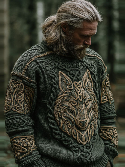 Men's Vintage Viking Wolf Pattern Cozy Knit Pullover Sweater