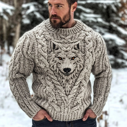 Men's Wolf Inspired Viking Celtic Jacquard Cozy Chunky Sweater