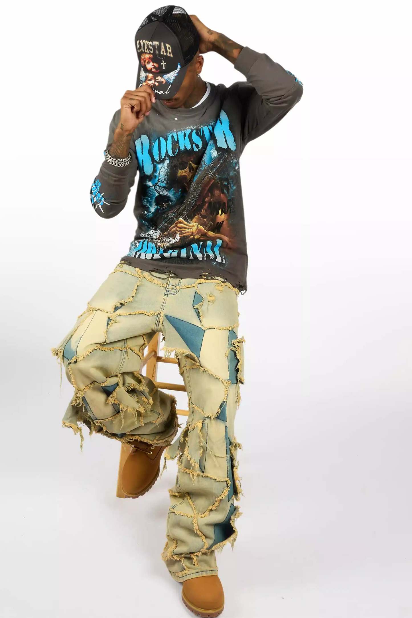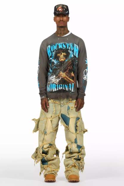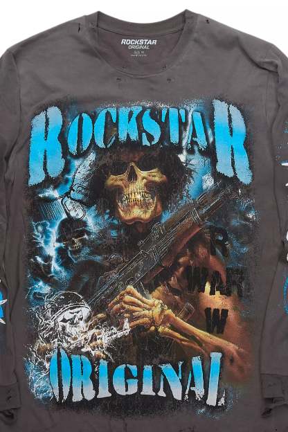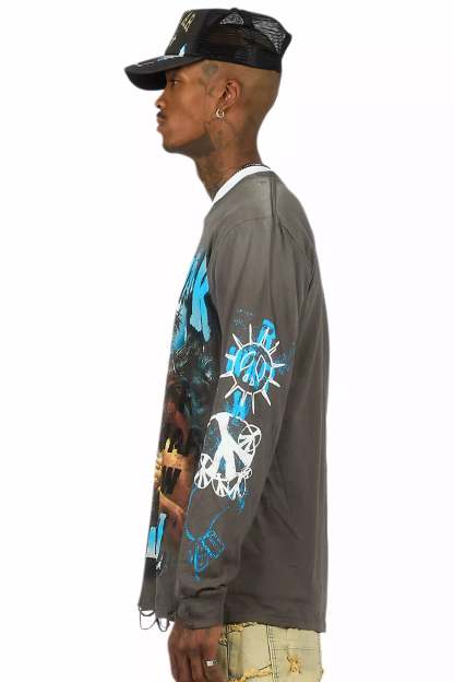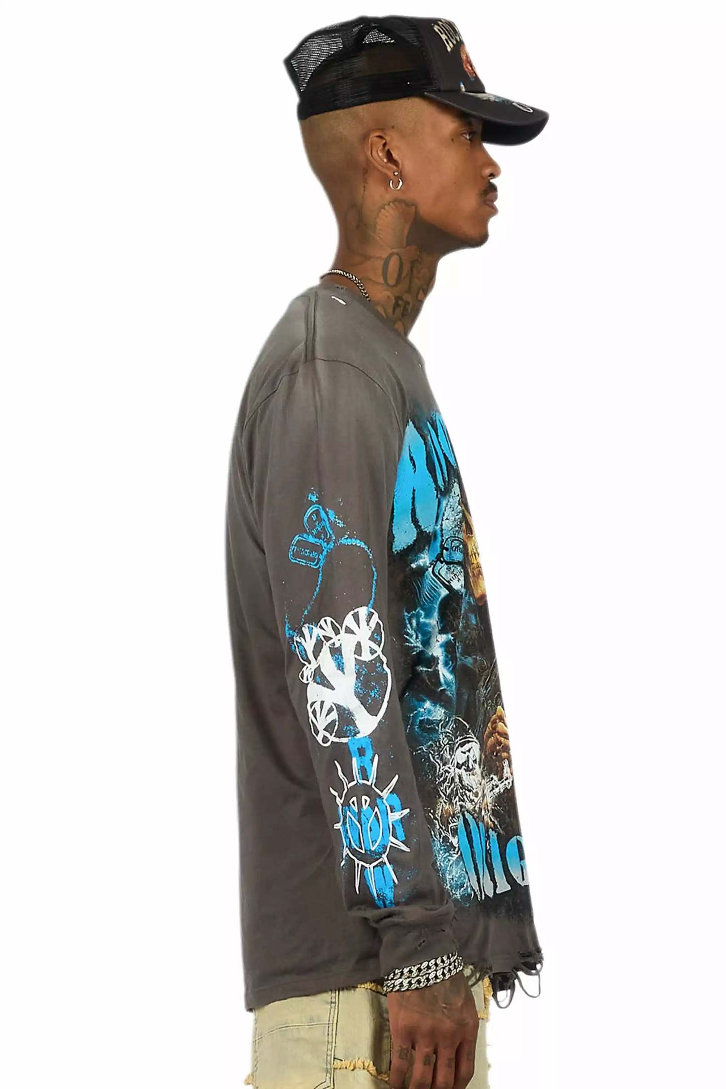 An urban streetwear long sleeve tee for men in charcoal. Designed with a worn-in wash and custom detailing for a must-cop staple piece tee.