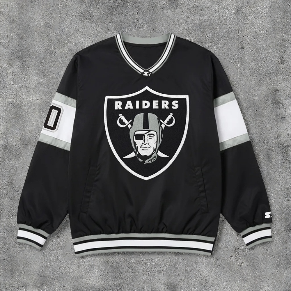 Unique Classic Raiders Logo Print V-neck Pullover