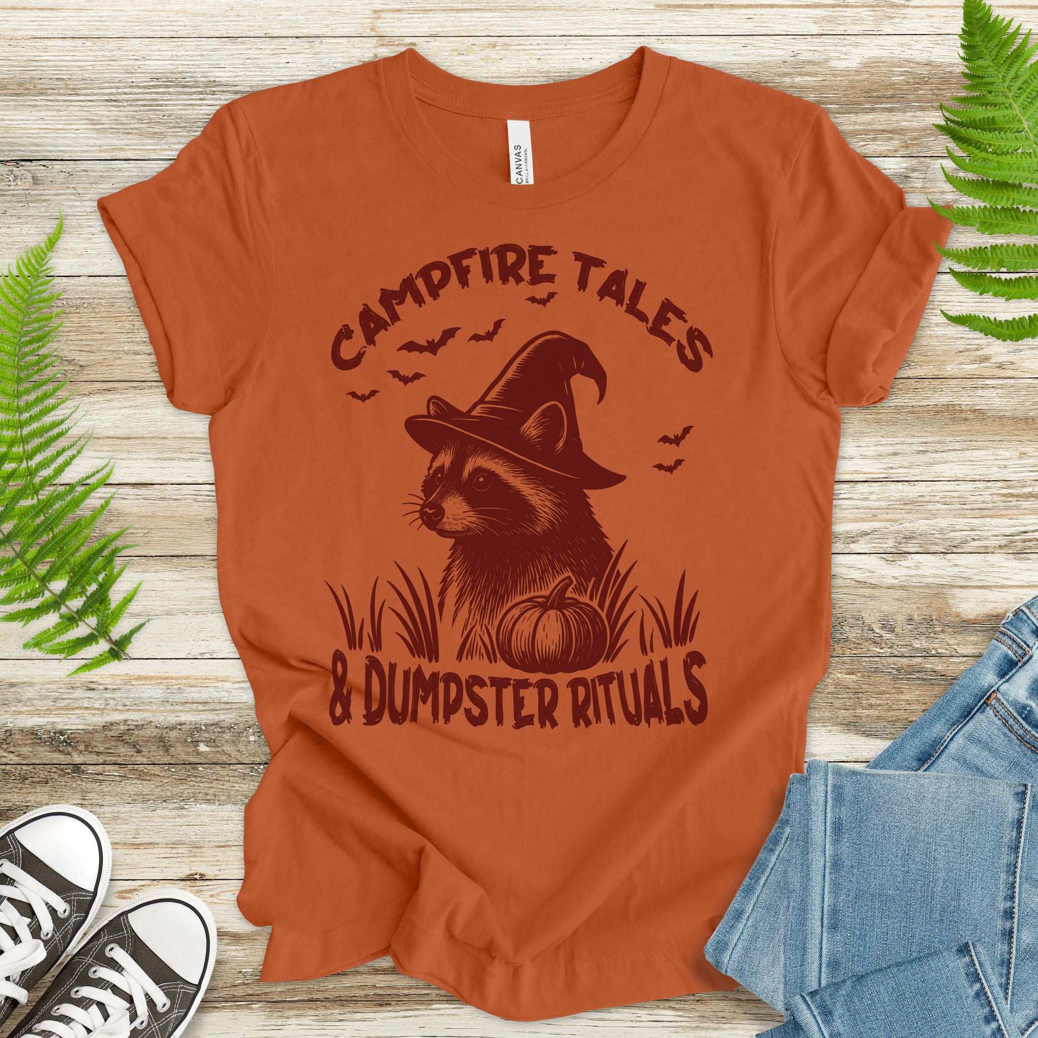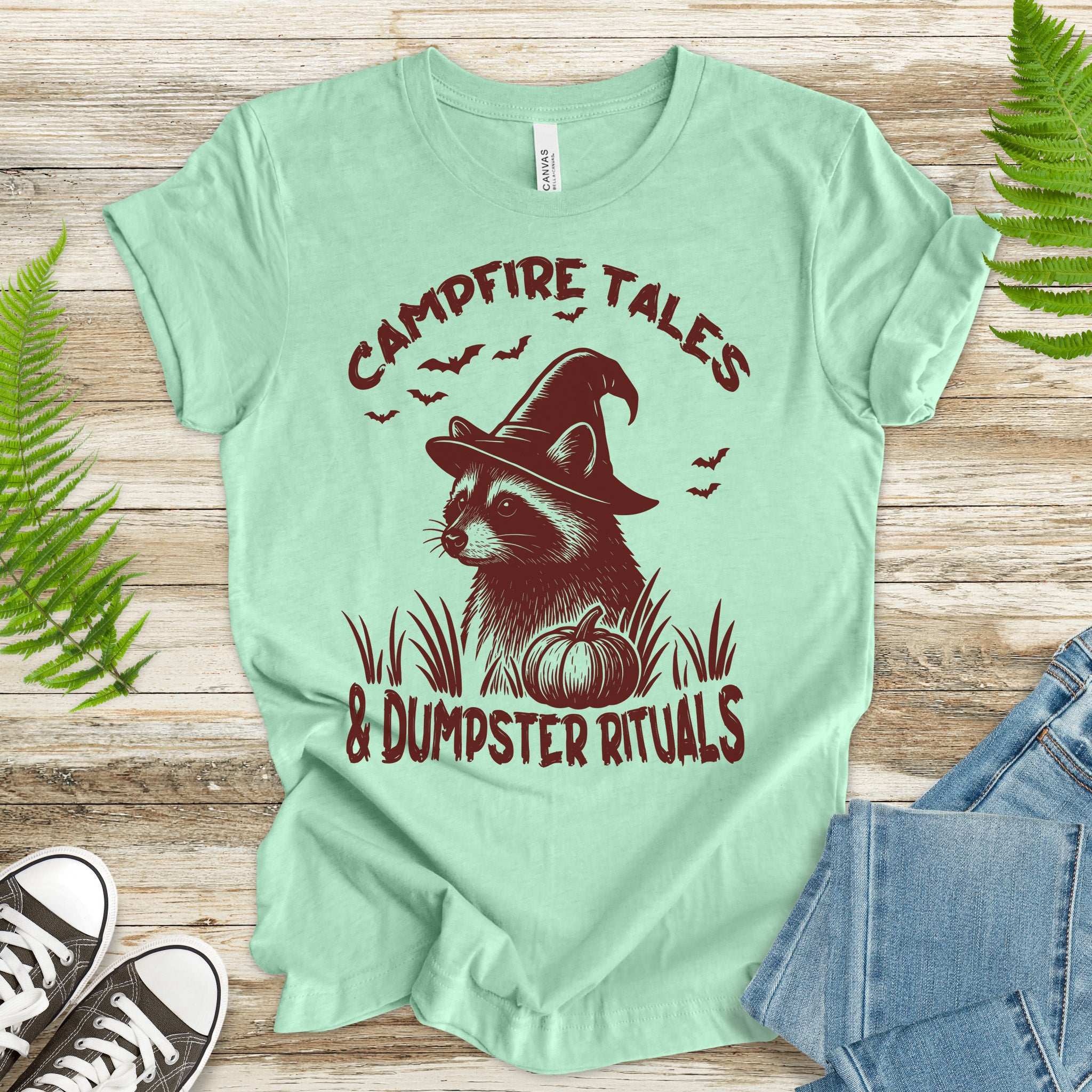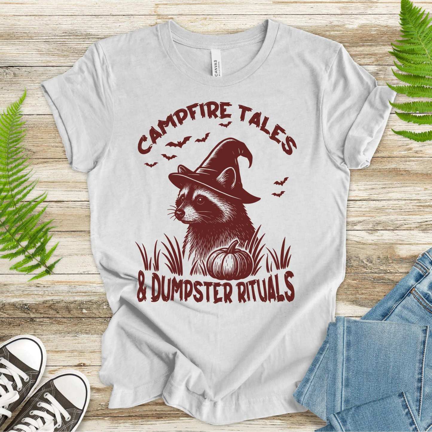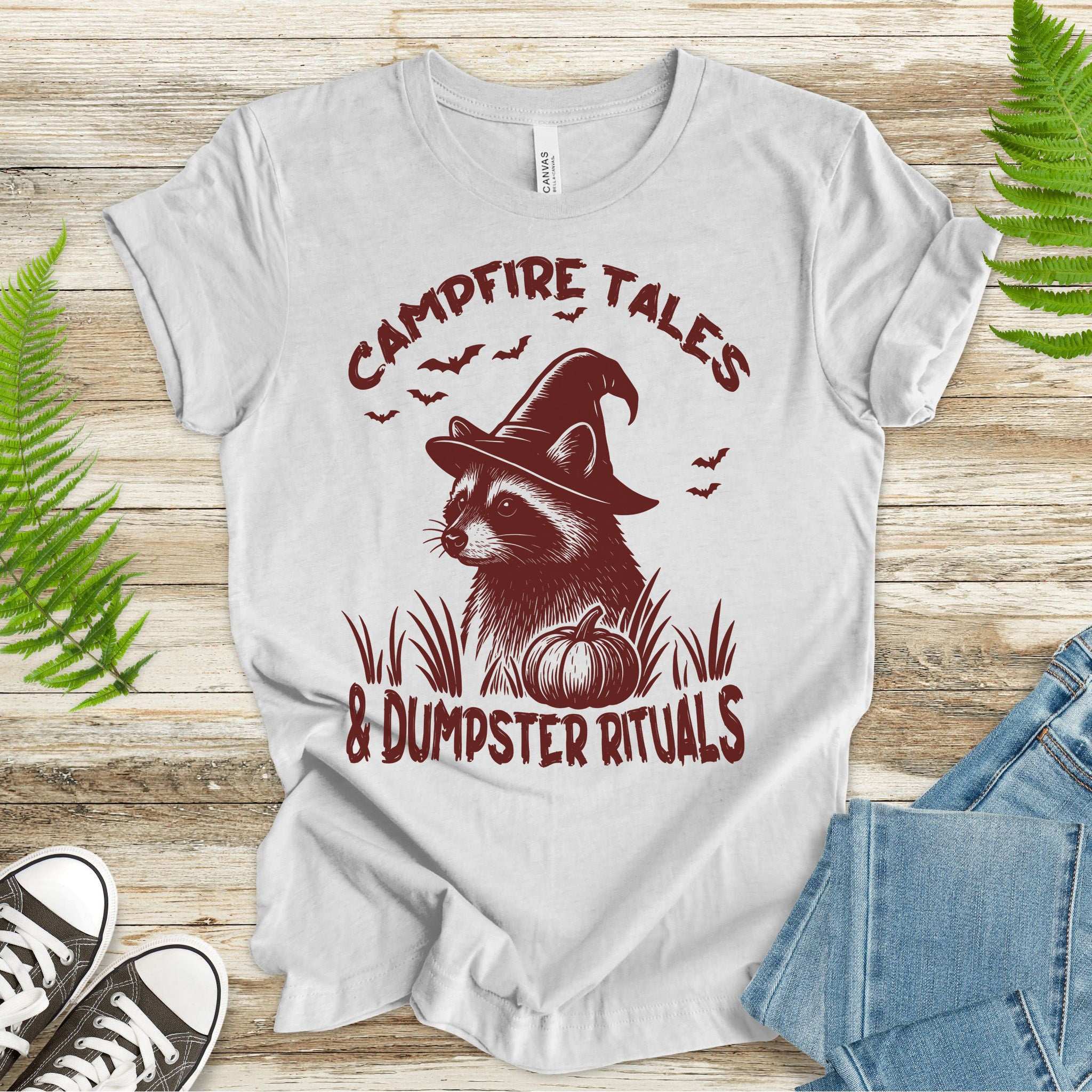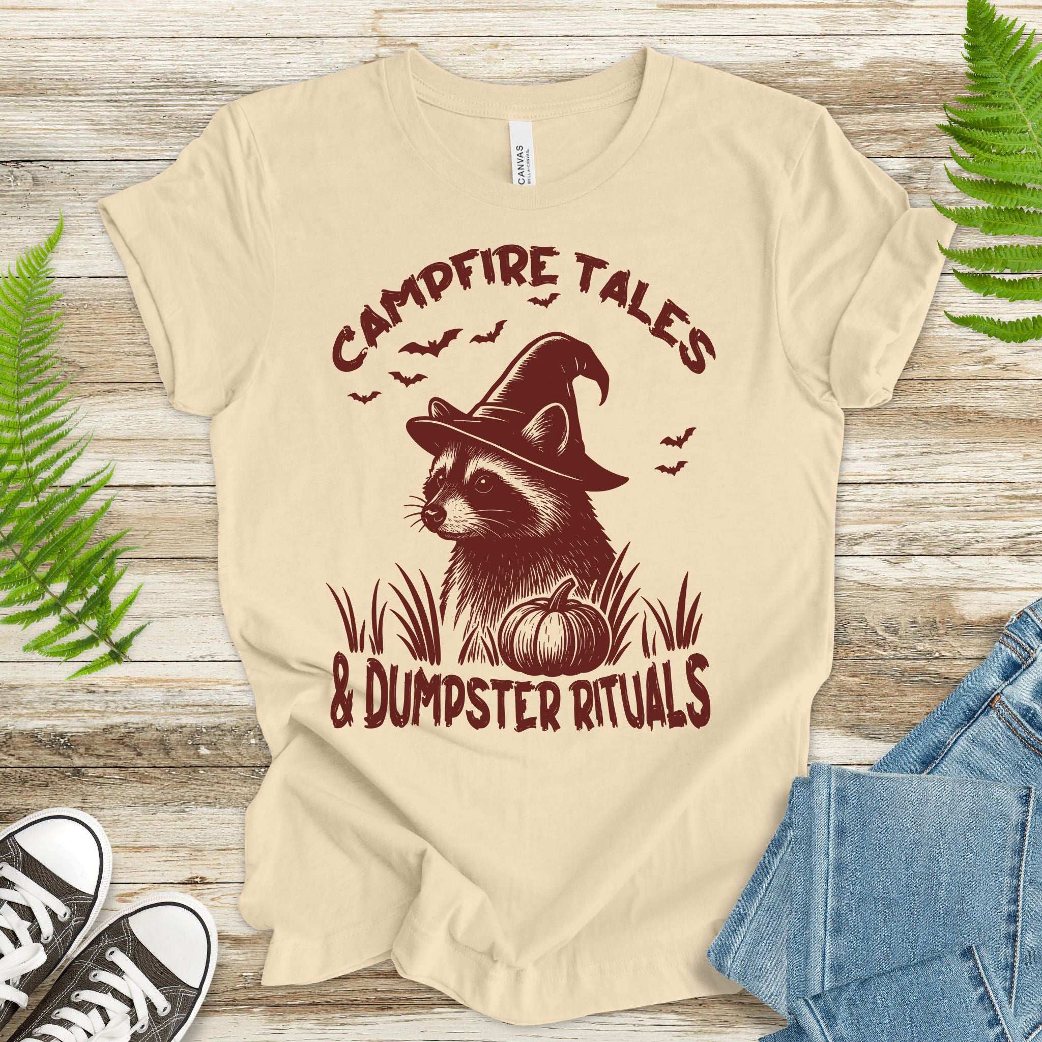 Campfire Tales Raccoon Halloween T-Shirt – Dumpster Rituals Witchy Tee