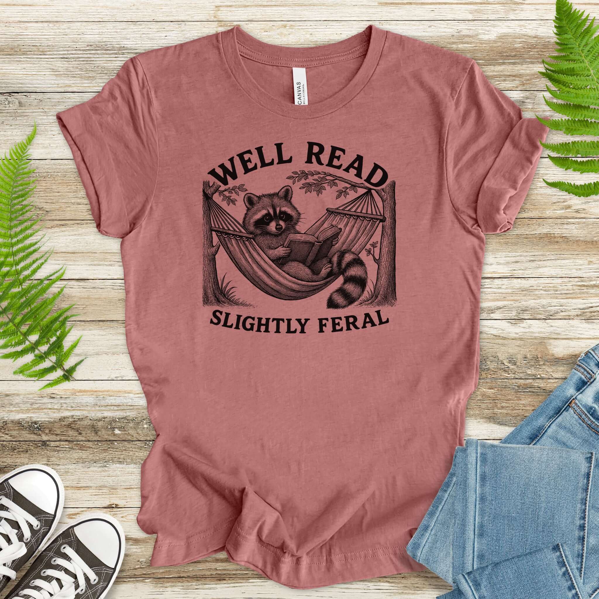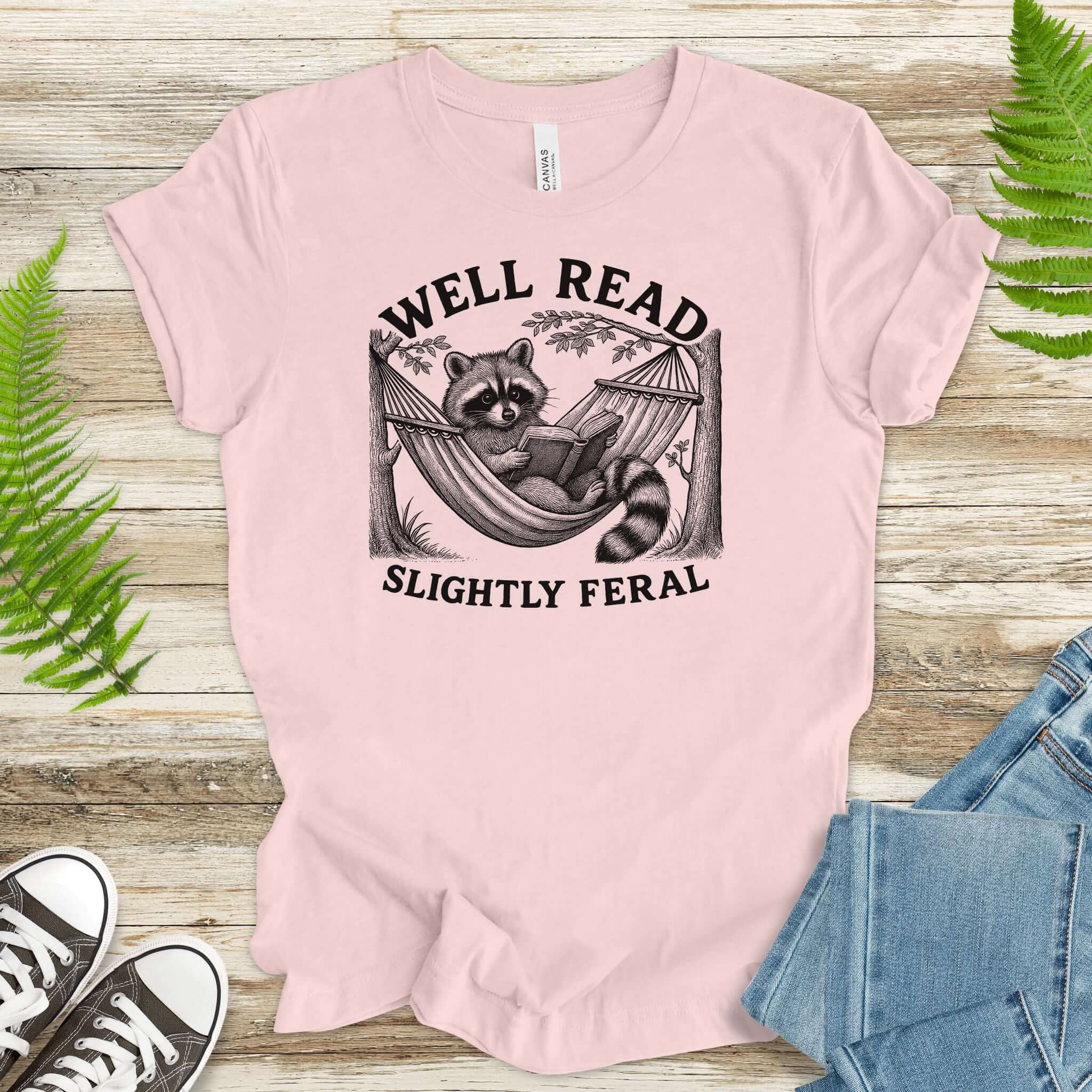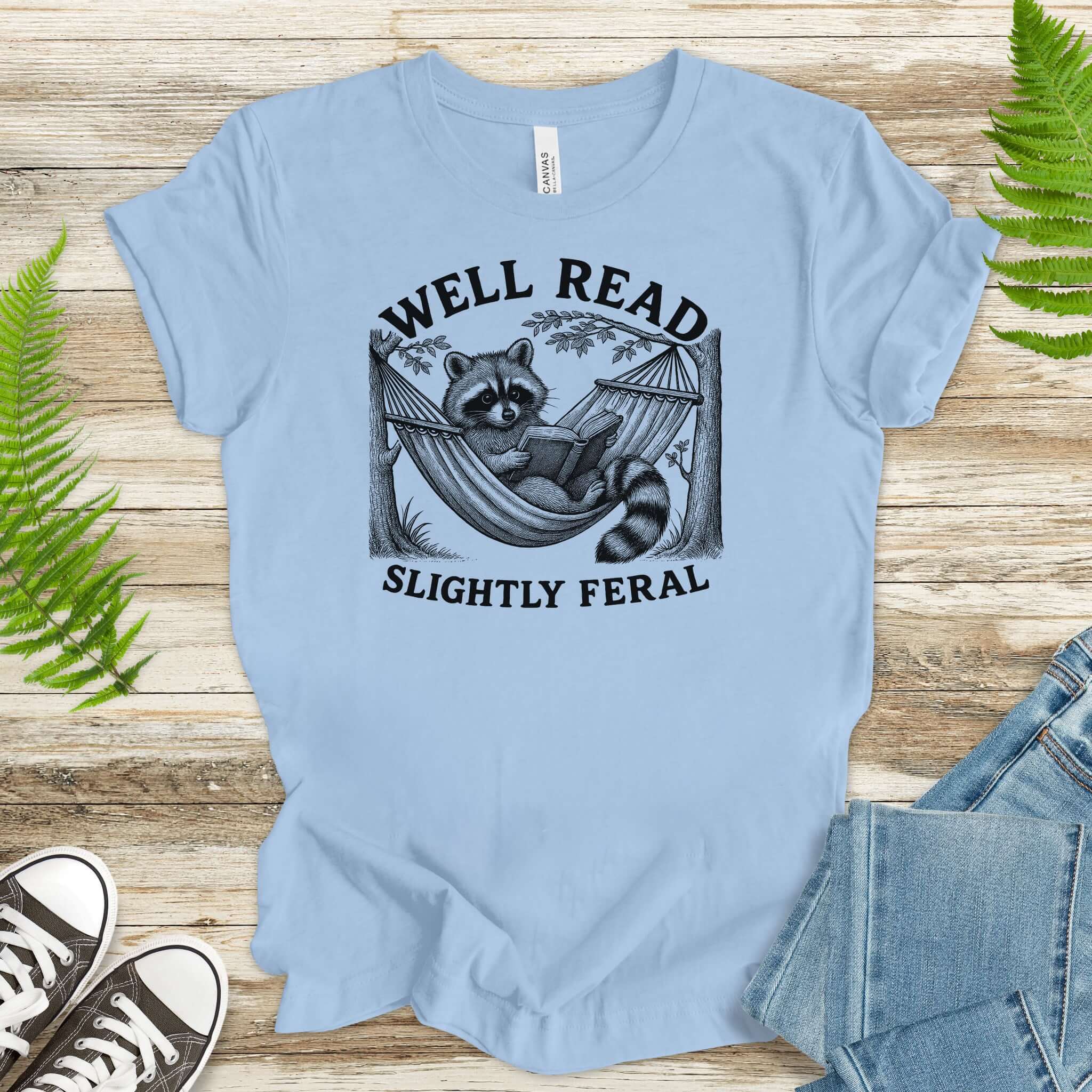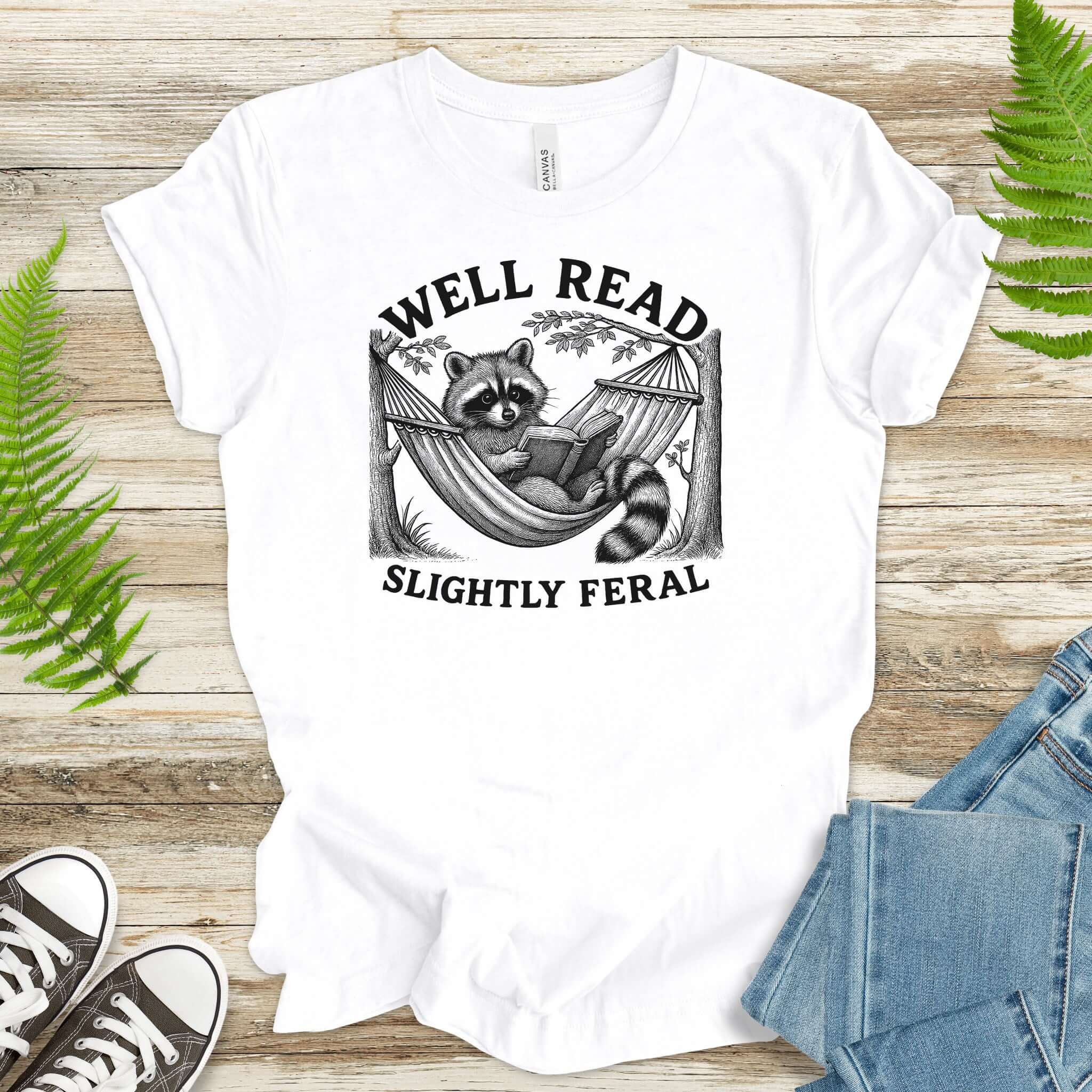 Raccoon Well Read Slightly Feral T-Shirt – Funny Book Lover Tee for Raccoon Fans