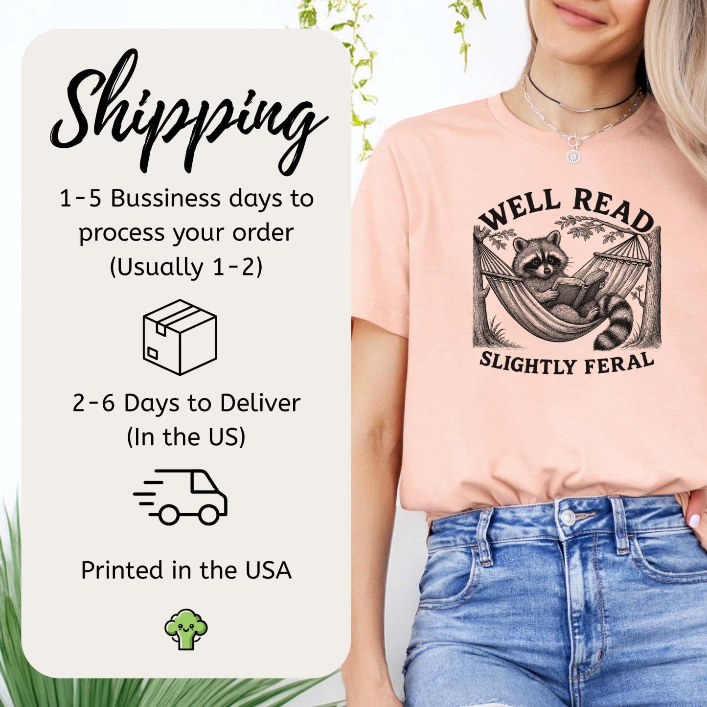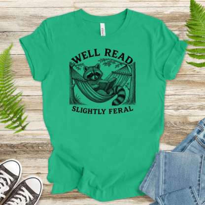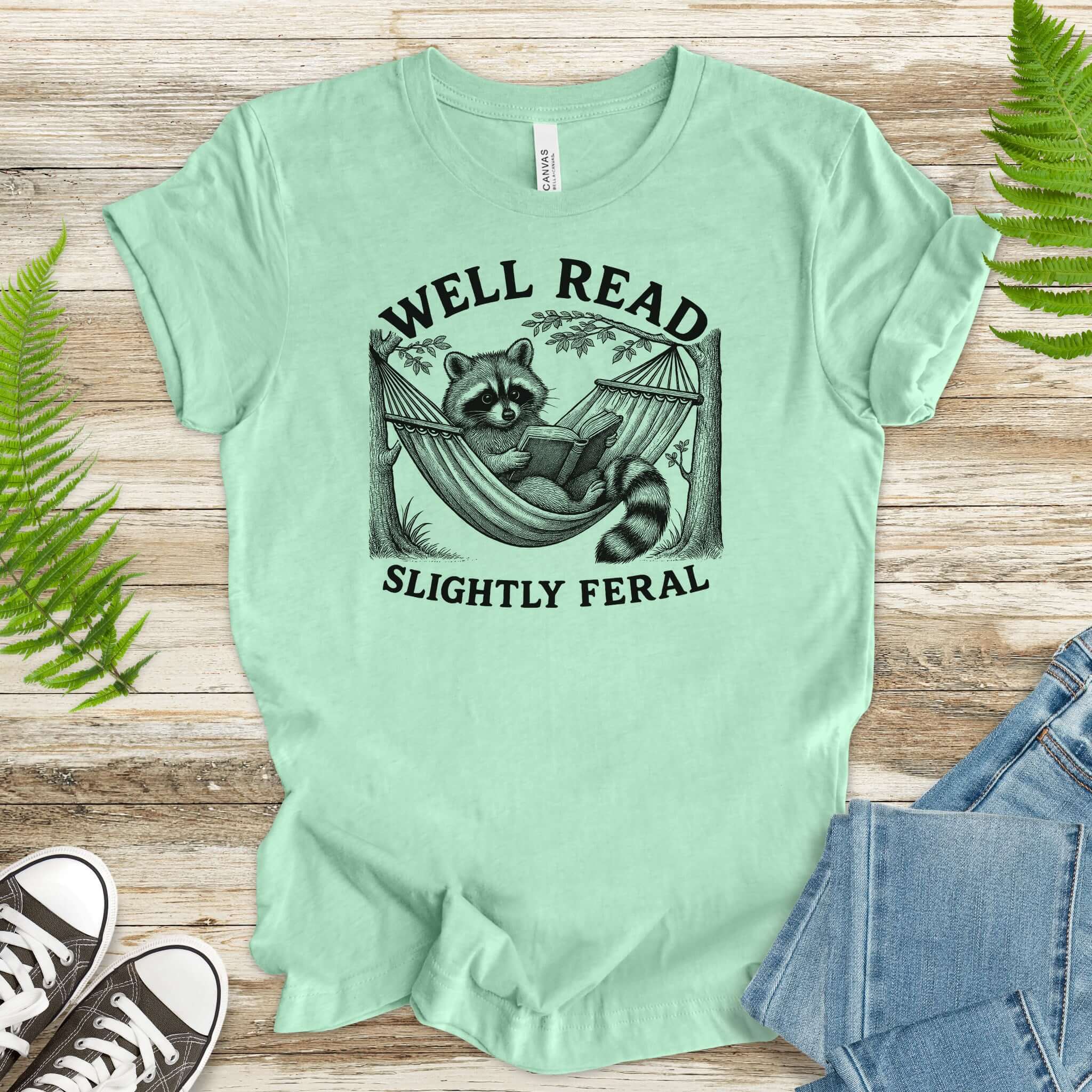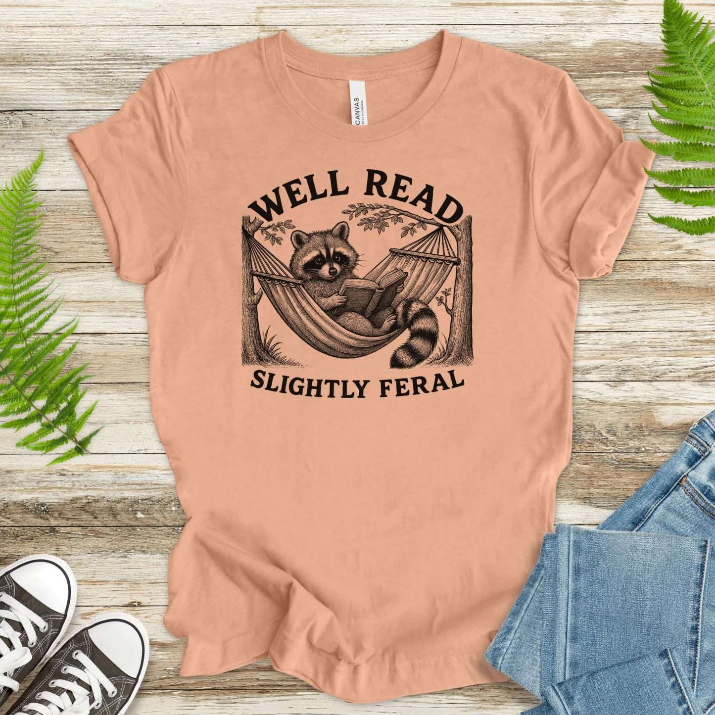 Raccoon Well Read Slightly Feral T-Shirt – Funny Book Lover Tee for Raccoon Fans