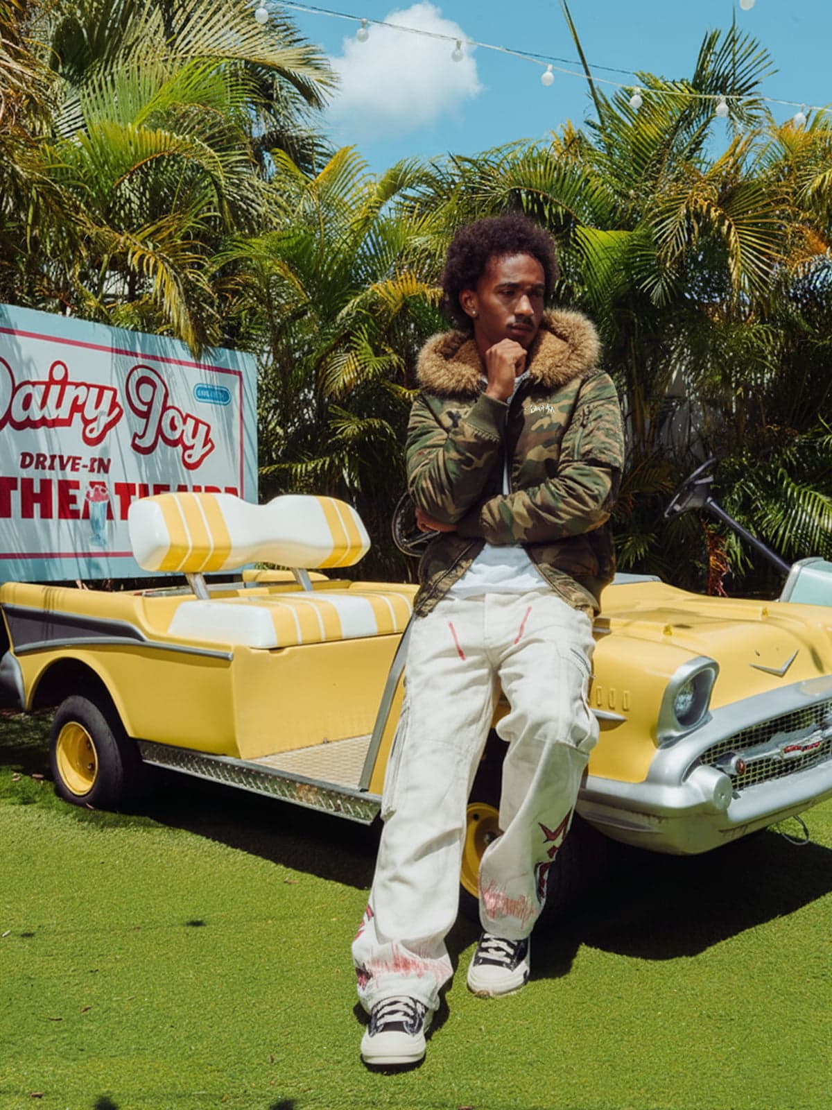 • Design Elements: Camouflage pattern, faux fur-lined hood, front zipper closure