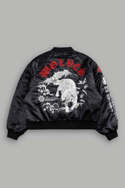 Darc Okami Cropped Satin Bomber Zip Jacket in Black