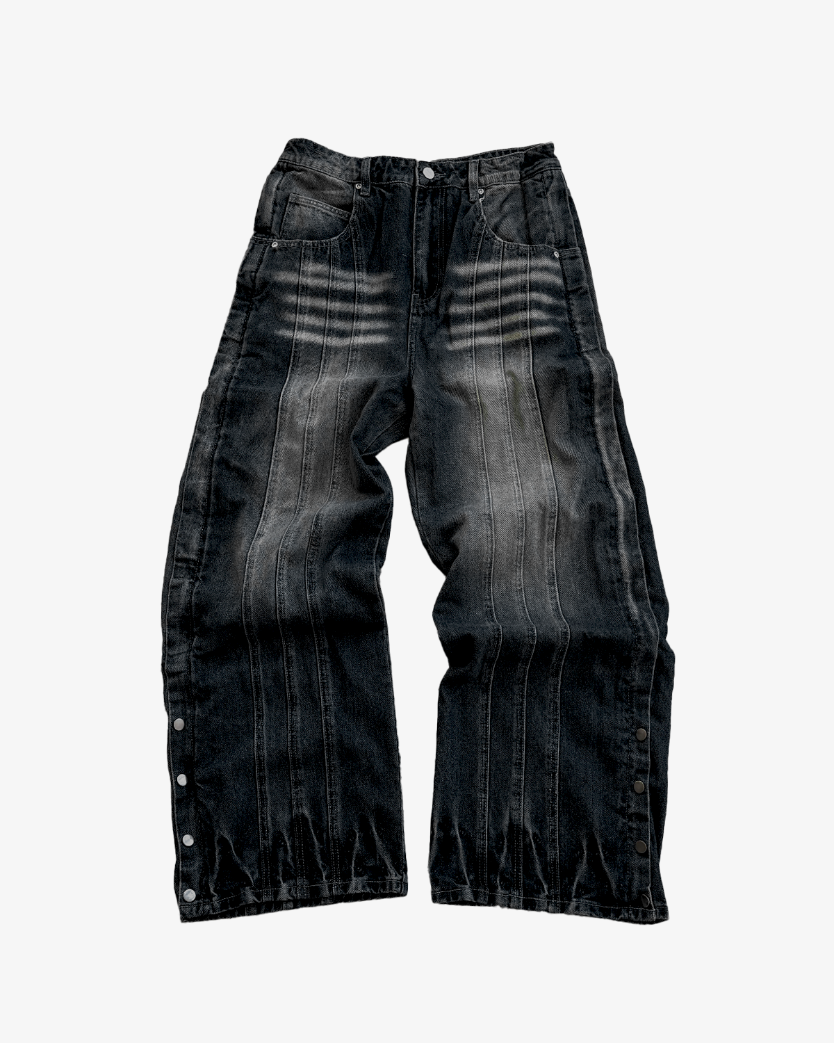 These jeans feature a hidden embroidered floral detail that can be revealed with a side zipper, along with front seam accents and metal stud detailing at the ankle.
