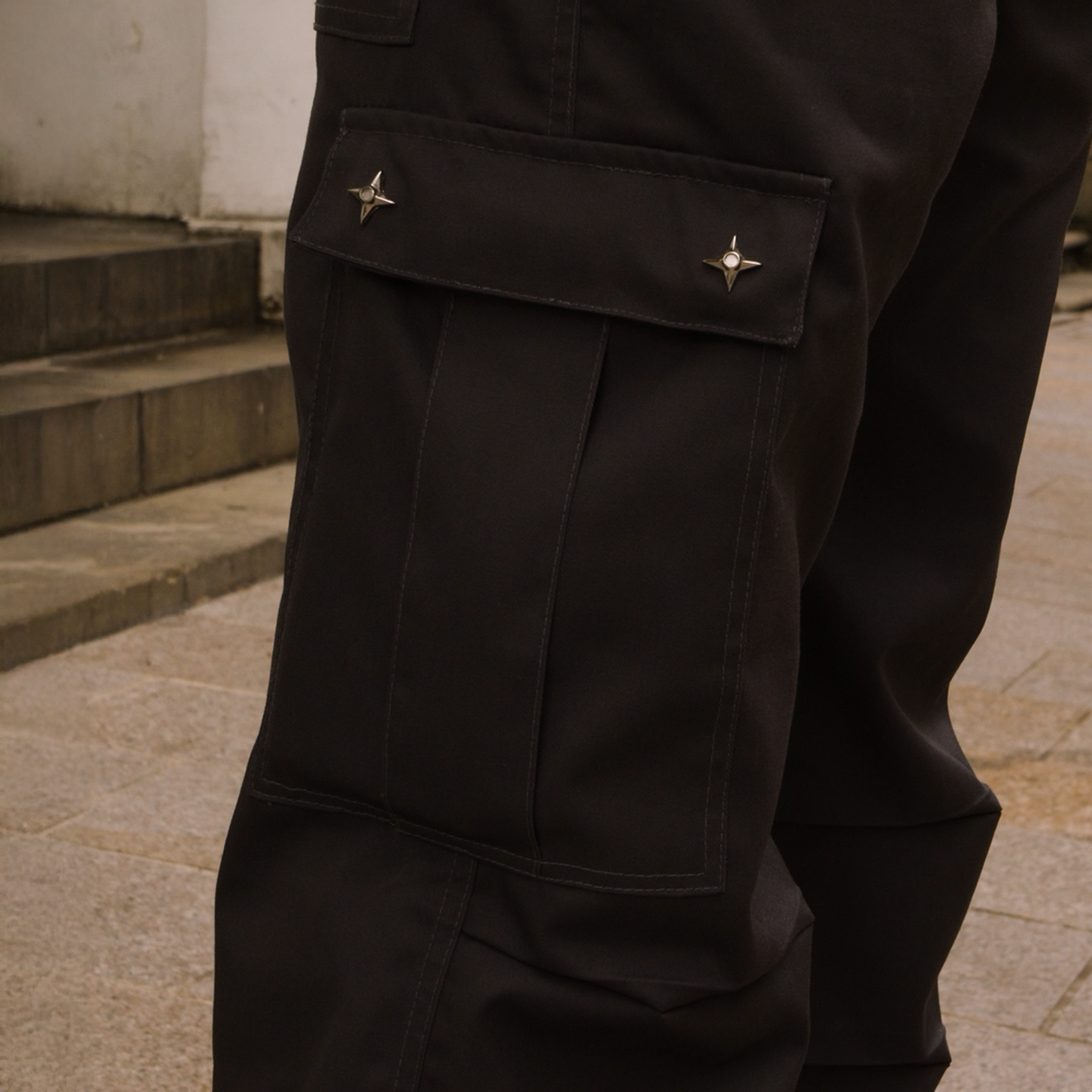 CARGO, BACK, AND SIDE POCKETS WITH MIXED CLOSURES