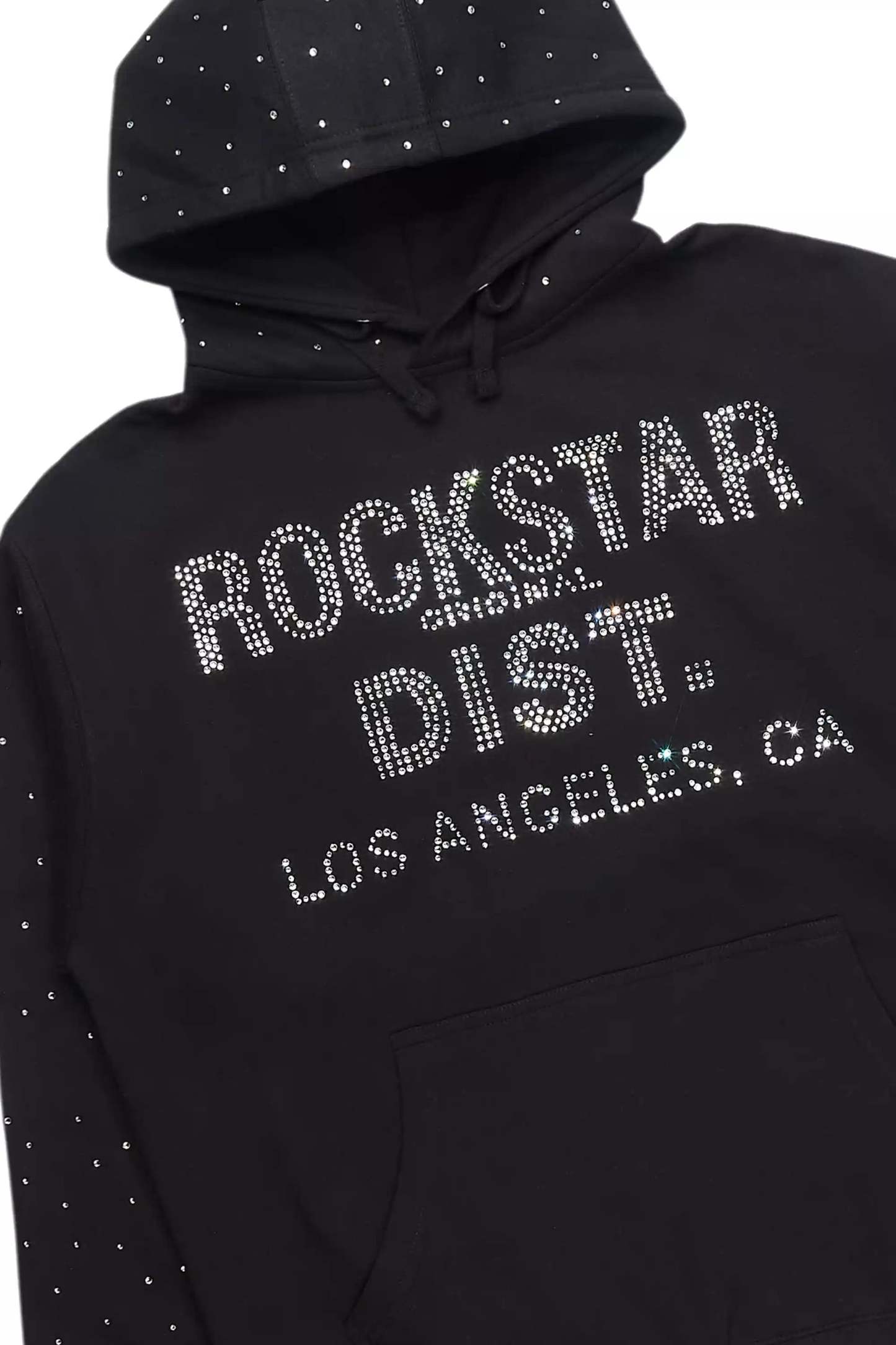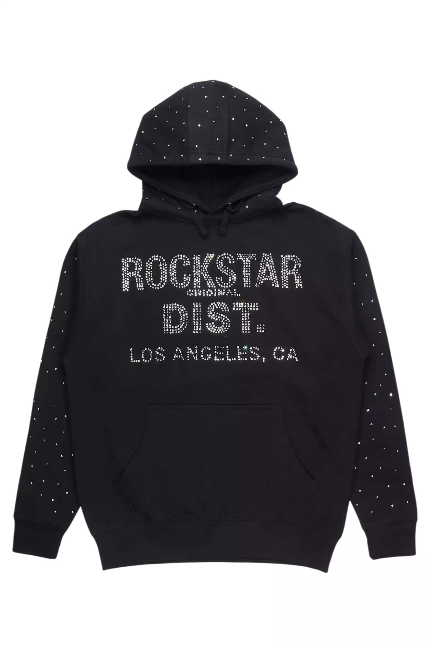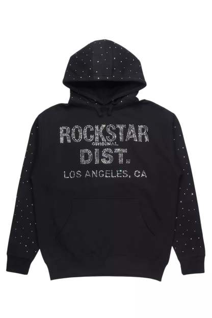 An urban hoodie for men in black. Designed with ultra soft organic cotton and custom rhinestone detailing for a must-cop streetwear style.