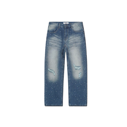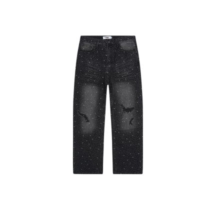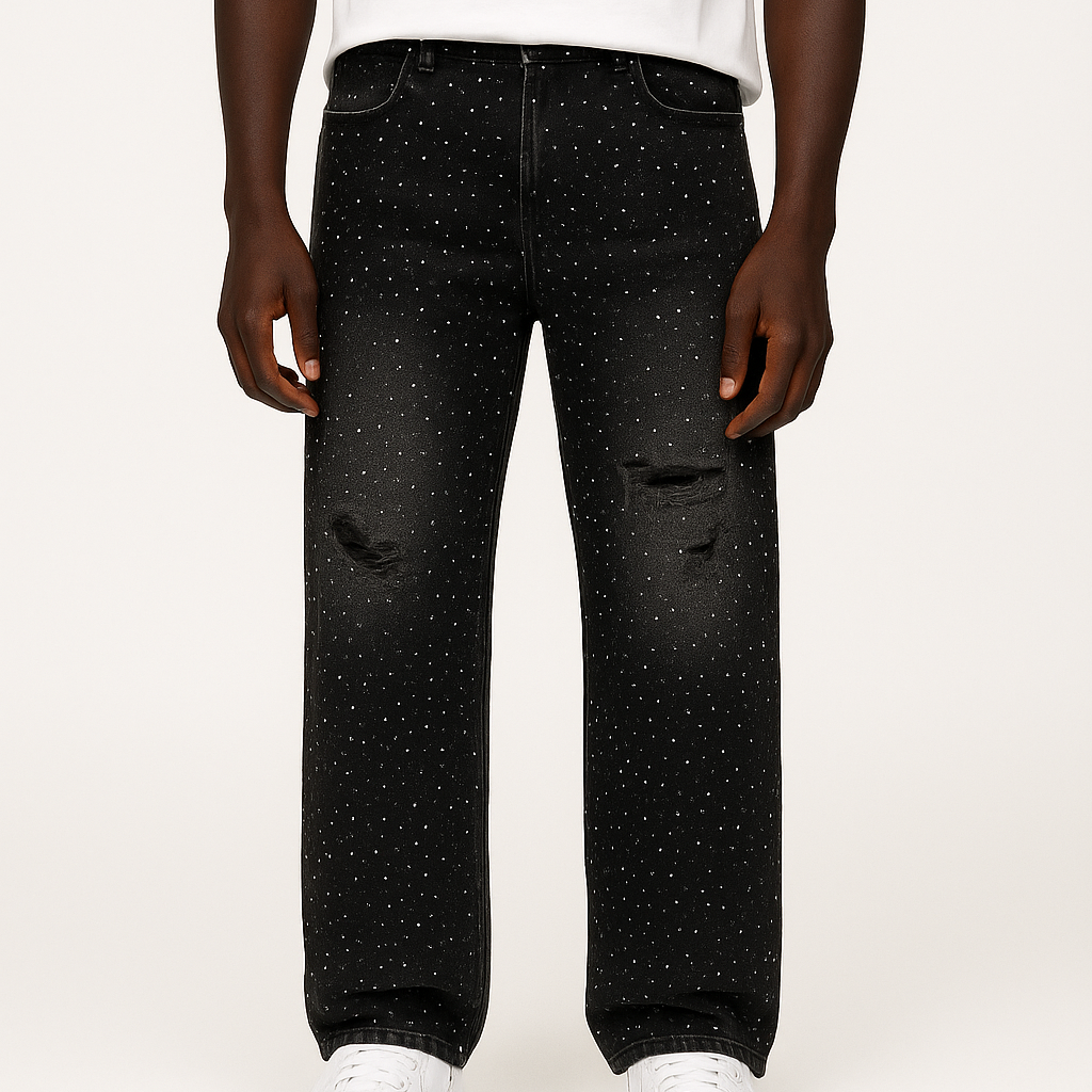 Upgrade your wardrobe with the VYBES Stardust Rhinestone Jeans, where bold streetwear meets elegance. Designed for those who love to stand out, these baggy-fit jeans ensure turn heads with every step while staying effortlessly comfortable.