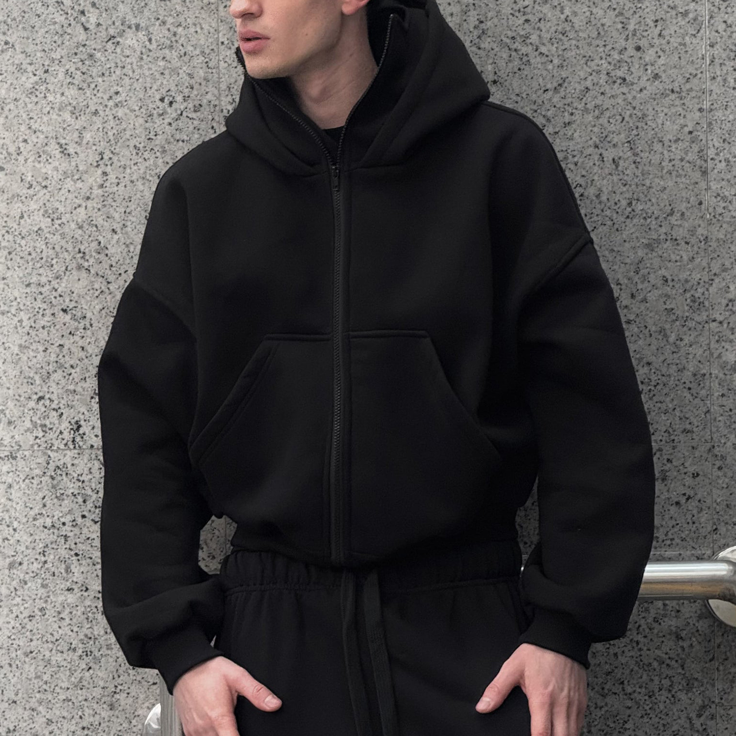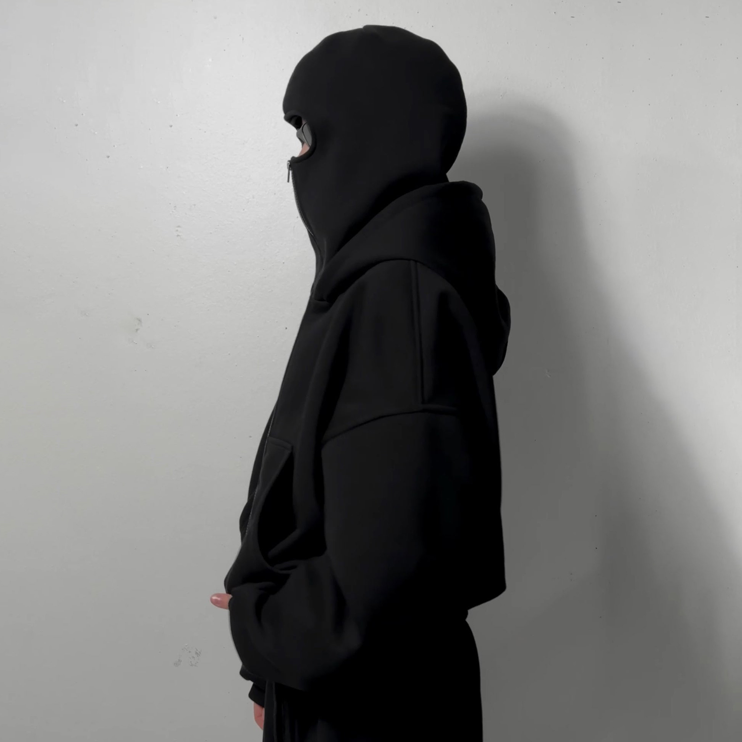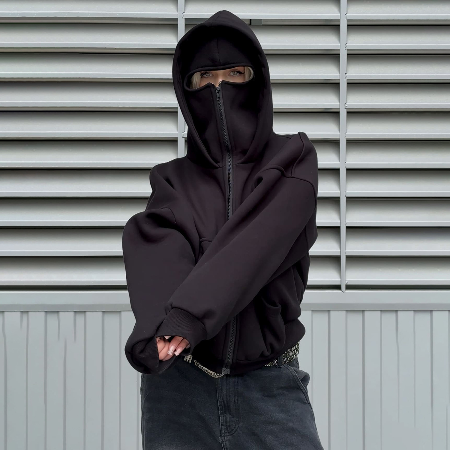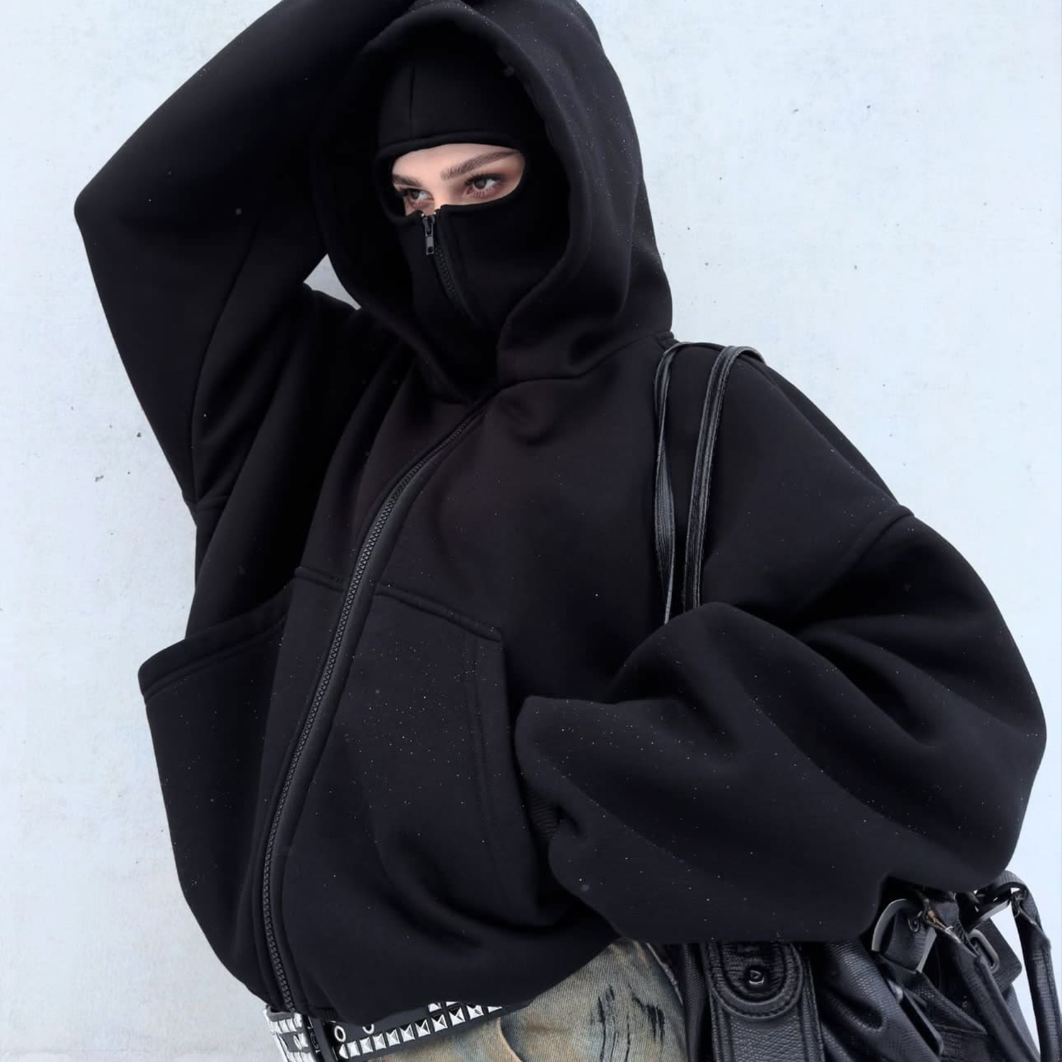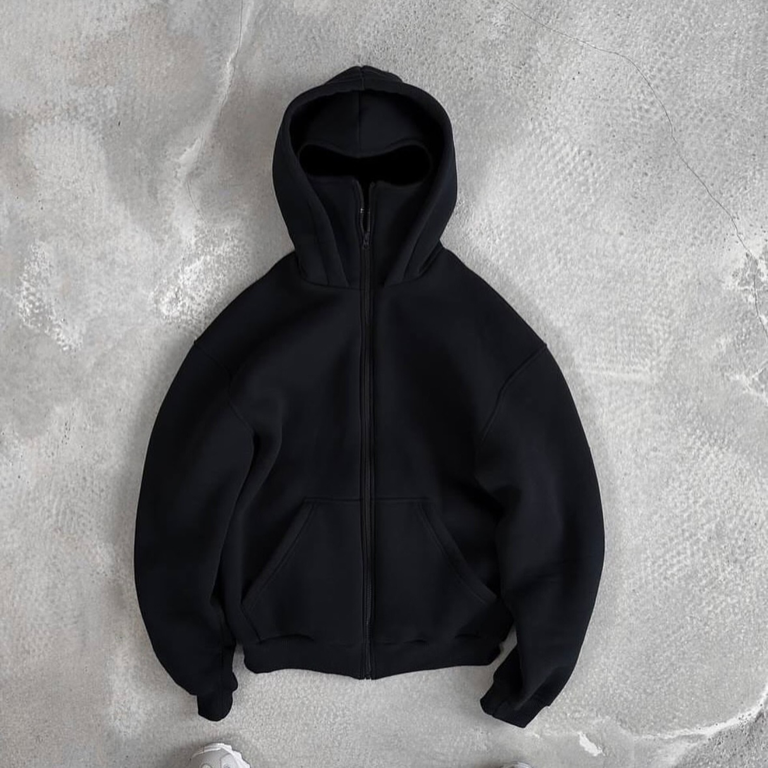 • Design Elements: Embossed logos, front zipper closure, and sleeve text details