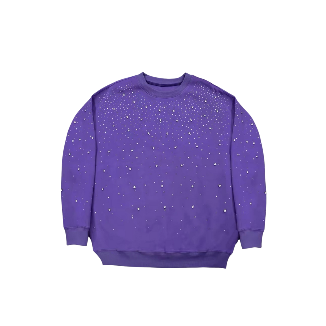 Upgrade your wardrobe with the Rhinestone Galaxy Crewneck, a bold fusion of streetwear and celestial elegance. Designed for those who love to stand out, this statement piece ensures you sparkle with every step.