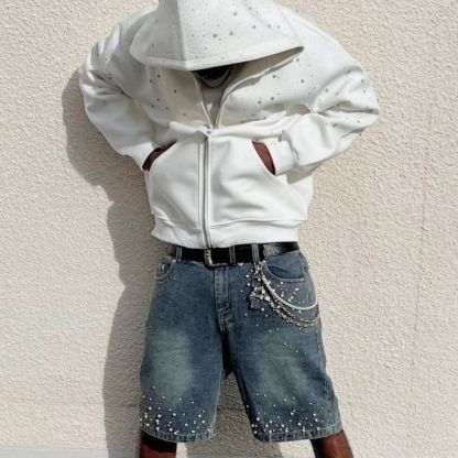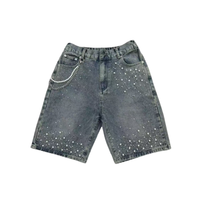 Level up your summer fit with the VYBES Rhinestone Pearl Jorts, where grunge denim meets iced-out elegance. This isn’t just streetwear—it’s a full-on glow-up.
