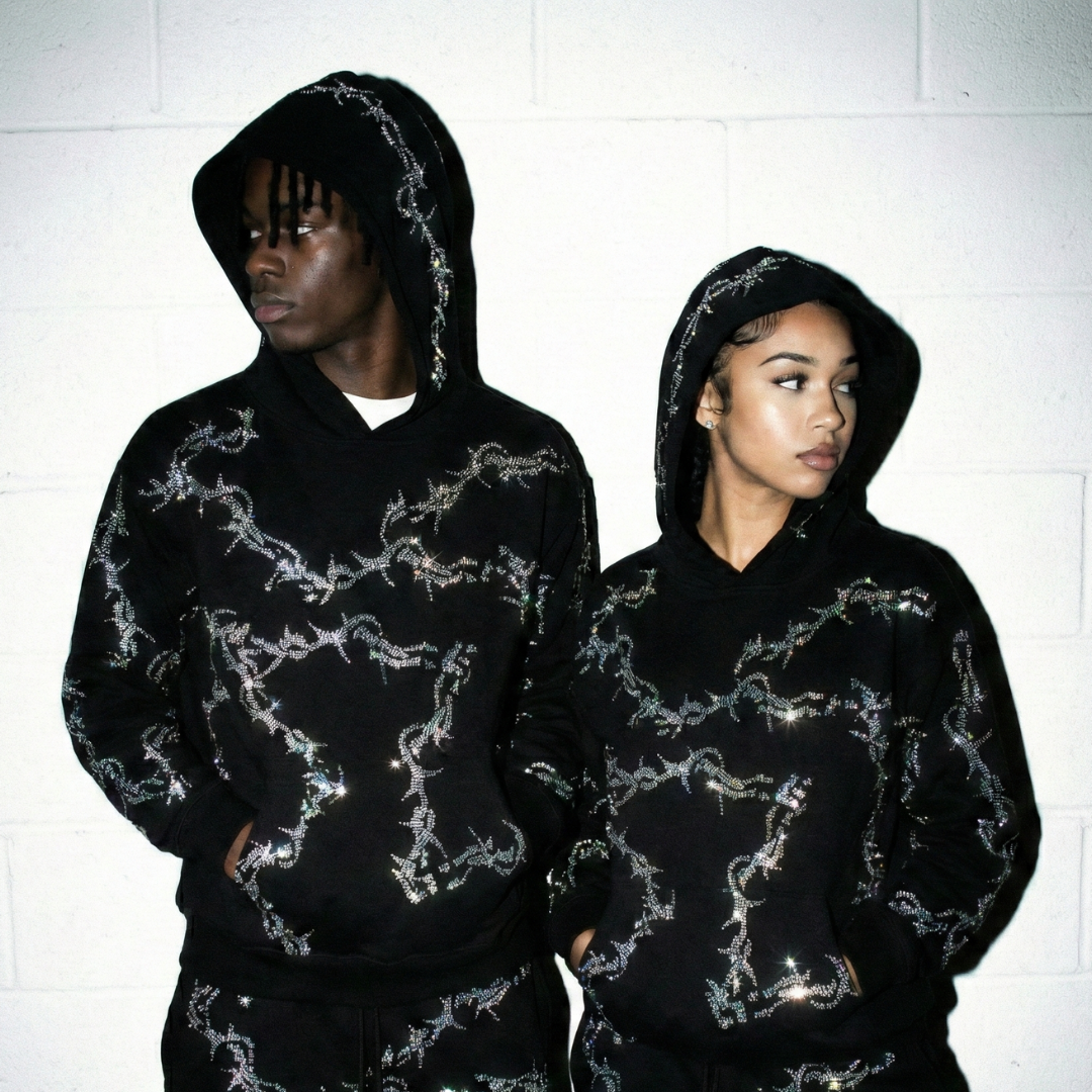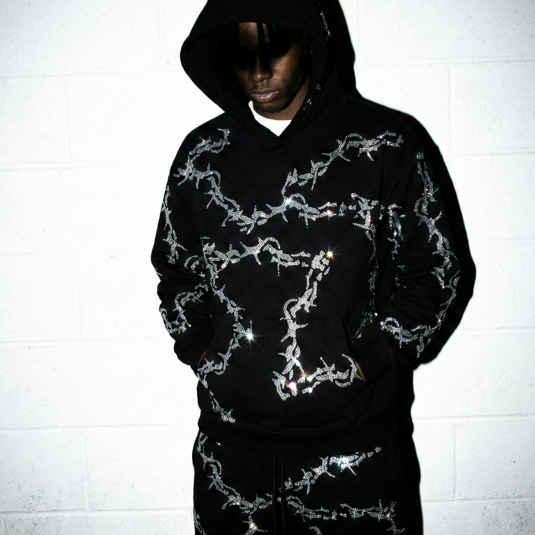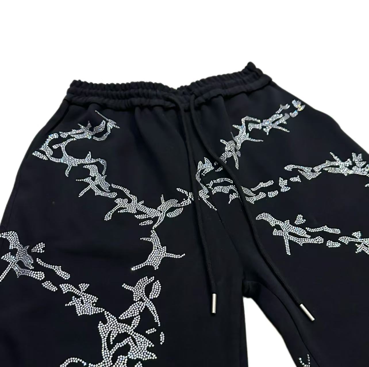 Upgrade your wardrobe with the VYBES Rhinestone Thorn Sweatpants, where bold streetwear meets celestial elegance. Designed for those who love to stand out, these sweatpants ensure you sparkle with every step while staying effortlessly comfortable.