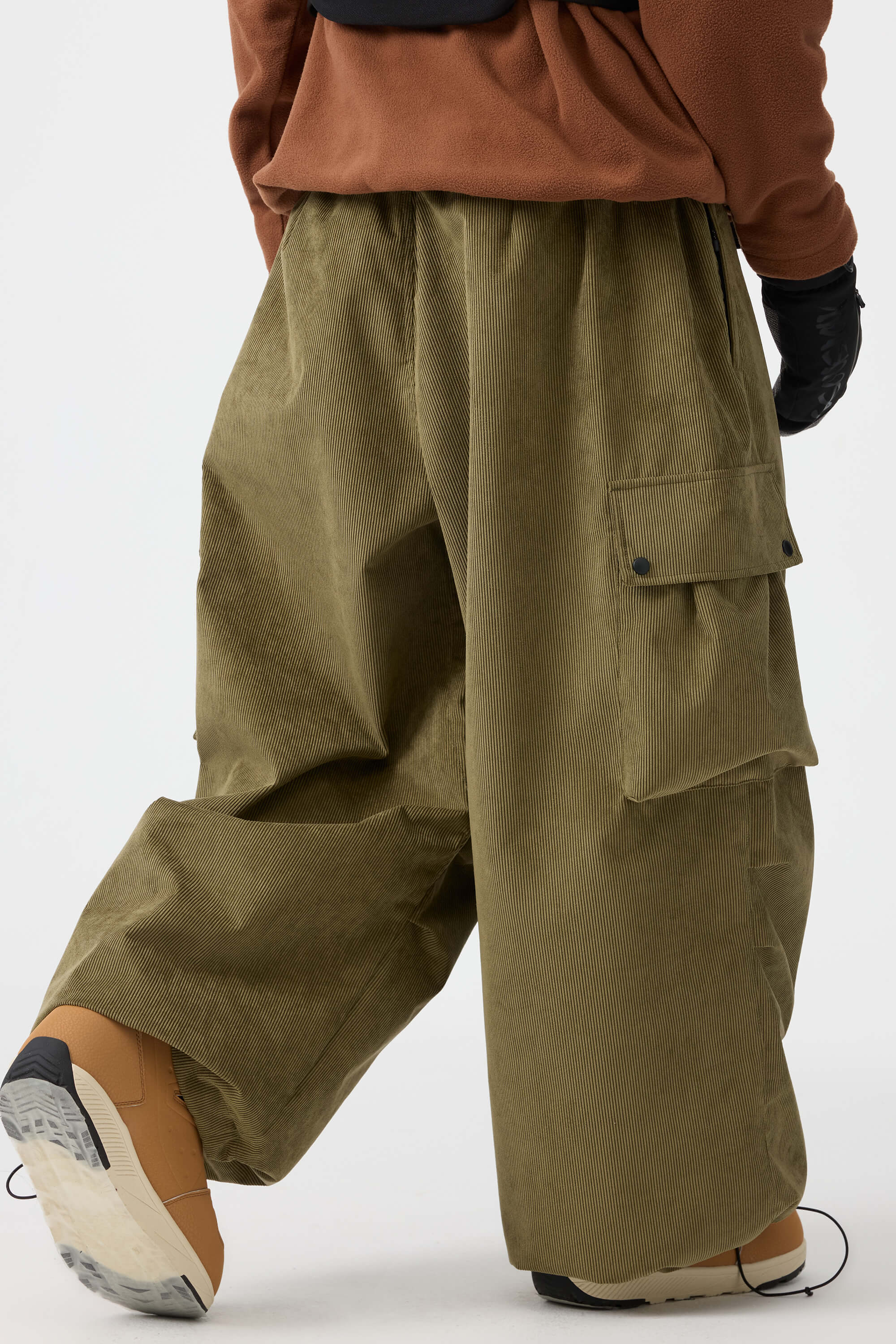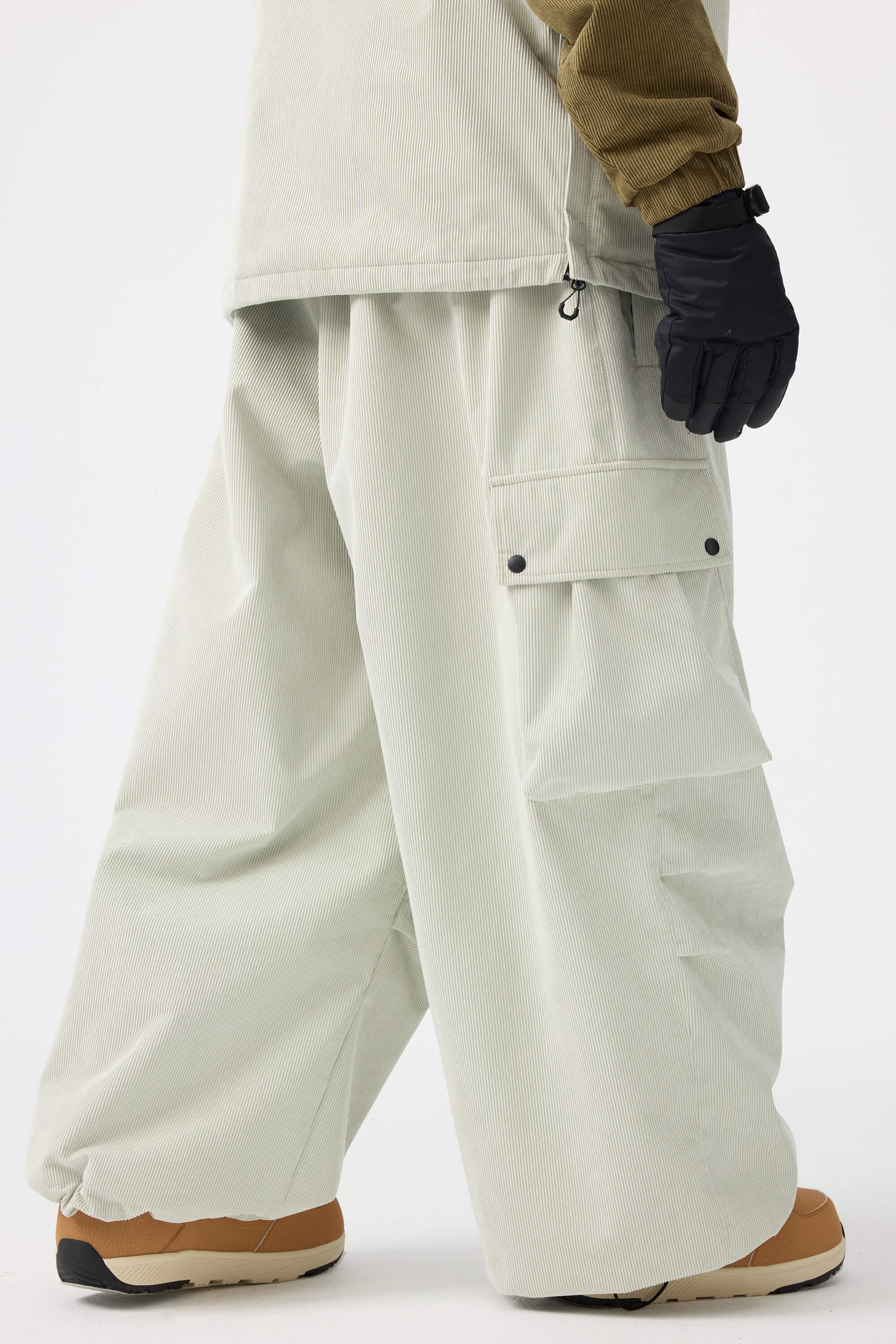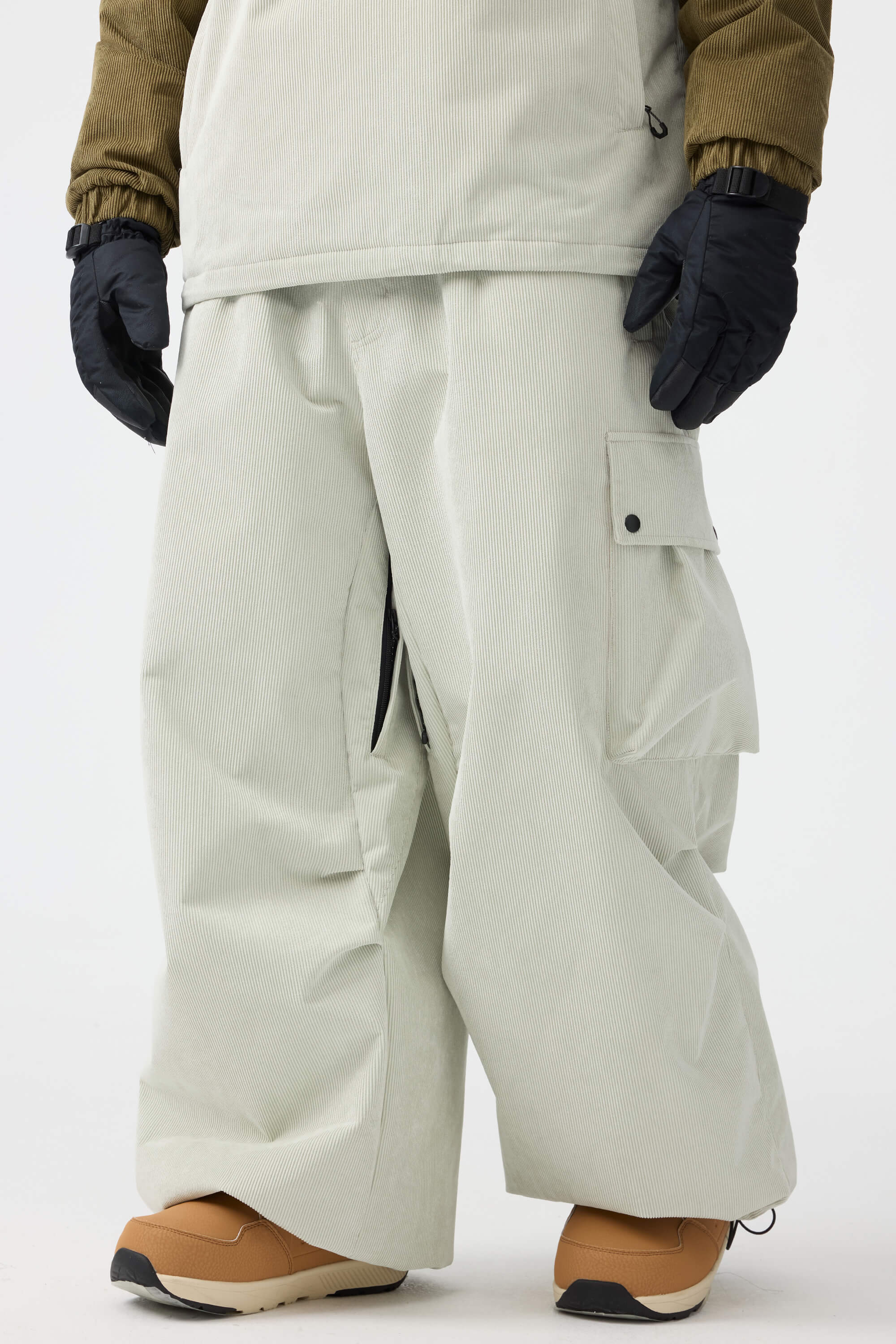 Crafted from unique corduroy fabric, these pants offer a retro style with softness and warmth. Featuring water- and wind-resistant linings at the waistband and cuffs, along with zippered thigh vents for quick heat release, they combine style with excellent protection.
